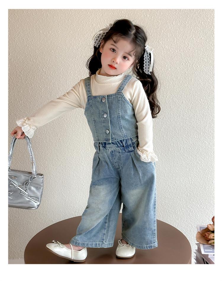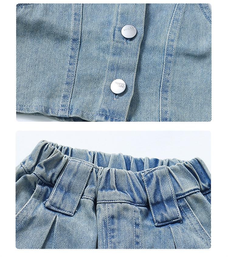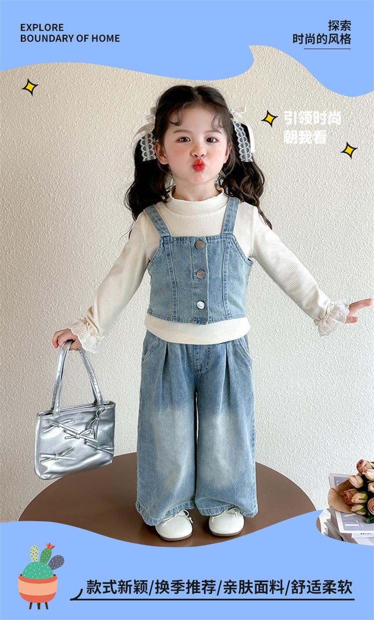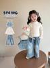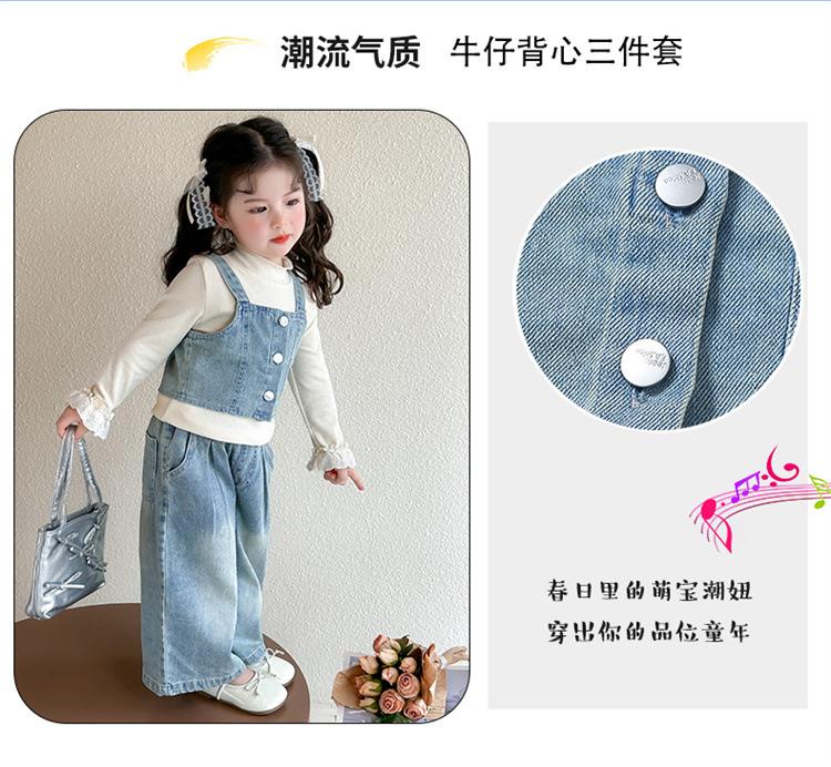 Traje para niñas Primavera y Otoño 2025 Nuevo Vestido de Primavera para Niños Moda Bebé Estilo Occidental Casual Chaleco de mezclilla Conjunto de tres piezas