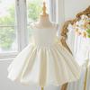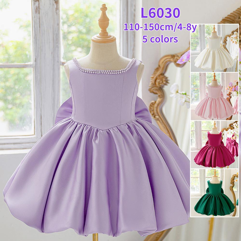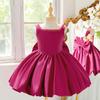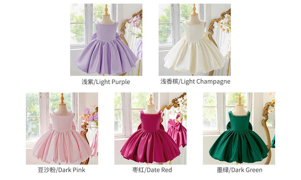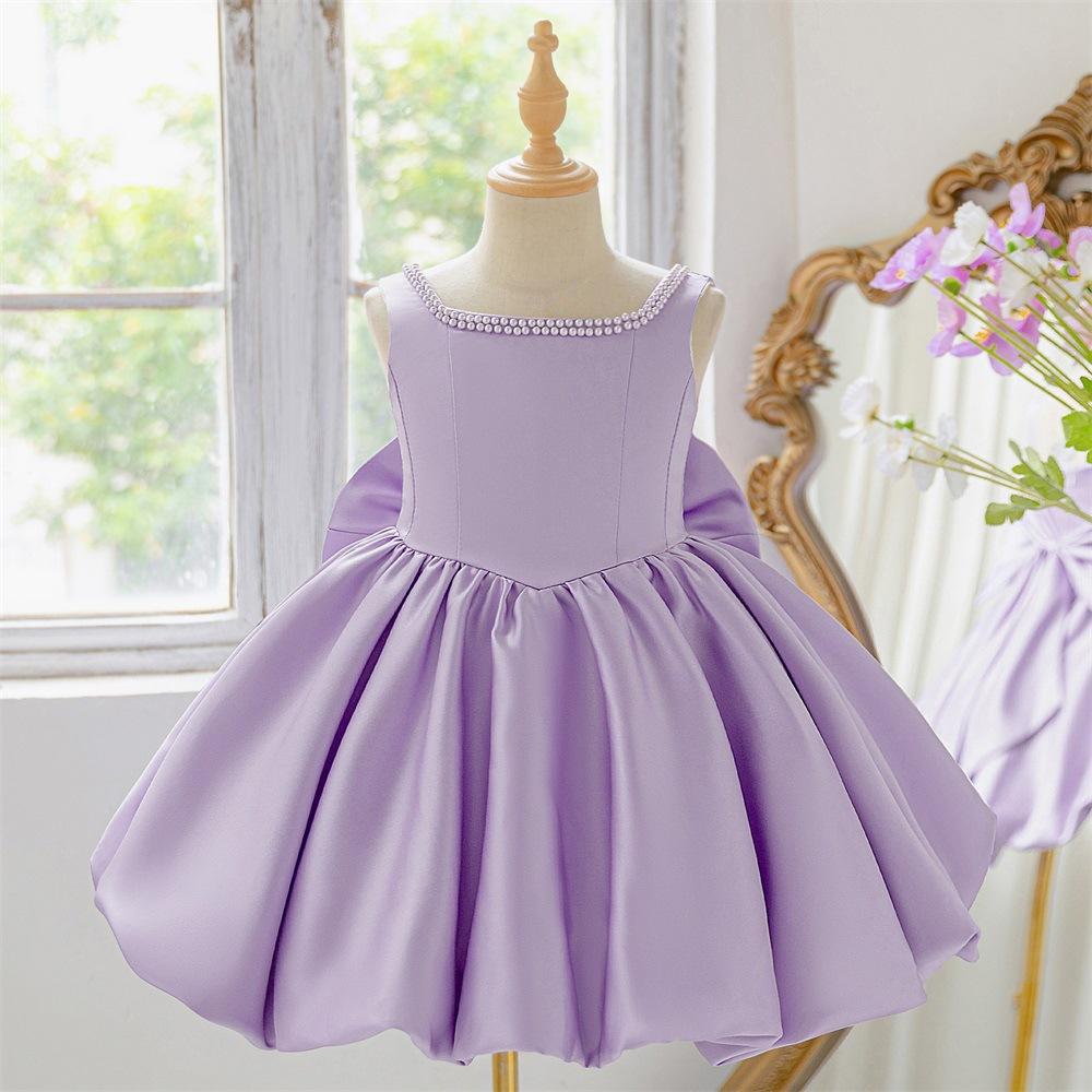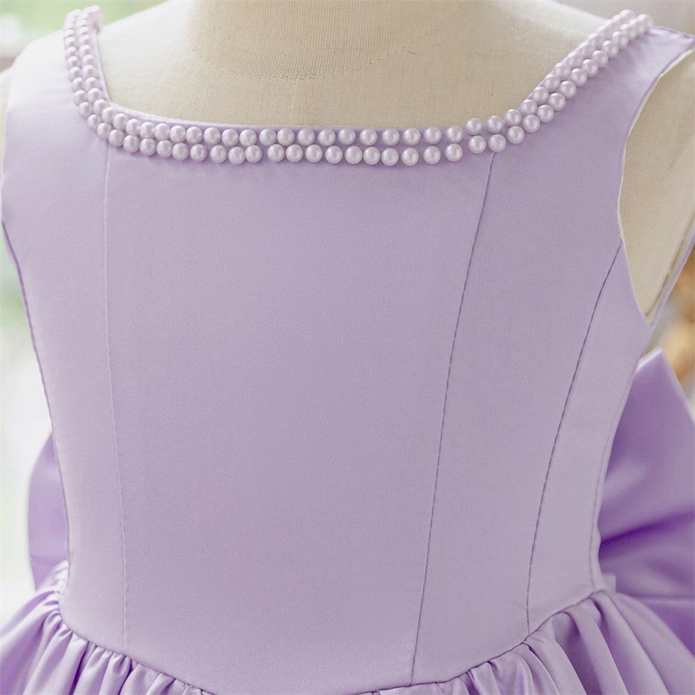 Vestido Formal para Niñas Vestido de Princesa para Niños Vestido de Niña de las Flores con Cuentas Falda Abullonada Lazo Traje de Actuación para Niñita Primer Cumpleaños