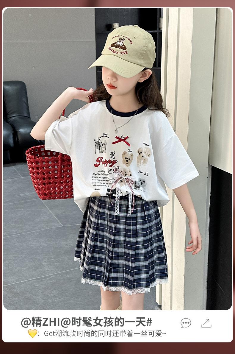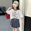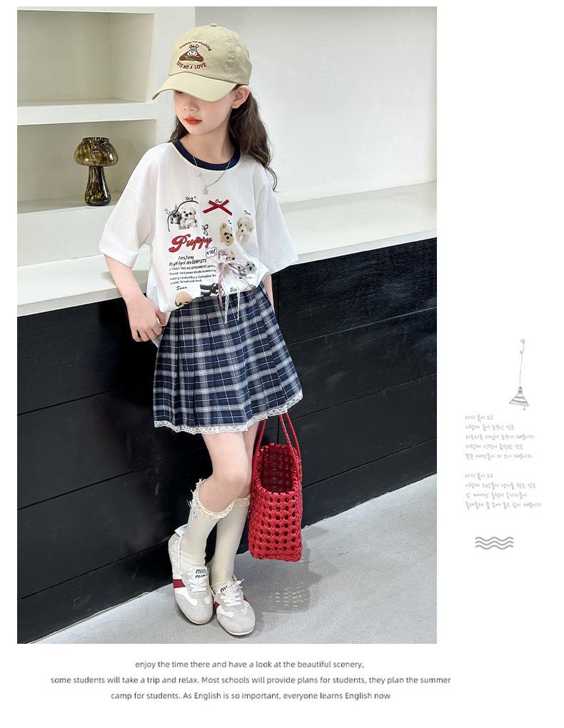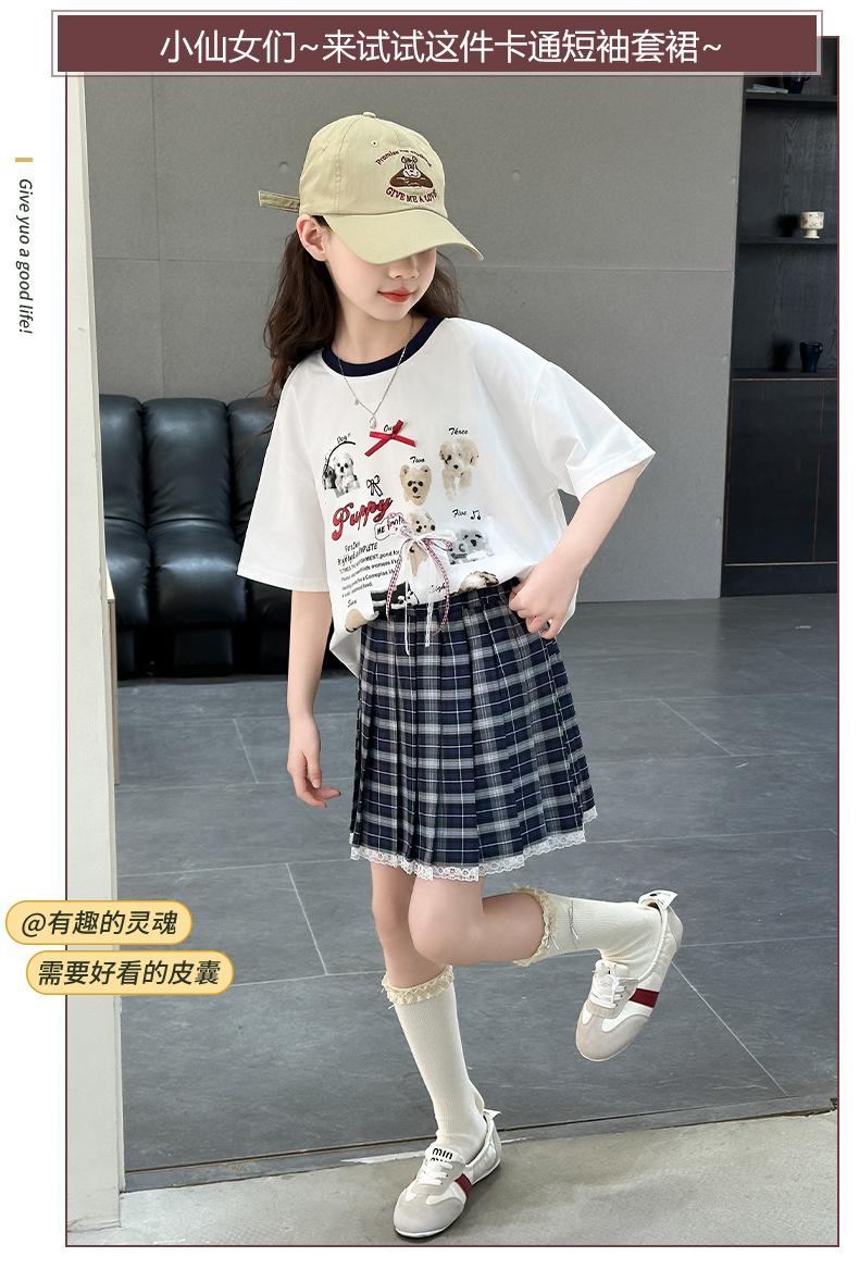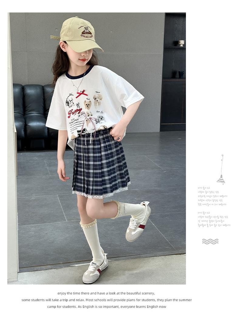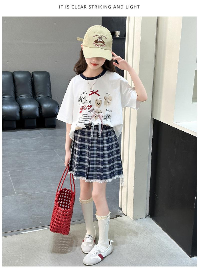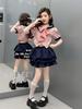 Traje para Niñas 2025 Nuevo Estilo de Verano Jk de Manga Corta Falda Plisada Infantil Estilo Coreano Casual de Dos Piezas Falda