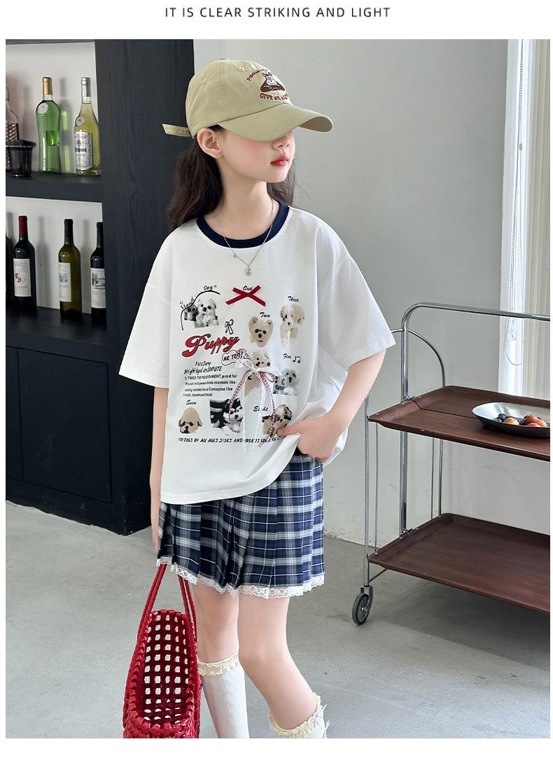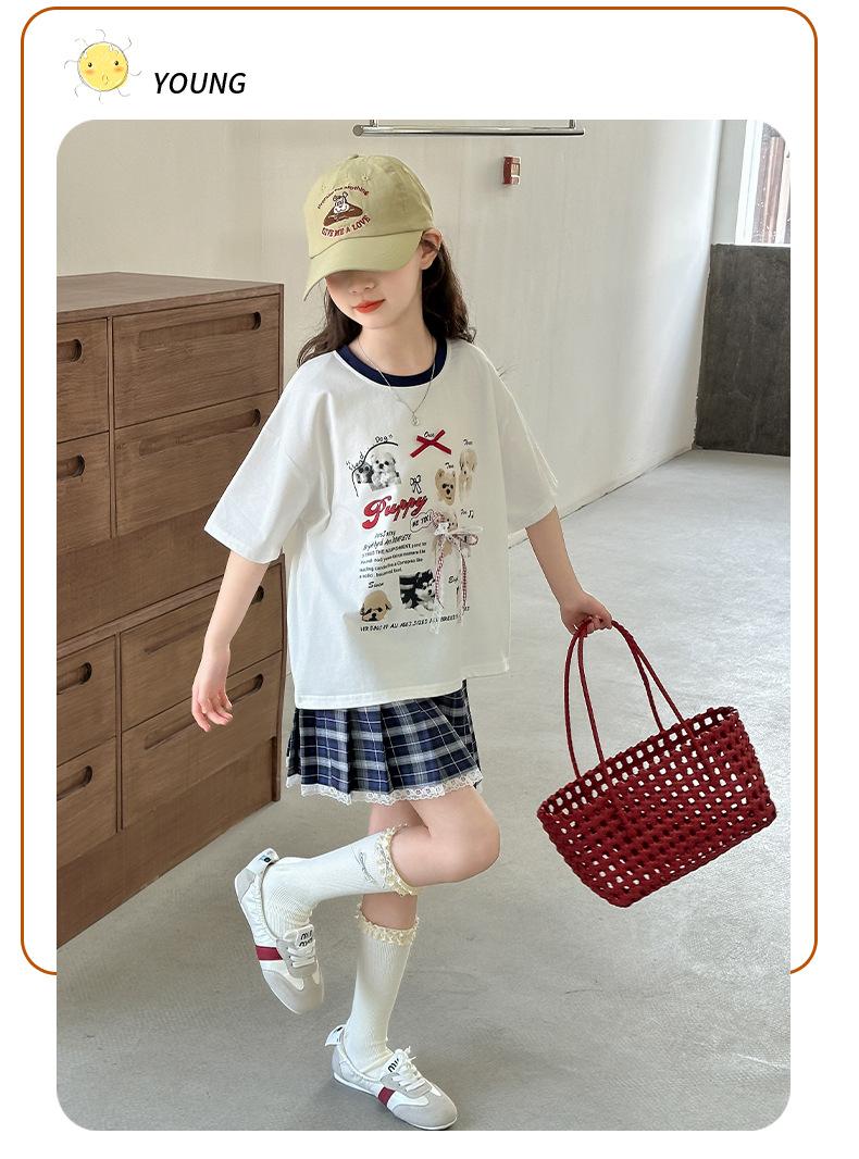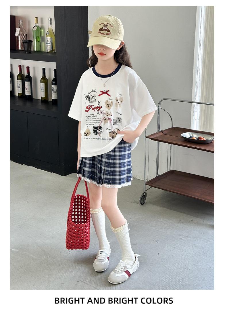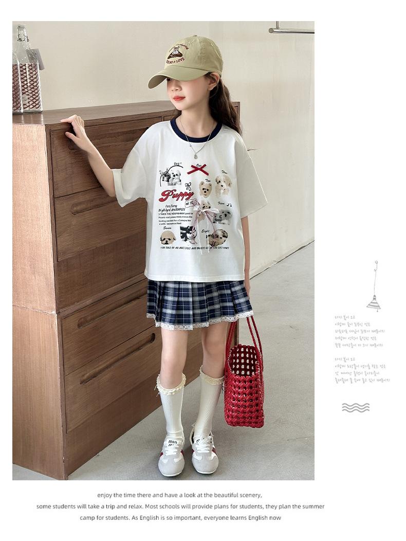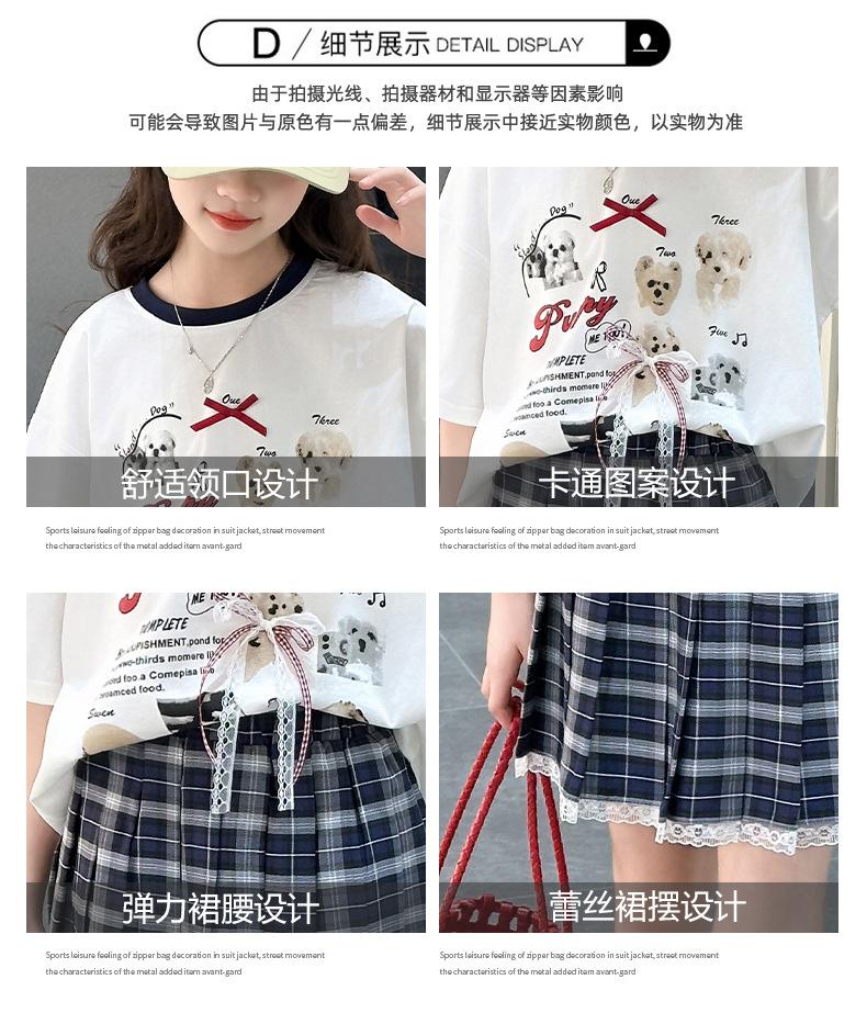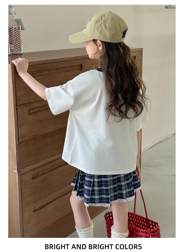 Traje para Niñas 2025 Nuevo Estilo de Verano Jk de Manga Corta Falda Plisada Infantil Estilo Coreano Casual de Dos Piezas Falda