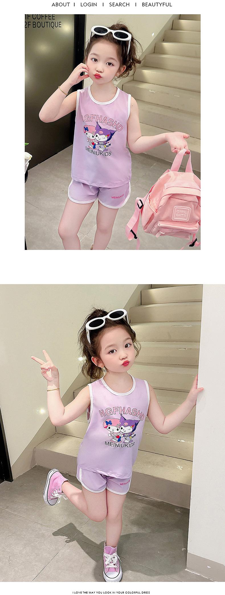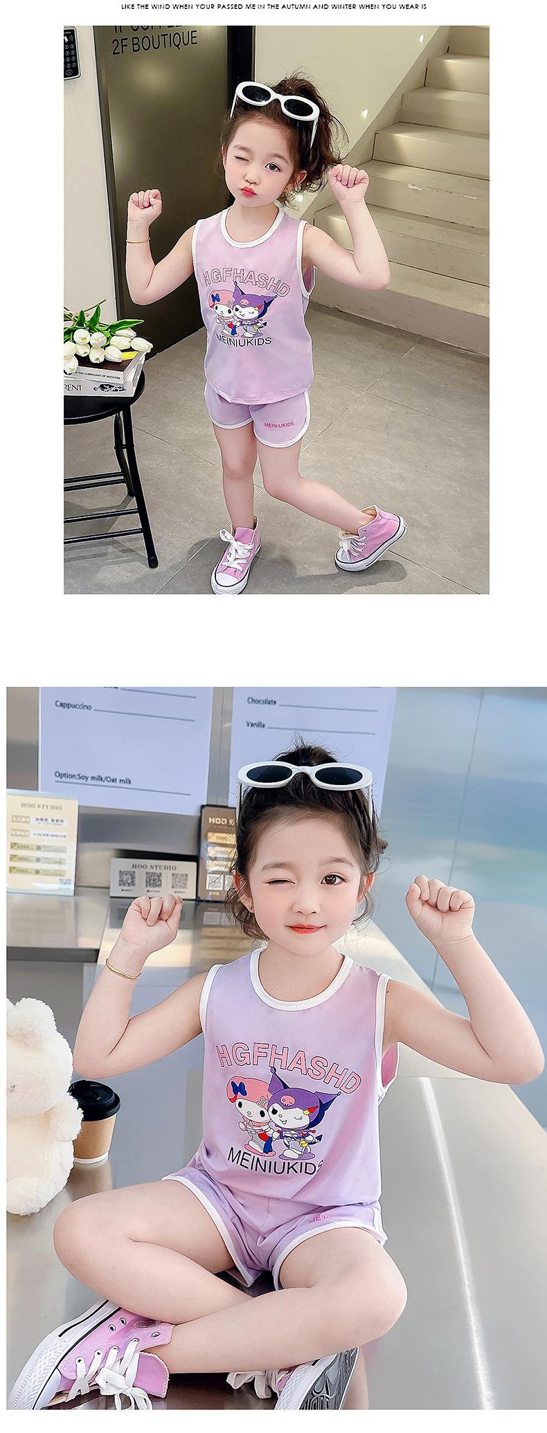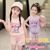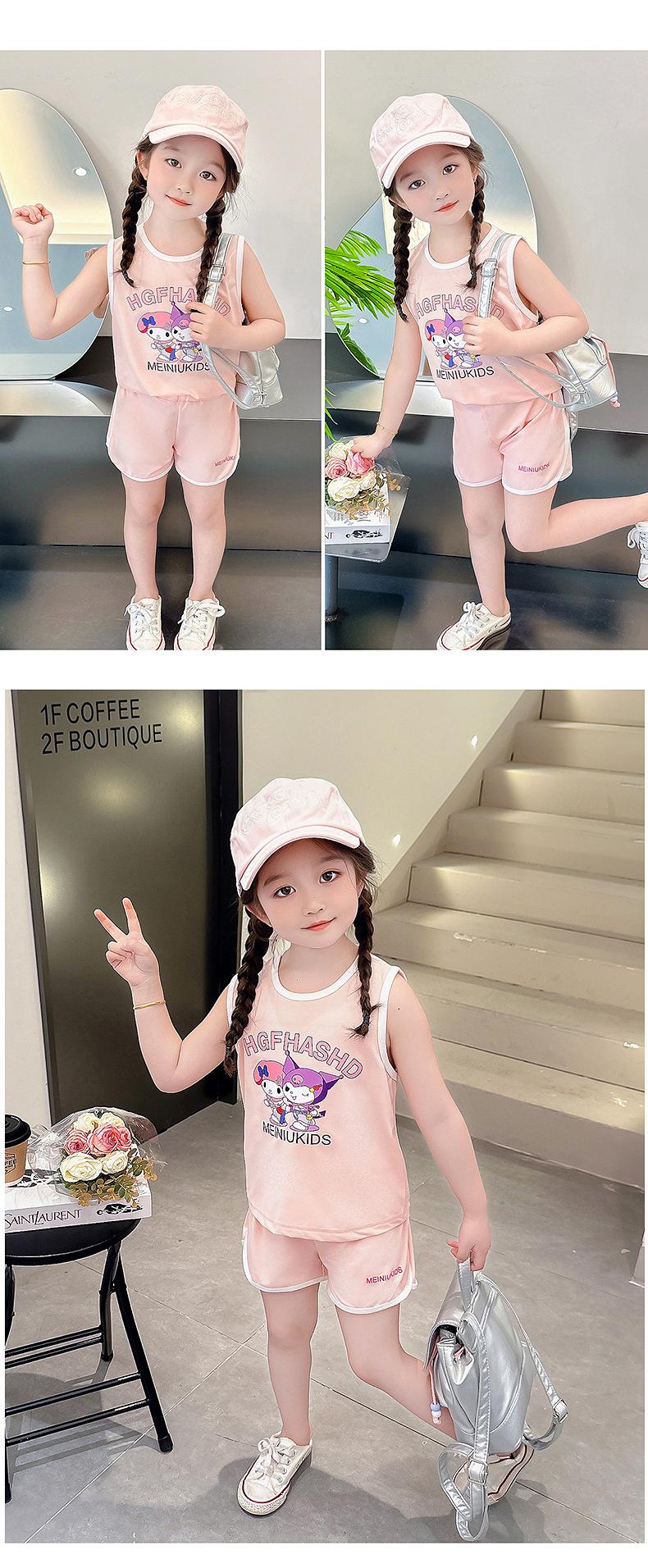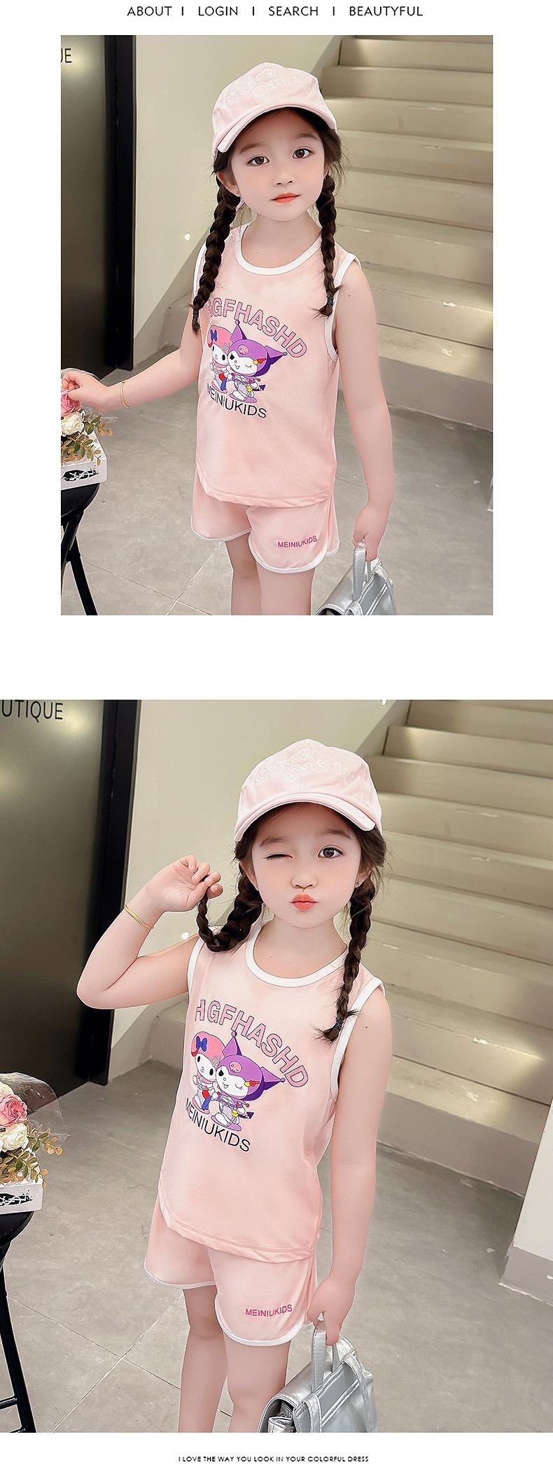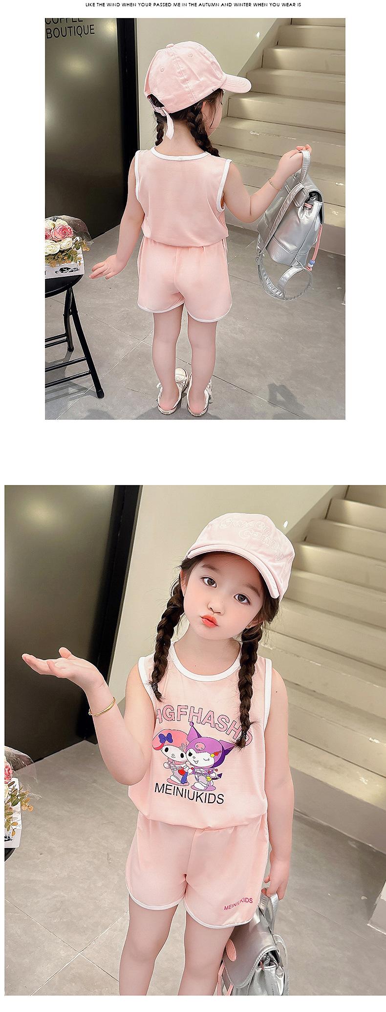 Traje Nuevo para Niñas Top sin Mangas Verano Chaleco para Niños Shorts Moda Dulce Dibujos Animados Deportivo Conjunto de Dos Piezas Trendy
