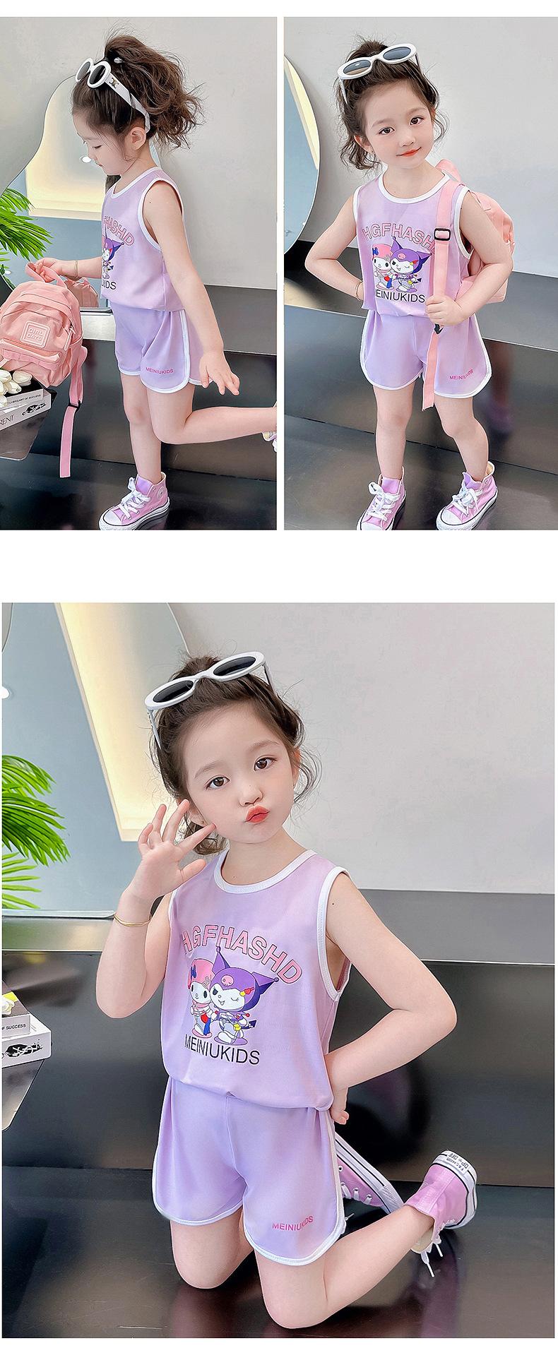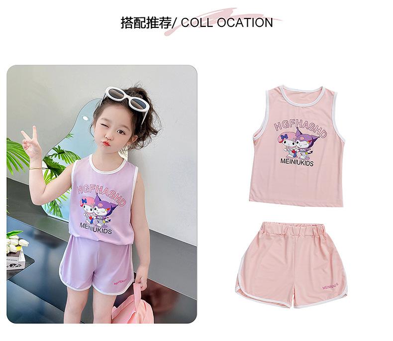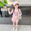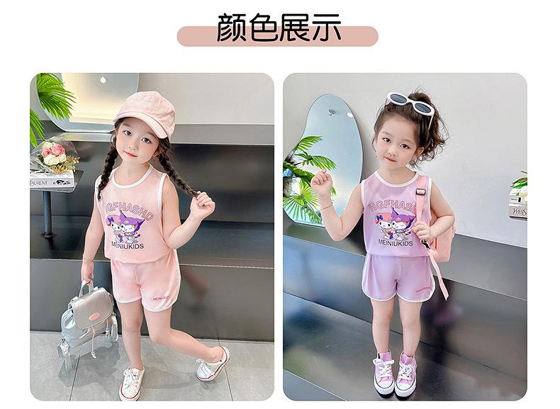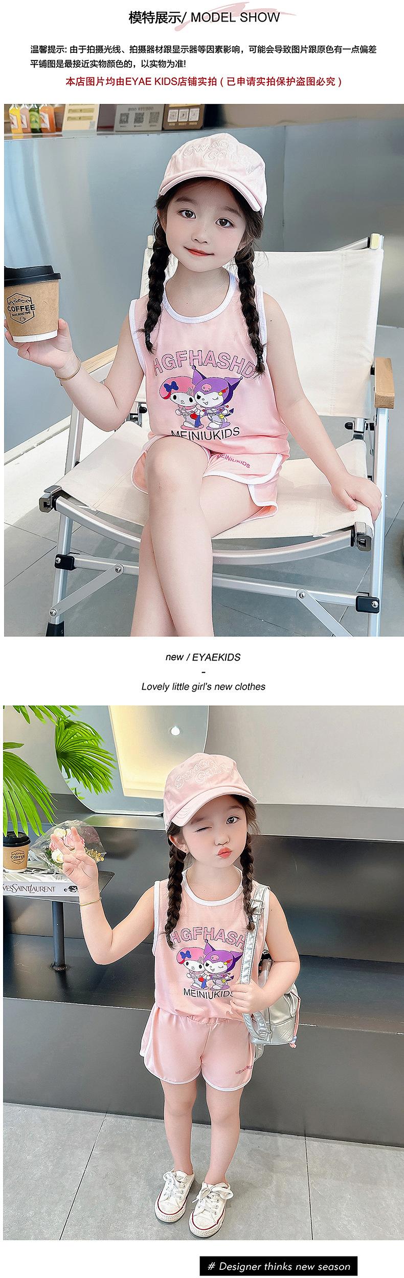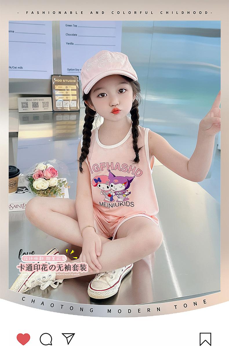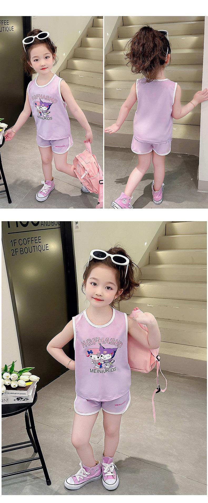 Traje Nuevo para Niñas Top sin Mangas Verano Chaleco para Niños Shorts Moda Dulce Dibujos Animados Deportivo Conjunto de Dos Piezas Trendy
