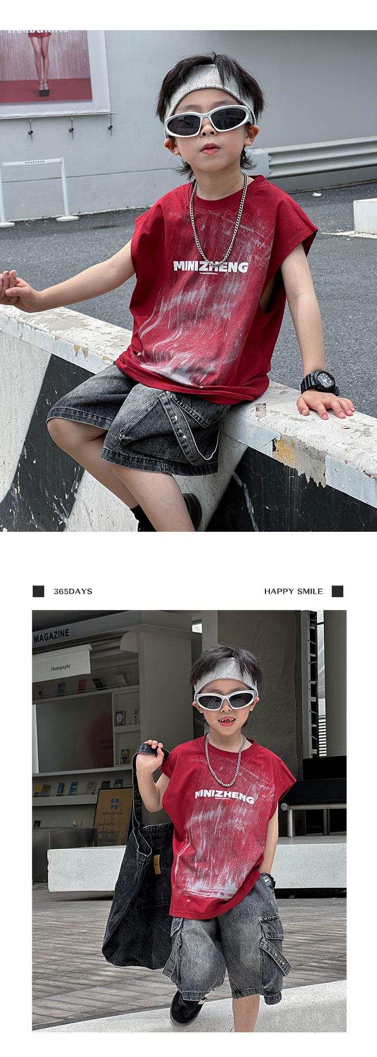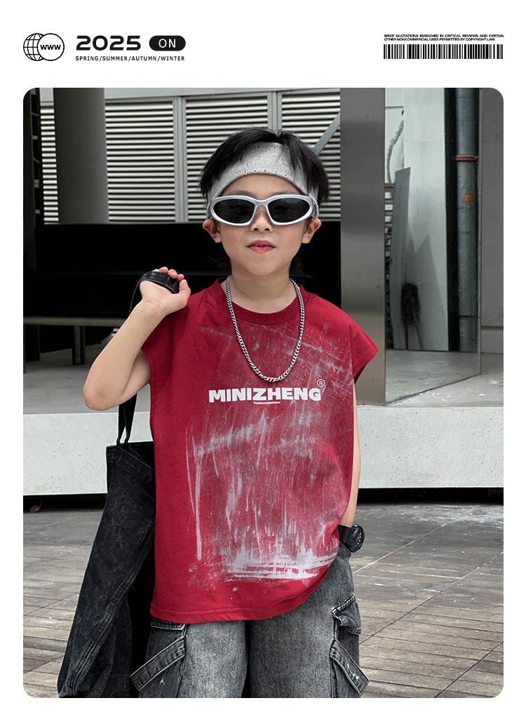 Camiseta con Alfabeto para Niños 2025 Verano Nueva Chaleco sin Mangas Estilo Coreano para Niños Ropa de Verano Fresca y Guapa Transpirable para Niños
