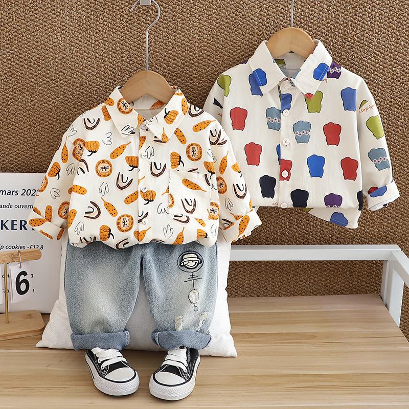 Traje de Otoño para Niño 2024 Nuevo Ropa Casual de Primavera y Otoño para Niños Ropa para Bebé Estilo Occidental Camisa de Manga Larga de Dos Piezas a la Moda
