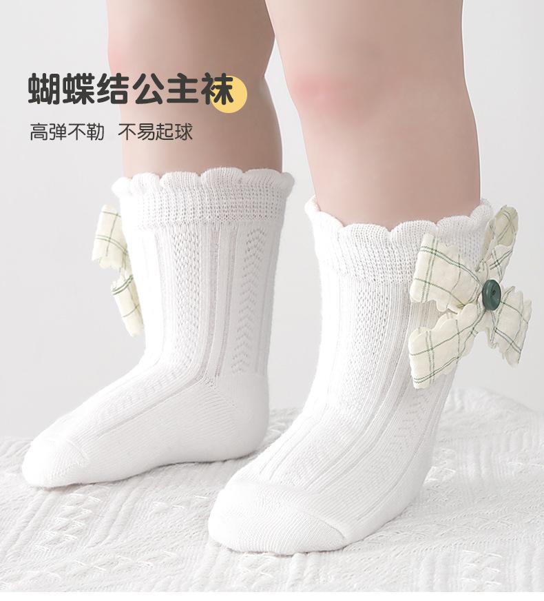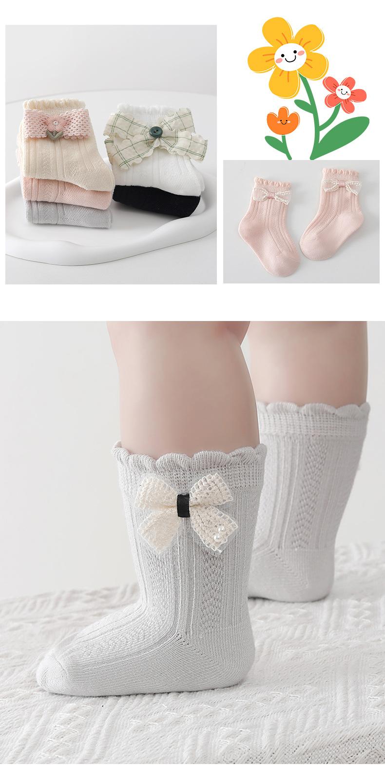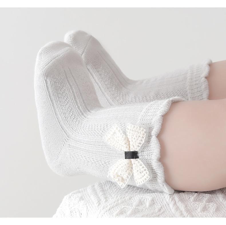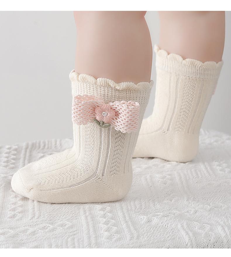 Calcetines de Bebé de Primavera y Verano Calcetines Finos con Lazo Grande Blanco Calcetines de Malla Calcetines de Bebé Niñas Color Puro Niñas Princesa Flor