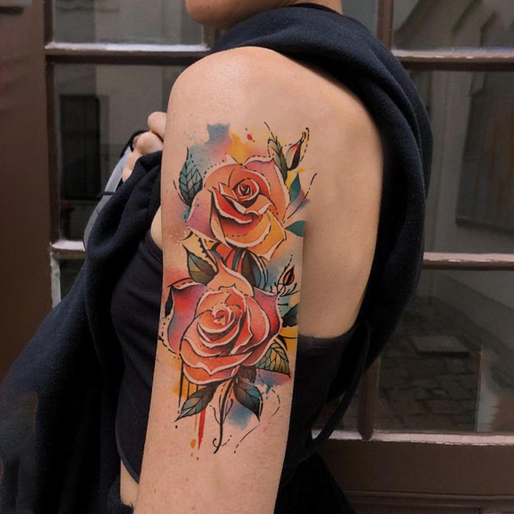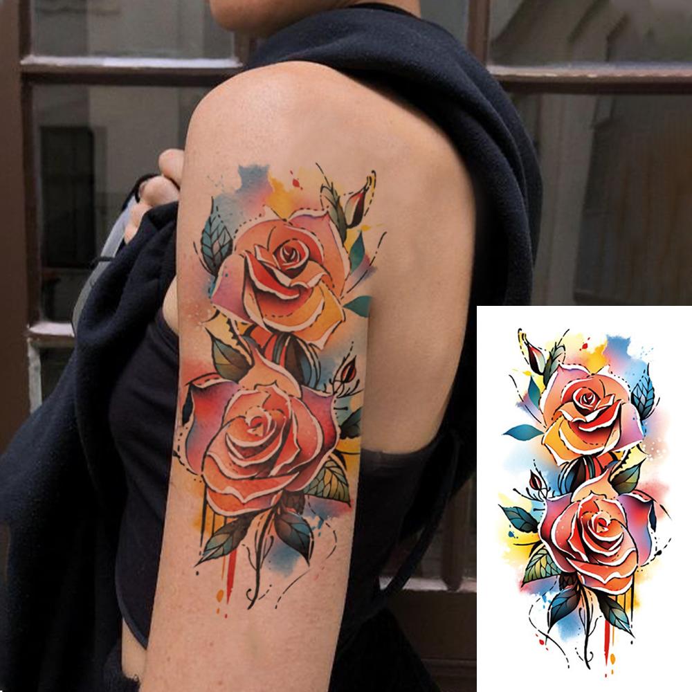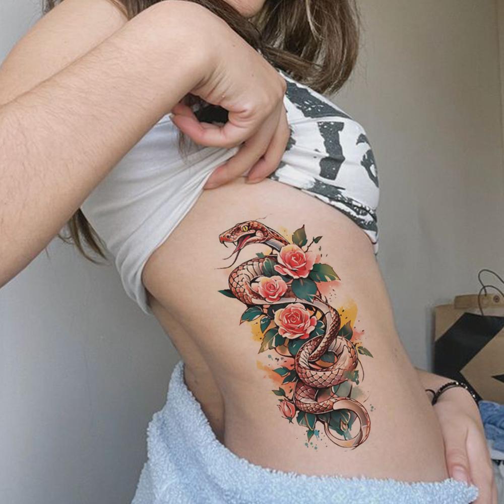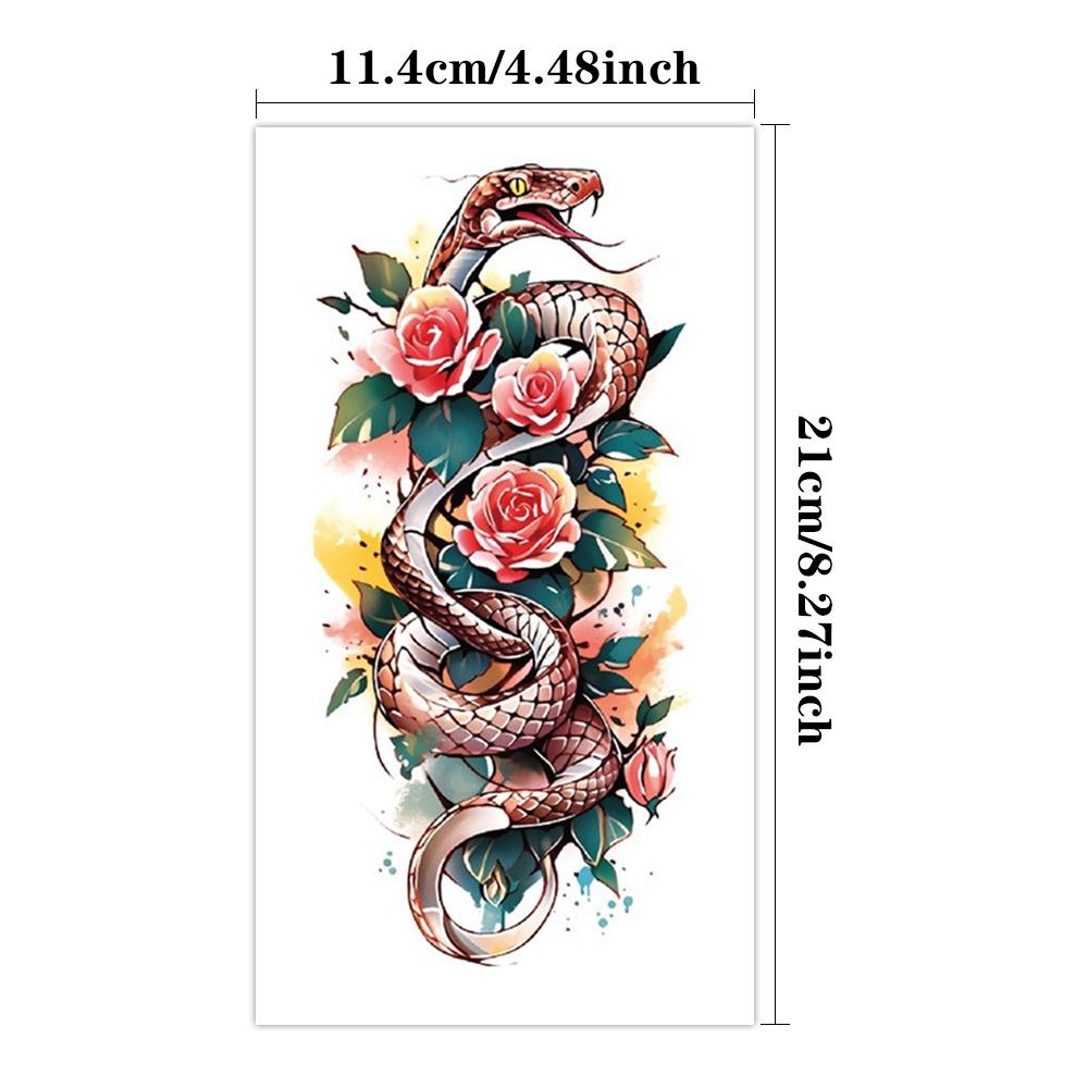 Tatuajes de brazo coloridos, flores brillantes y serpientes, calcomanías de tatuaje temporal, impermeables, de larga duración, no fáciles de caerse, tatuajes falsos adecuados para hombres y mujeres, brazos, piernas, hombros, espalda, cintura, festivales, fiestas, maquillaje corporal, cobertura de cicatrices, decoración corporal de moda diaria