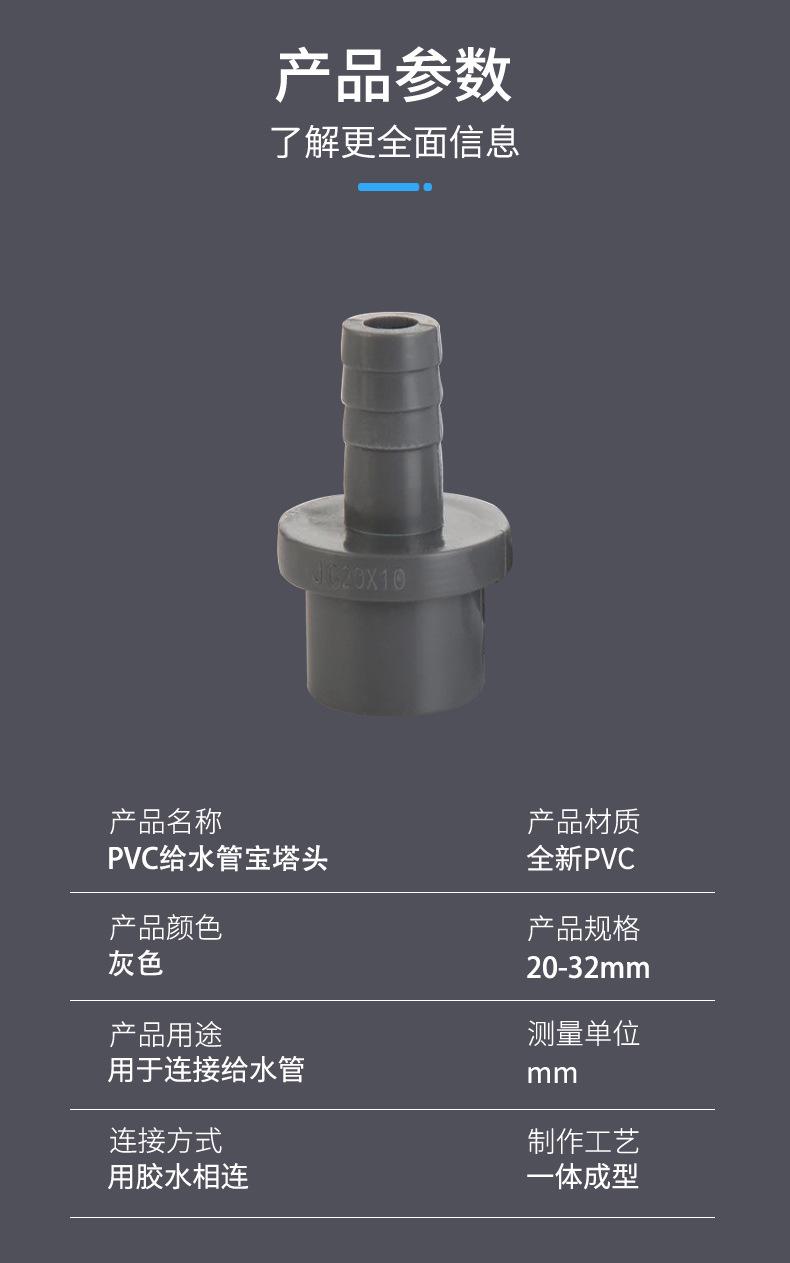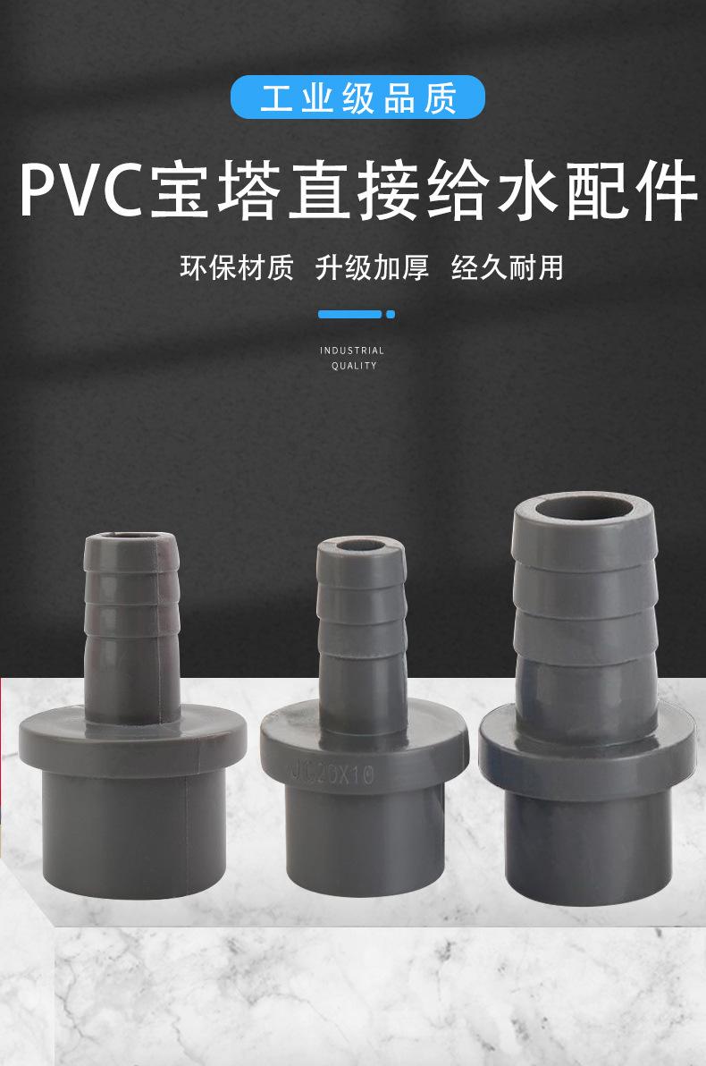 Unión de manguera de PVC UPVC pagoda directa plástico tubo blando y duro conexión rápida interfaz para aumentar el oxígeno unión recta gris