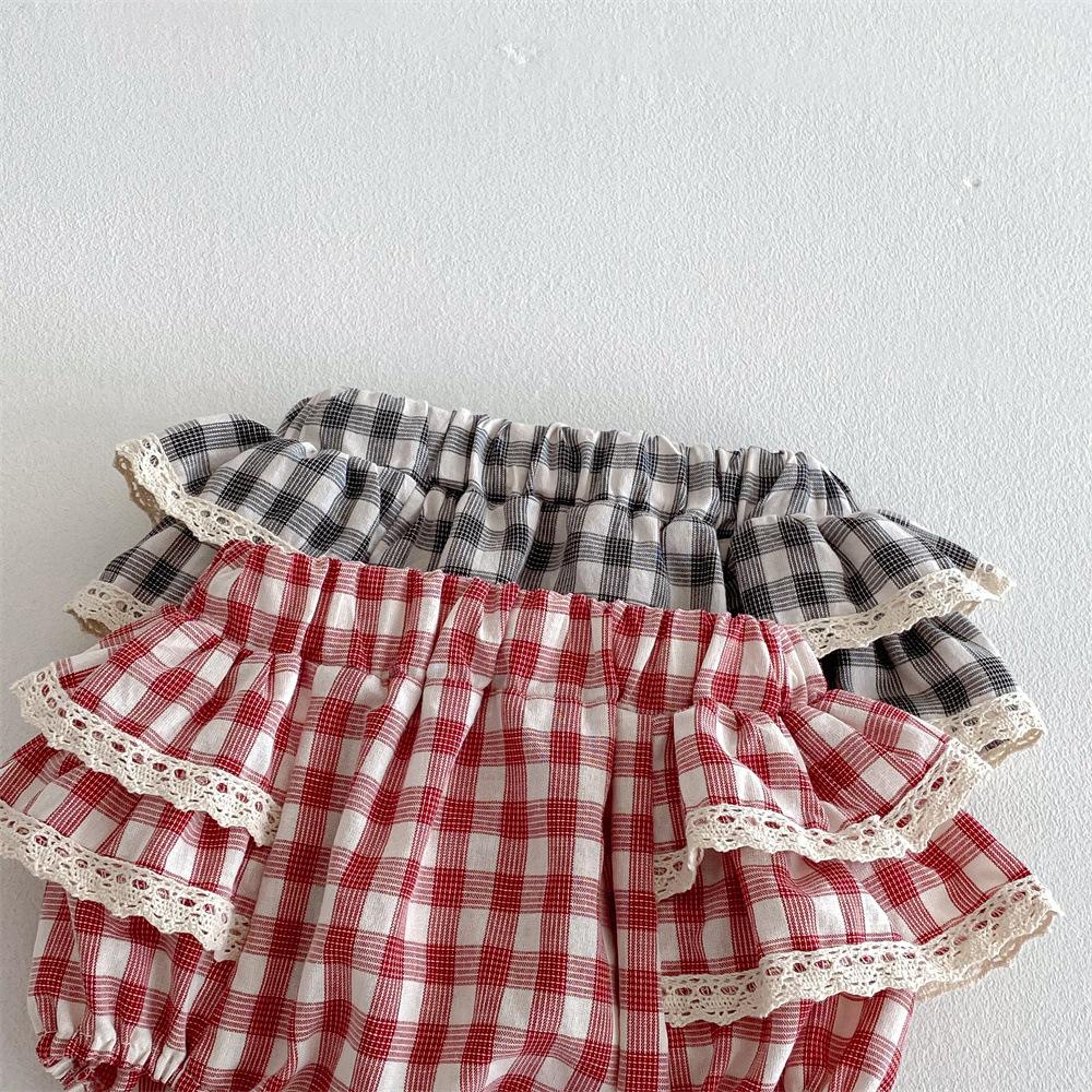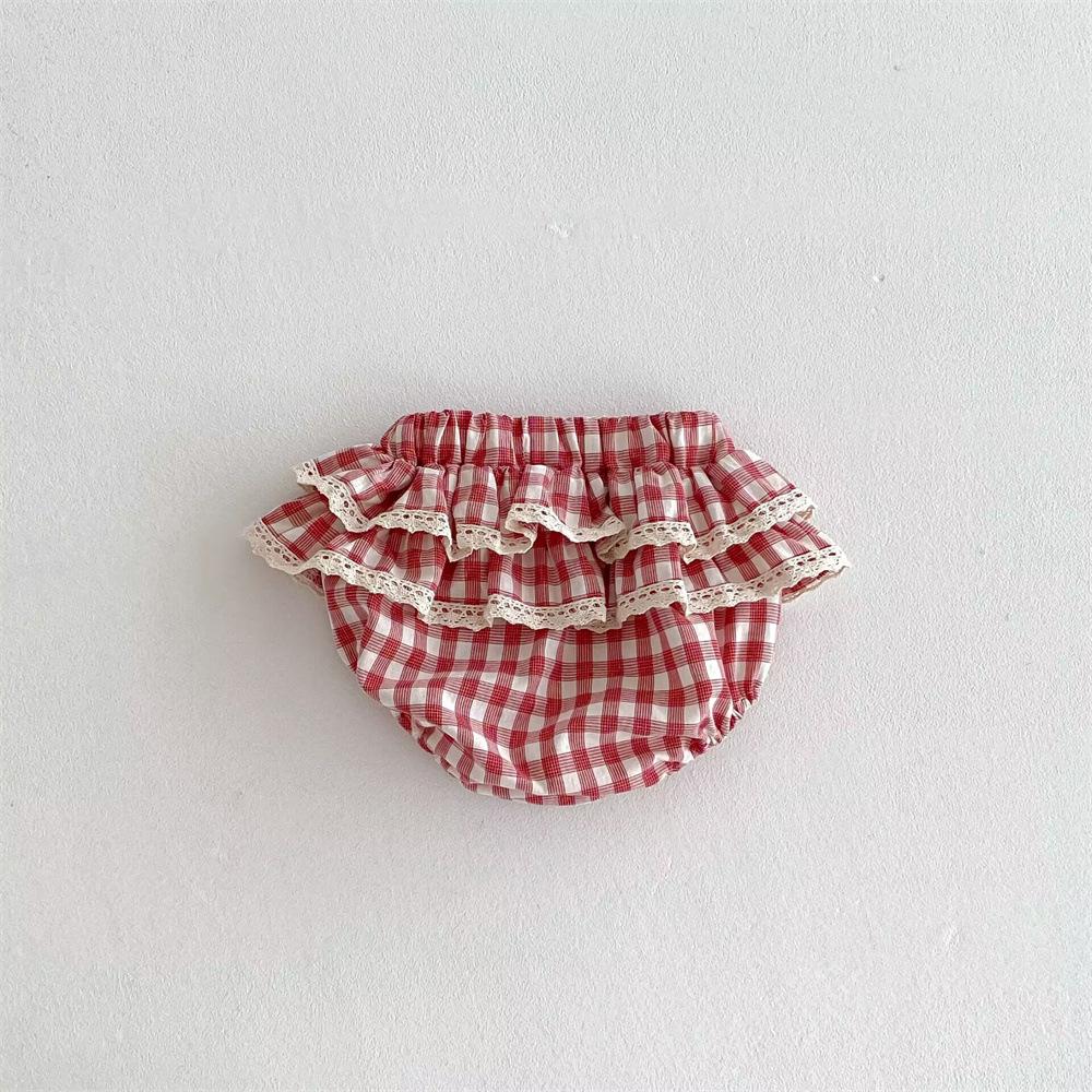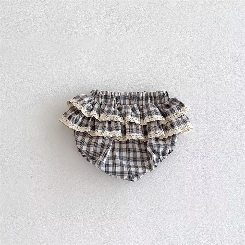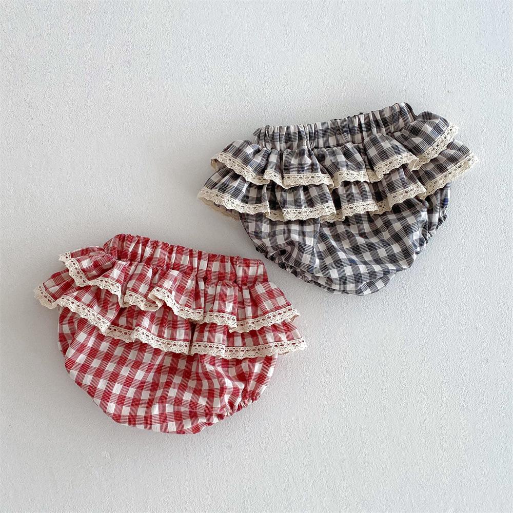 Ins Pantalones Culottes de Encaje a Cuadros Estilo Coreano para Niña Falda de Pastel para Bebé con Volantes de Doble Capa Primavera y Verano Pantalones Grandes con PP para Bebé