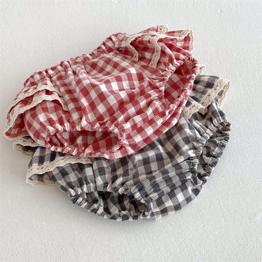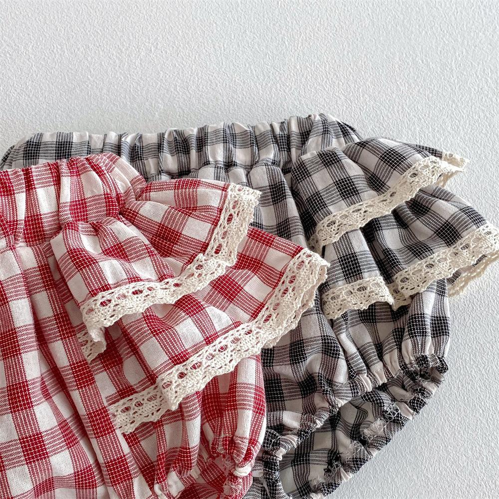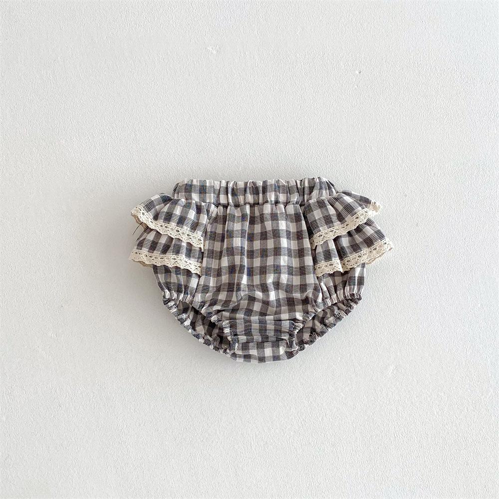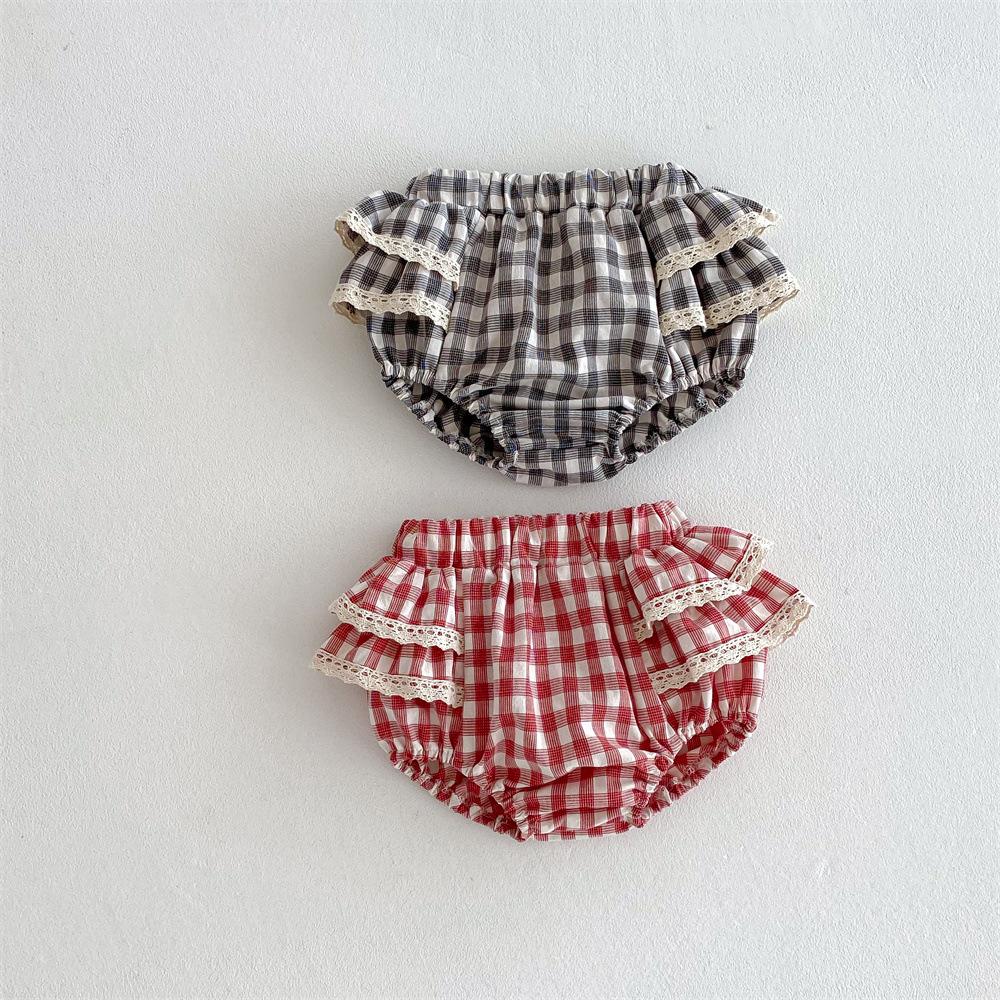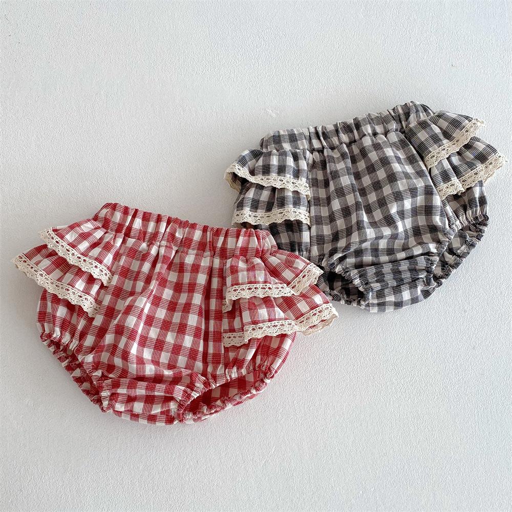 Ins Pantalones Culottes de Encaje a Cuadros Estilo Coreano para Niña Falda de Pastel para Bebé con Volantes de Doble Capa Primavera y Verano Pantalones Grandes con PP para Bebé