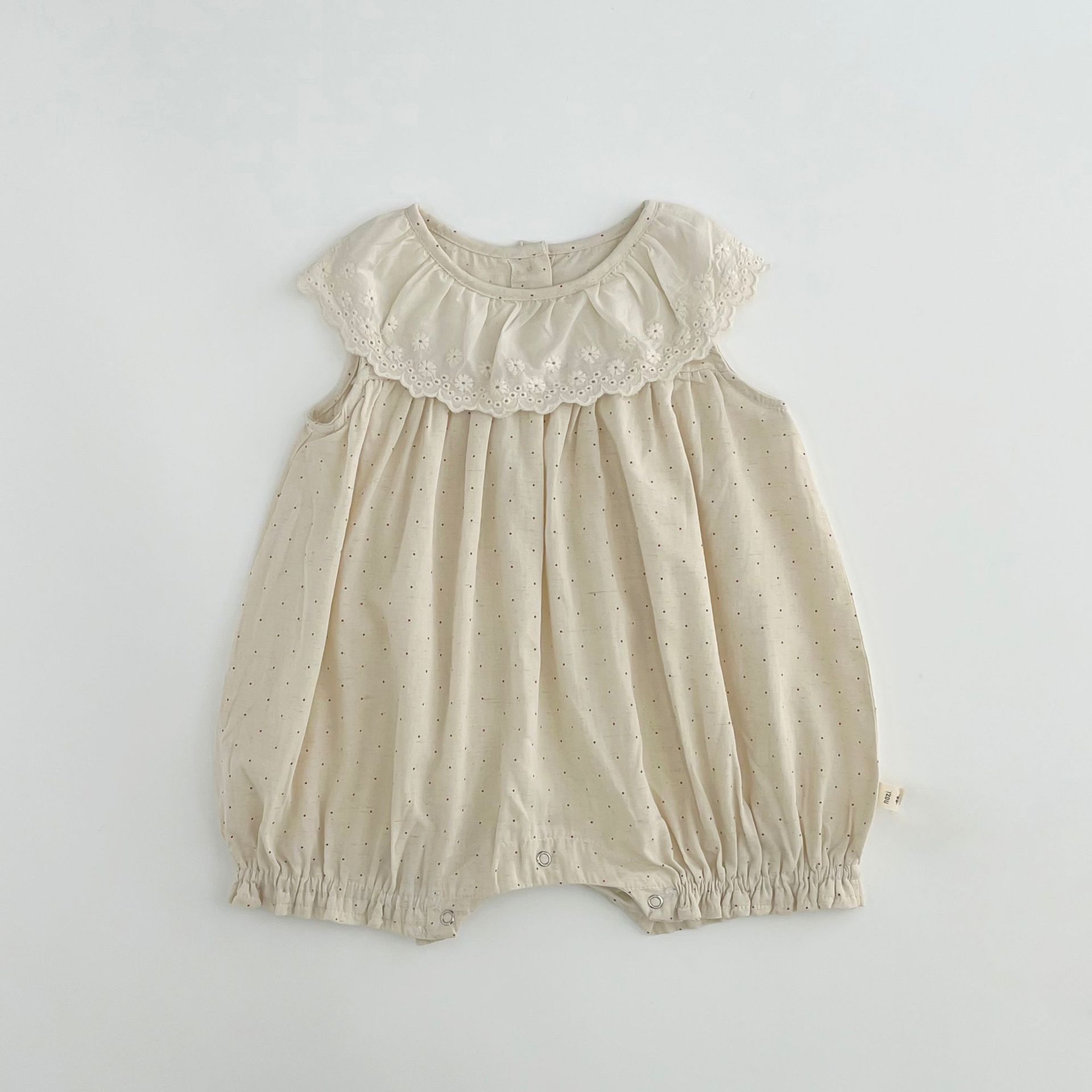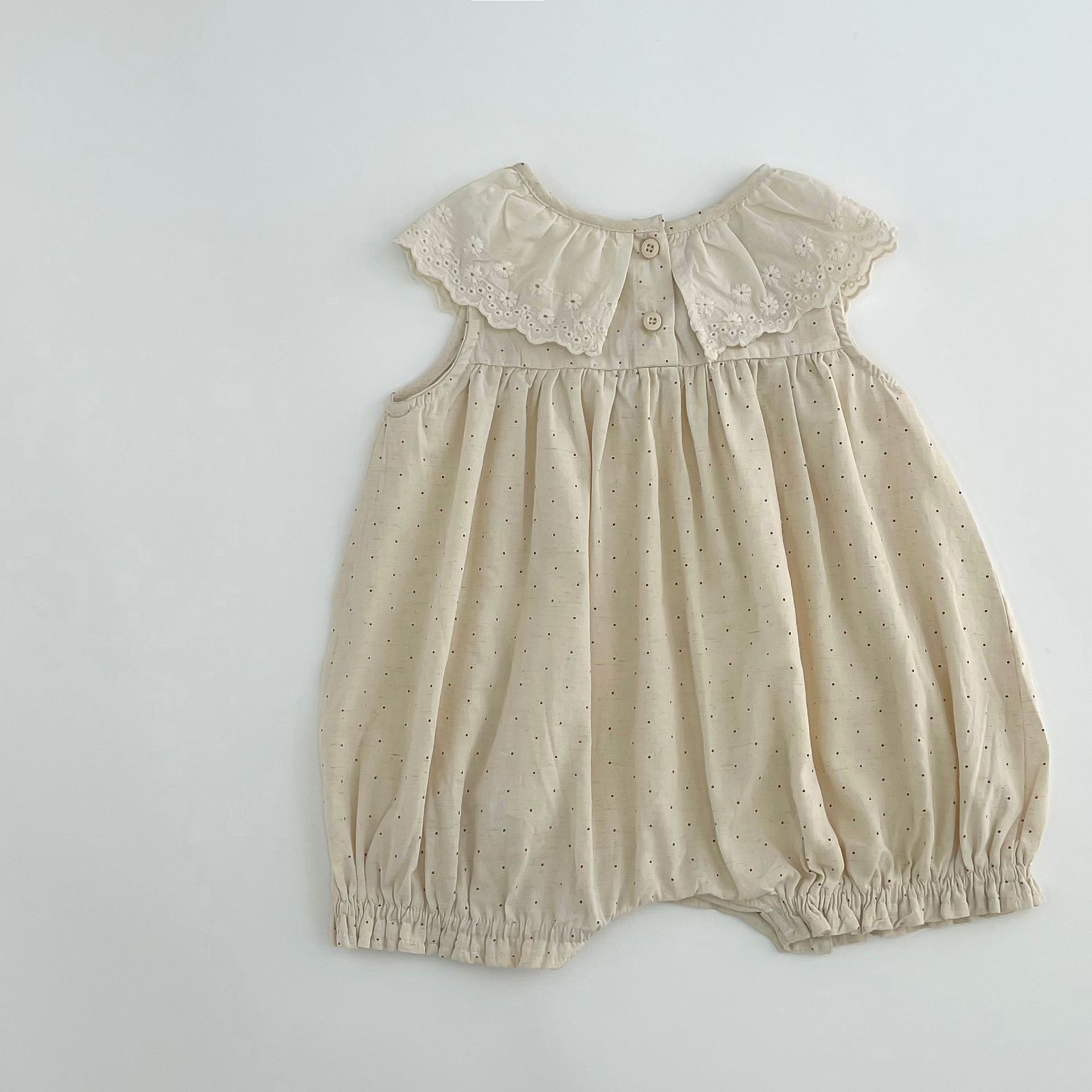 Mameluco de Verano para Bebé Delgado Estilo Coreano Ropa para Niños 2025 Nuevo Mono de Lunares para Niñas Mameluco de Bebé con Cuello Mao