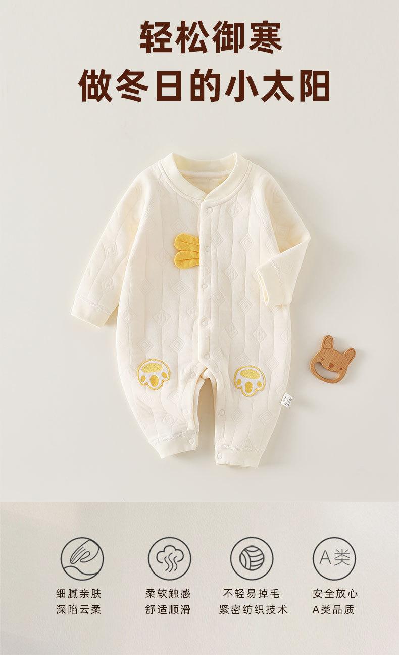Mameluco de Otoño e Invierno para Bebé Cálido de Tres Capas Ropa para Recién Nacido Algodón de Seda Traje para Gatear para Bebé Categoría a Sin Huesos y Suave