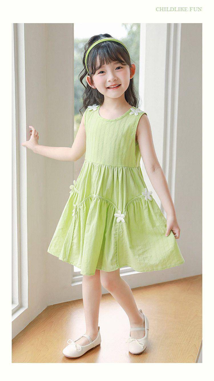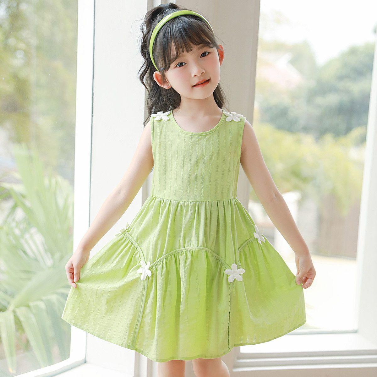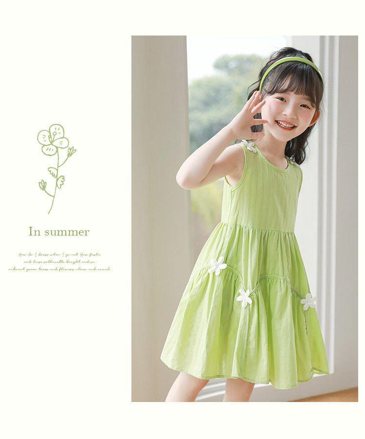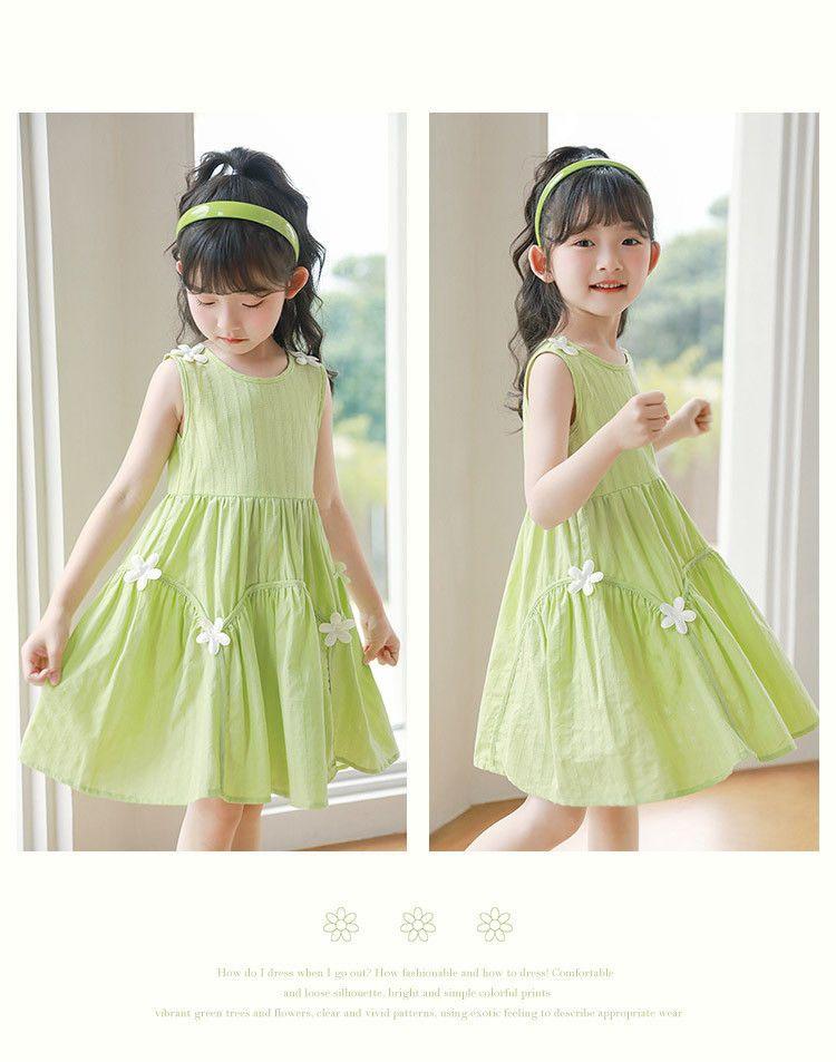 Vestido de Verano para Niñas Moda para Bebés Niños Elegante Moderno Marca Estilo Coreano Flor Estéreo Dulce Princesa Vestido Chaleco