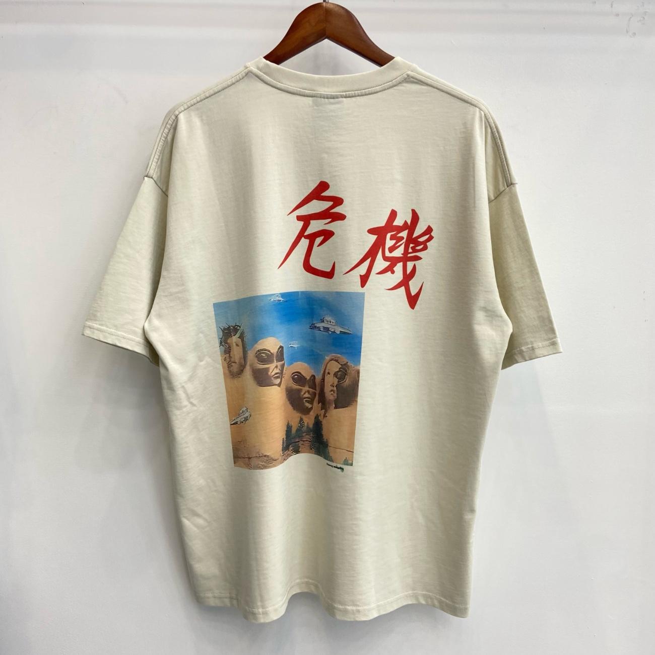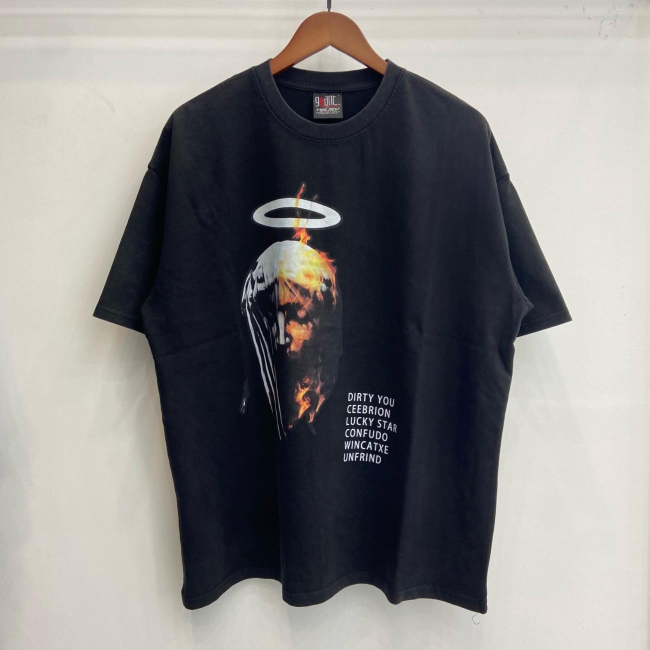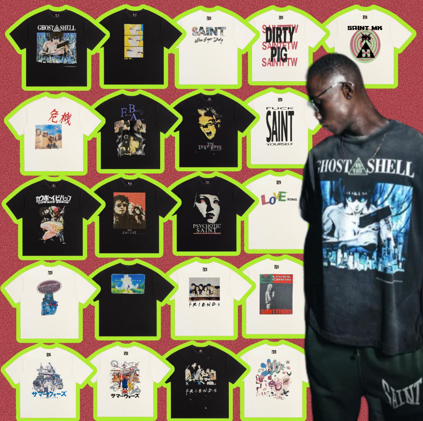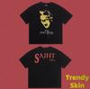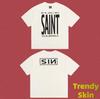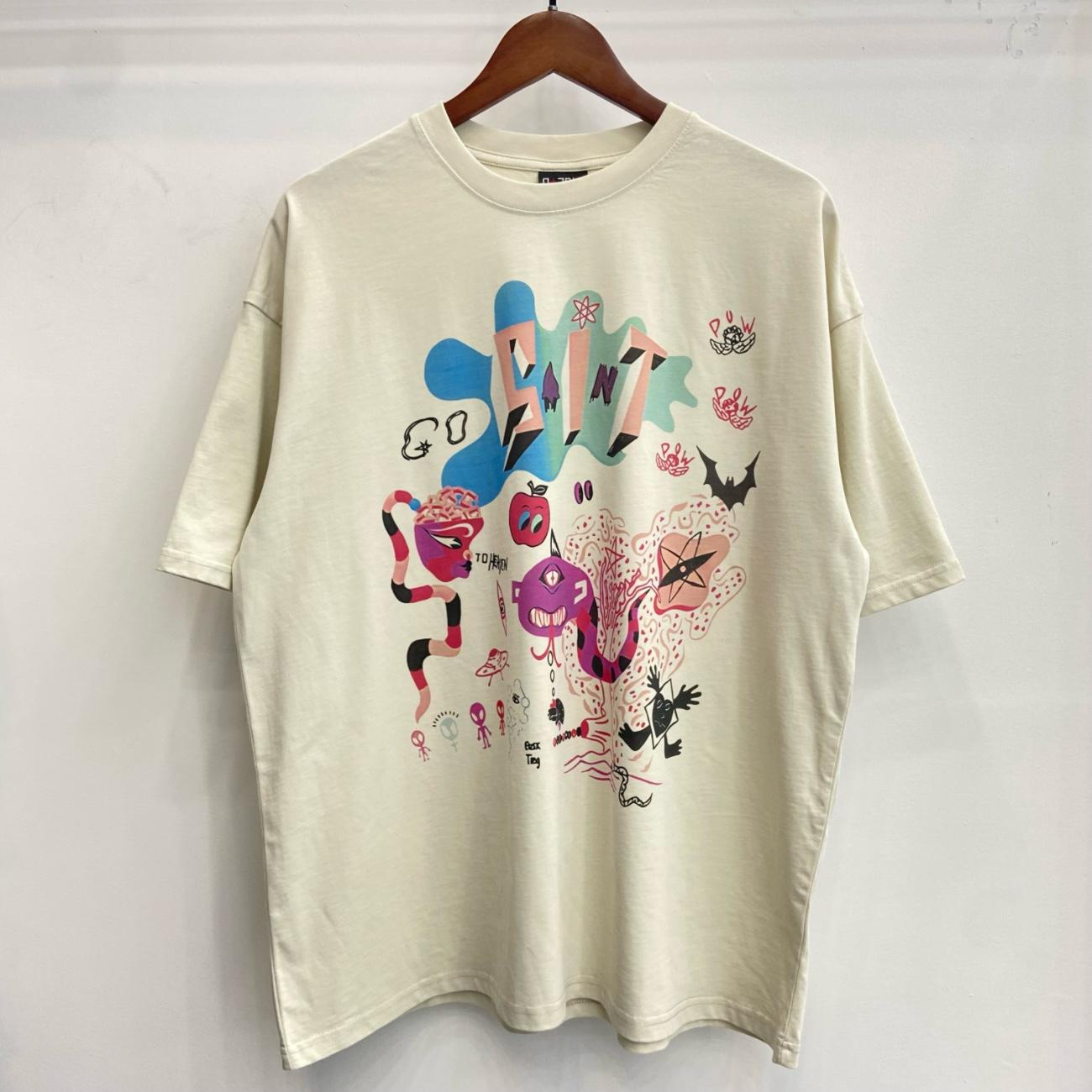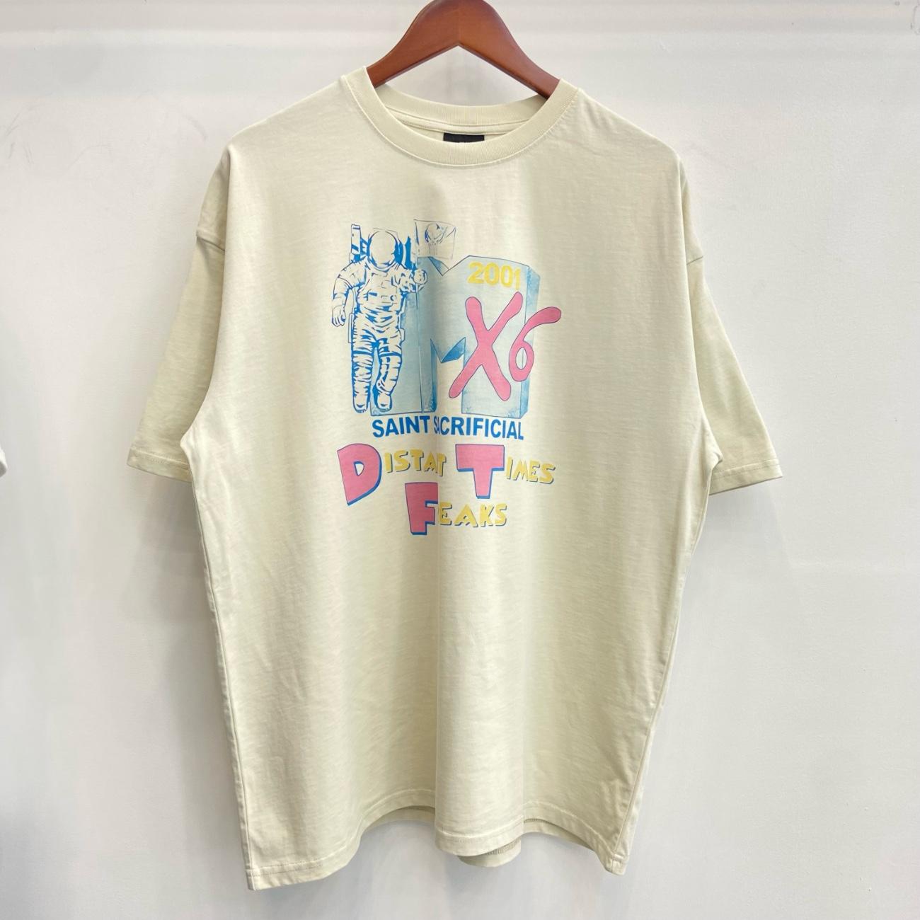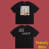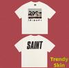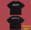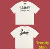 Camiseta de Manga Corta para Hombre Saint Michael American High Street Retro Lavada Holgada Cuello Redondo Trendy Cool