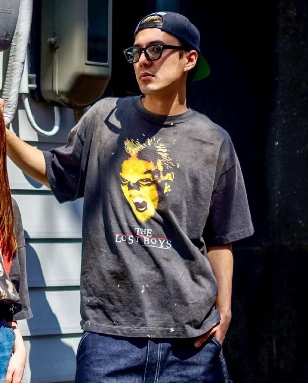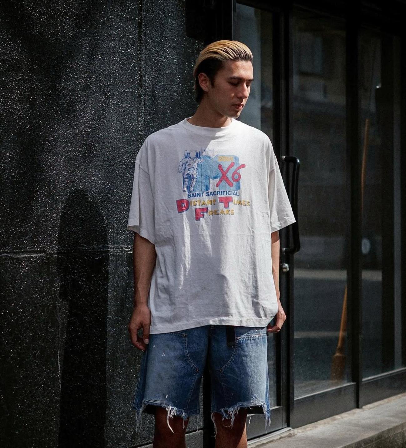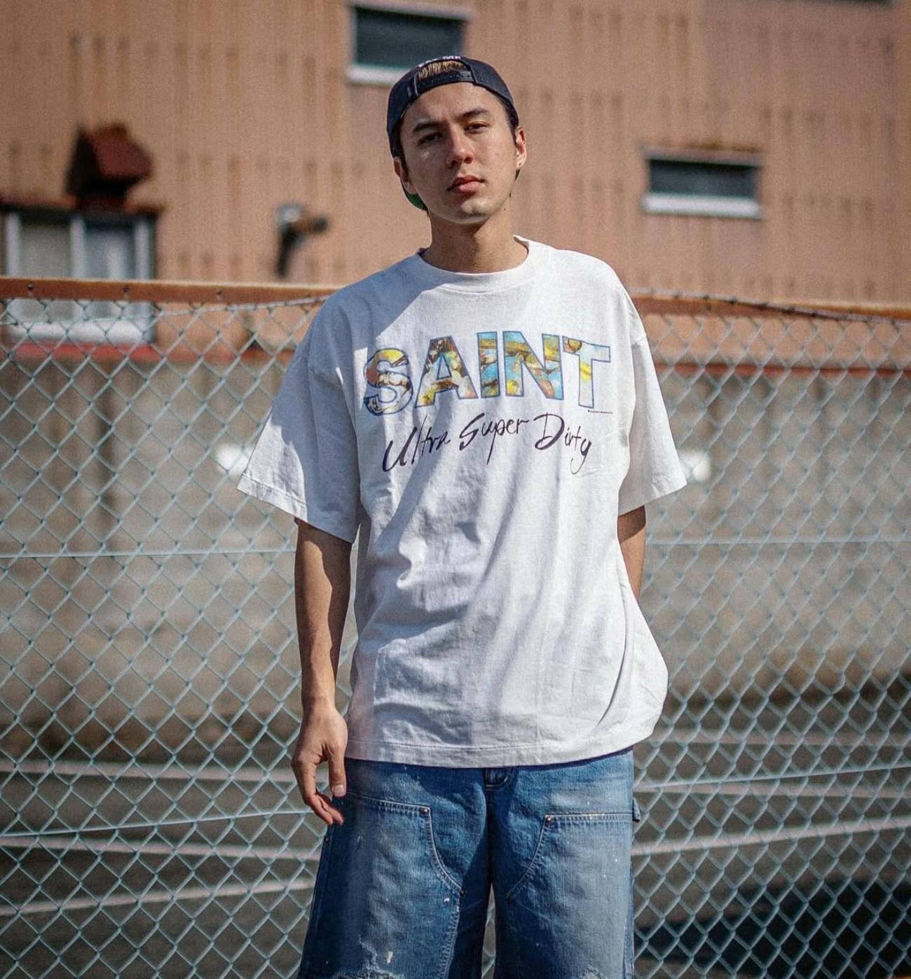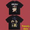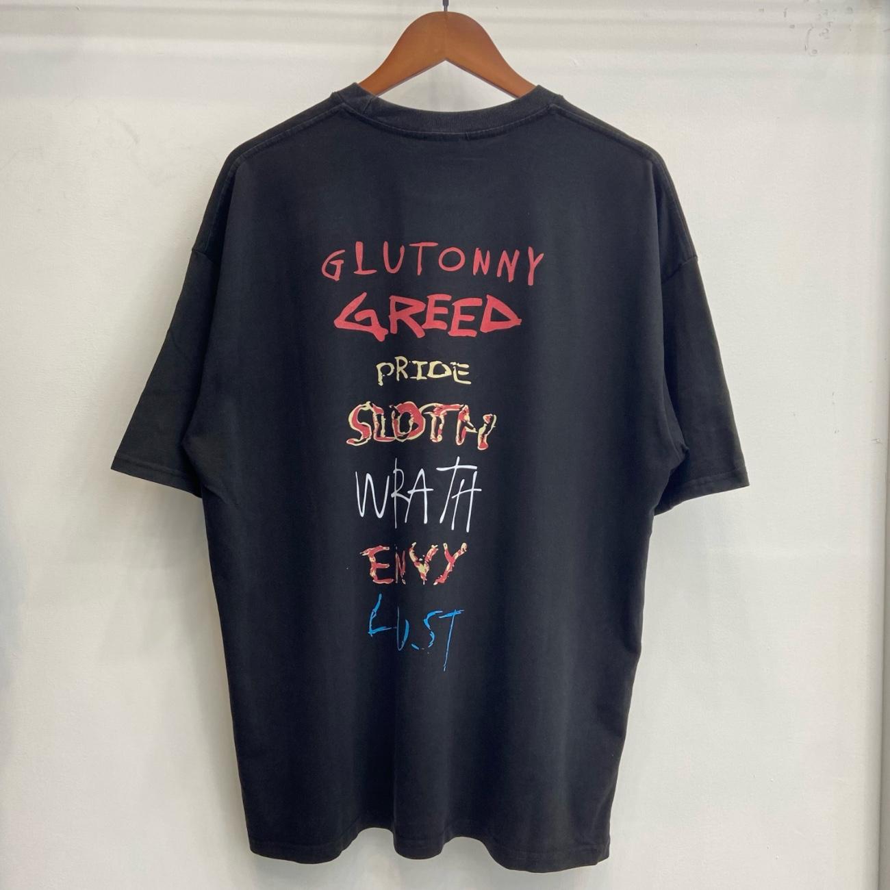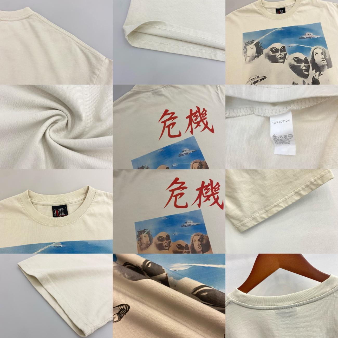 Camiseta de Manga Corta para Hombre Saint Michael American High Street Retro Lavada Holgada Cuello Redondo Trendy Cool