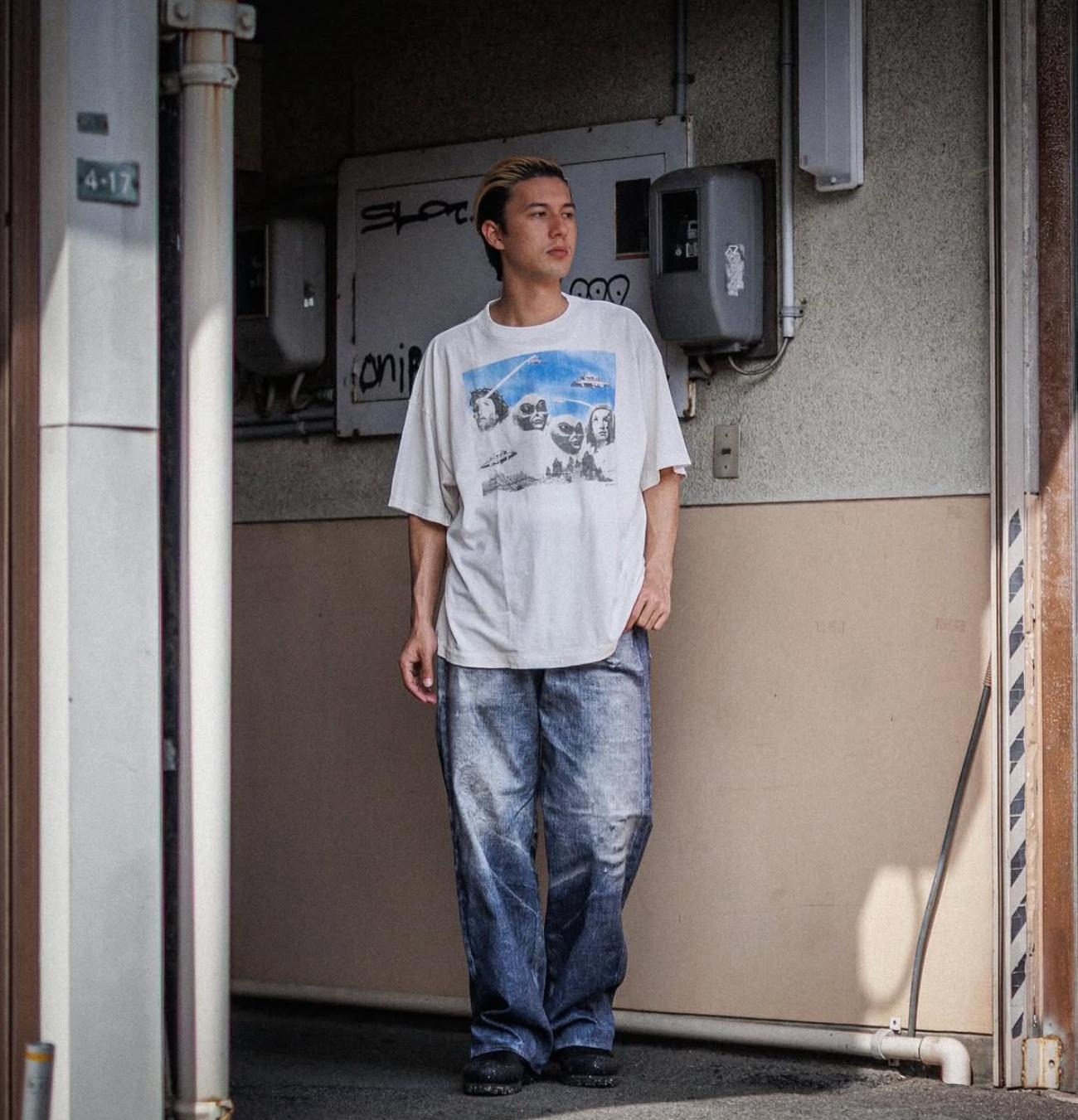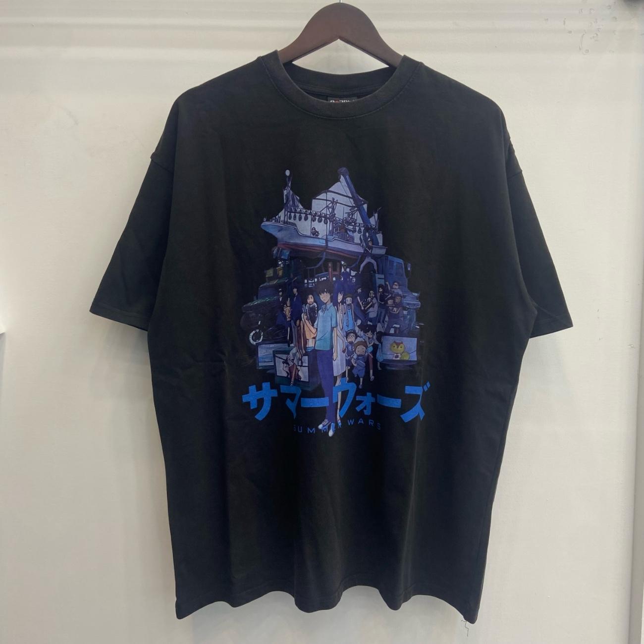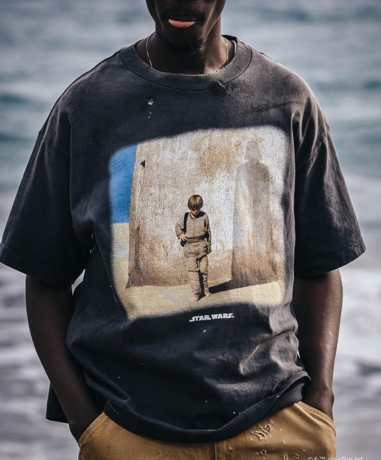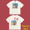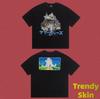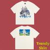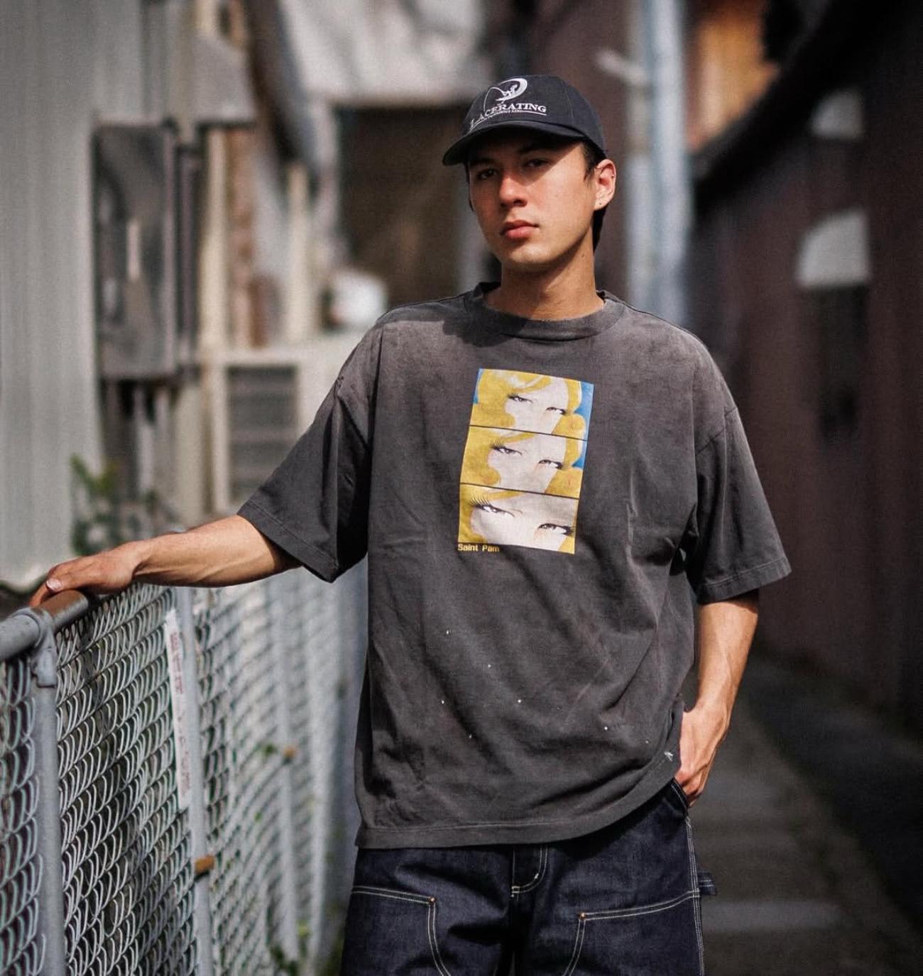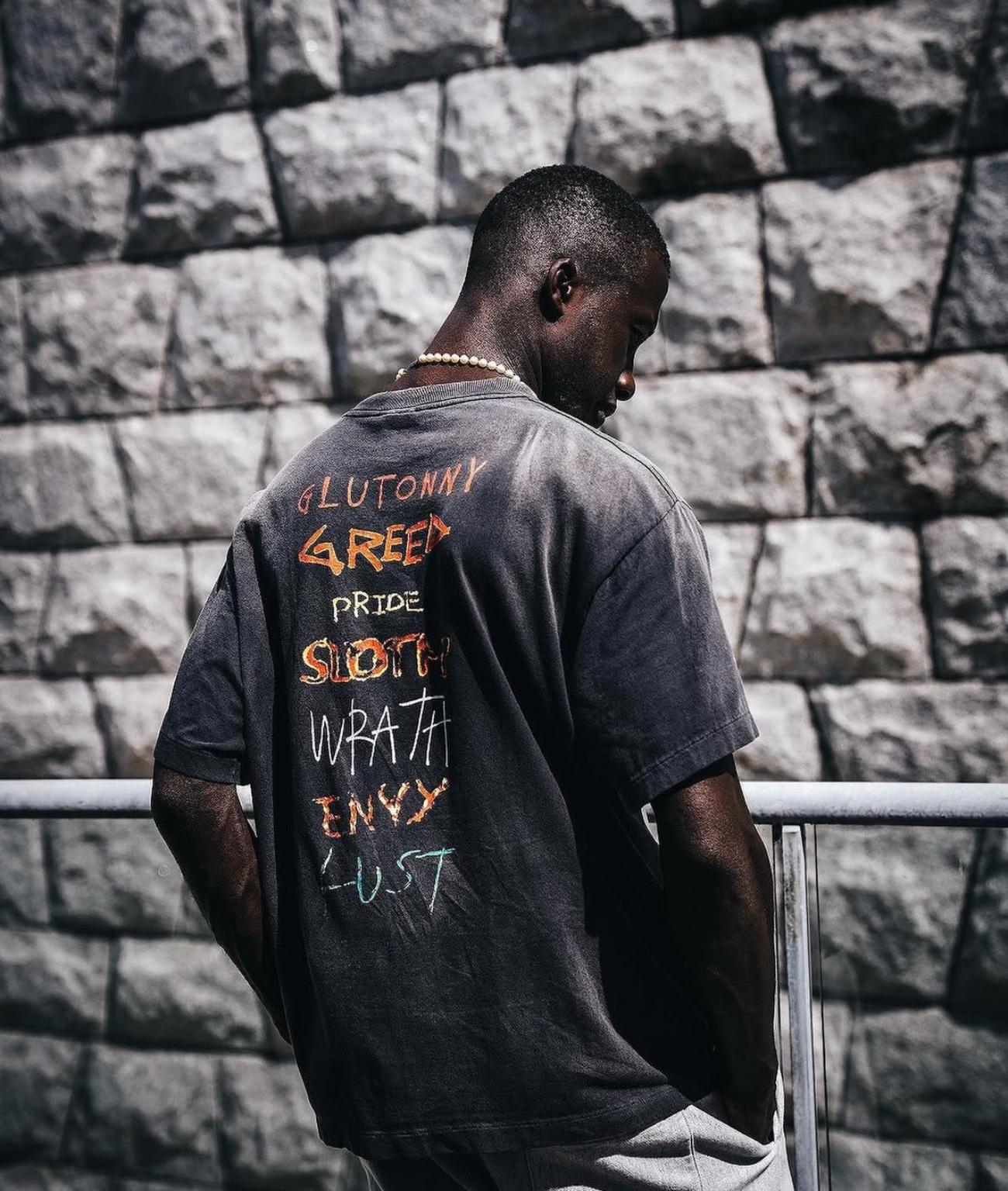 Camiseta de Manga Corta para Hombre Saint Michael American High Street Retro Lavada Holgada Cuello Redondo Trendy Cool