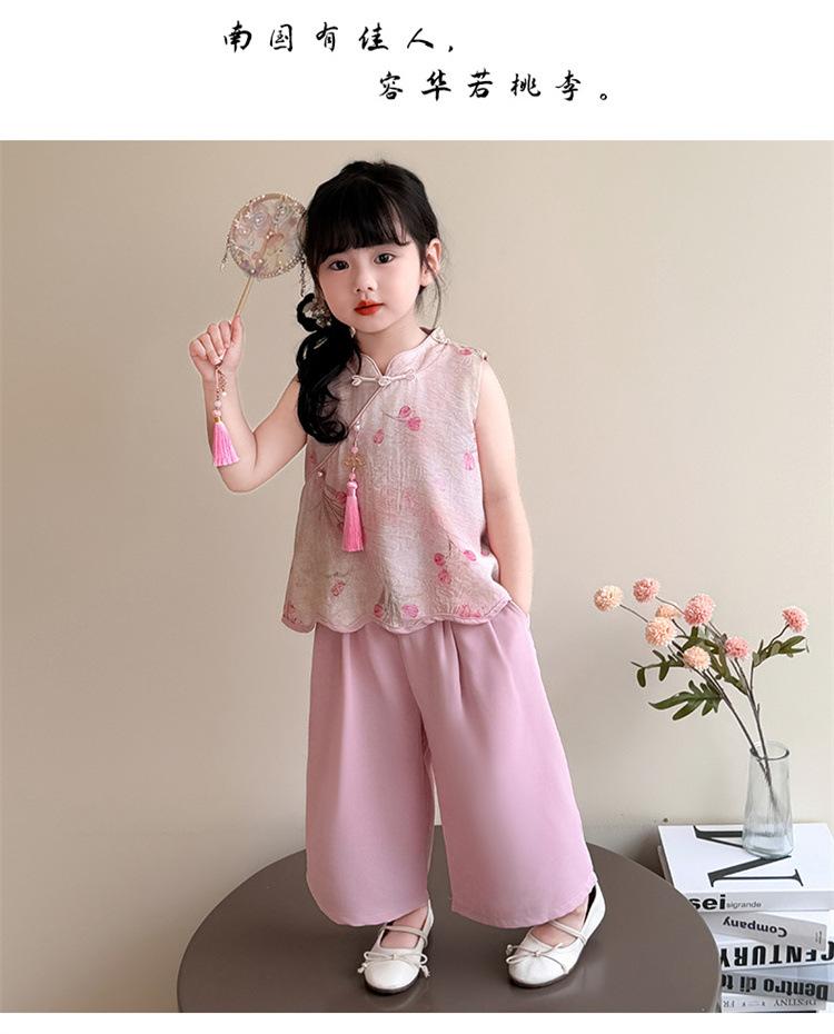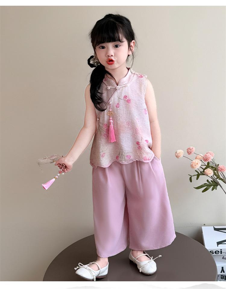 Traje de estilo chino para niña Verano 2025 Nuevo Ropa infantil de estilo chino Cheongsam Traje de verano para bebé niña Hanfu Conjunto de dos piezas