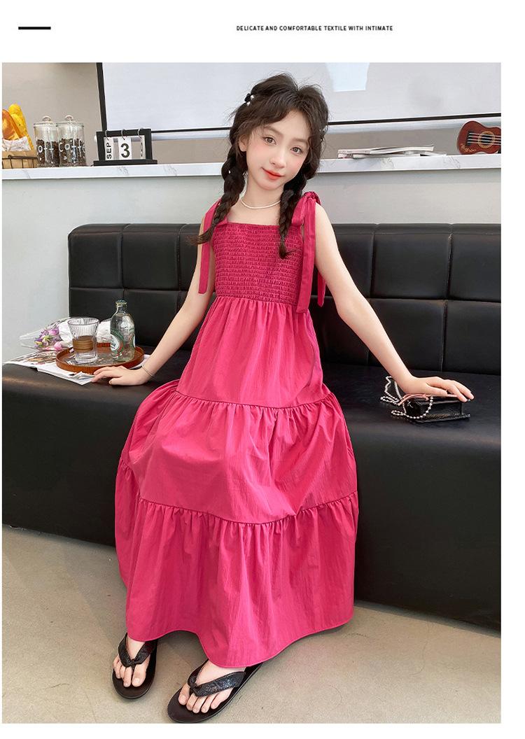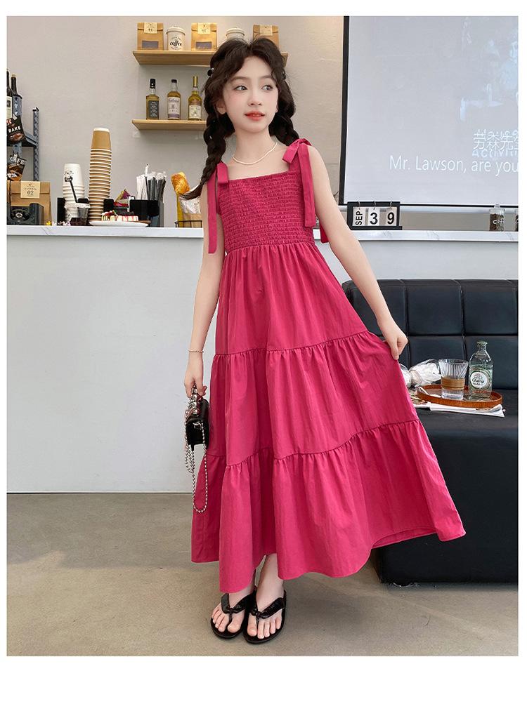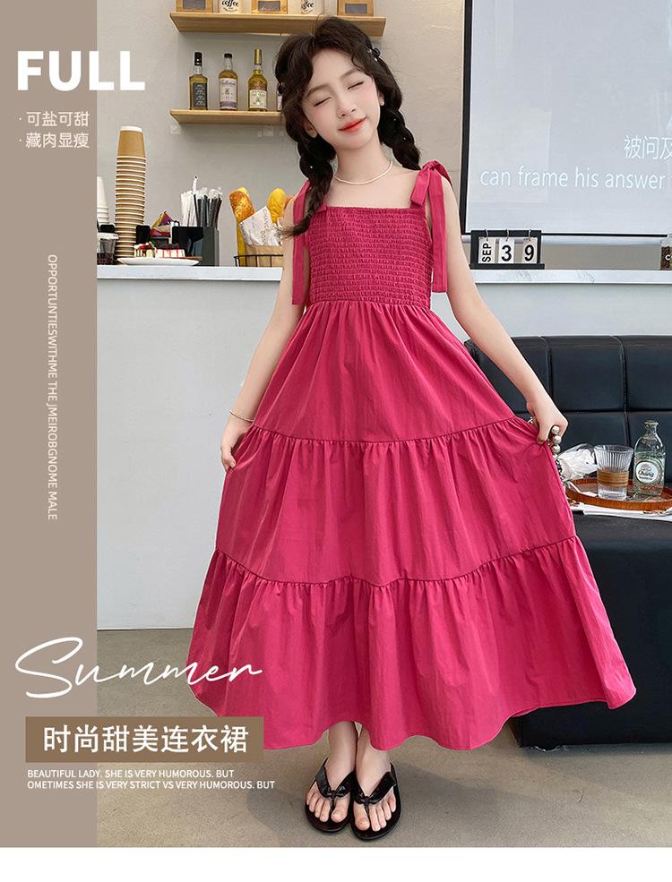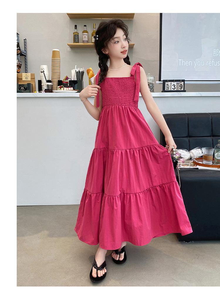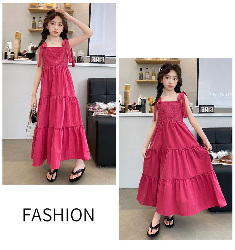 Vestido de niña verano alta gama niños medianos y mayores verano nuevo casual estilo largo lazo tirantes vestido de princesa