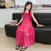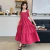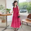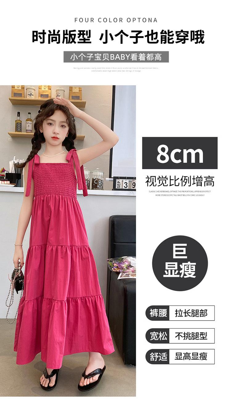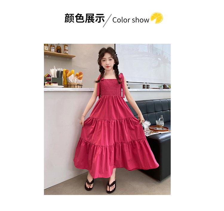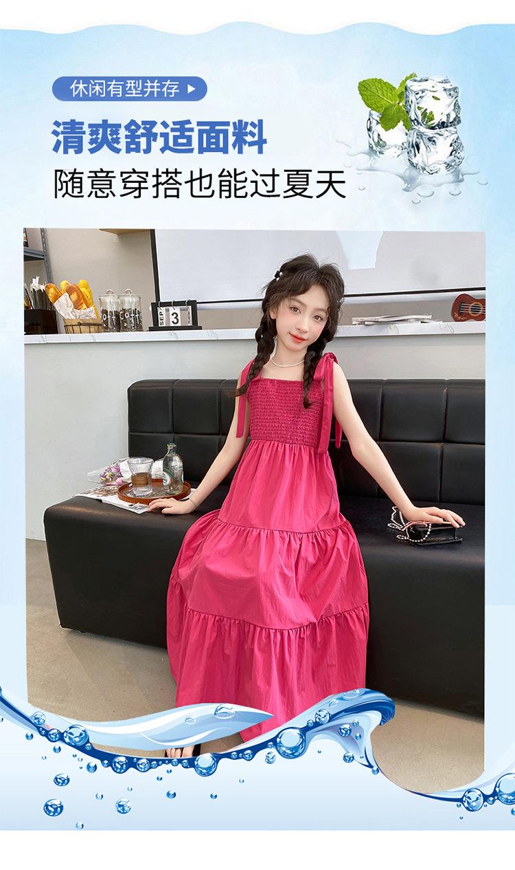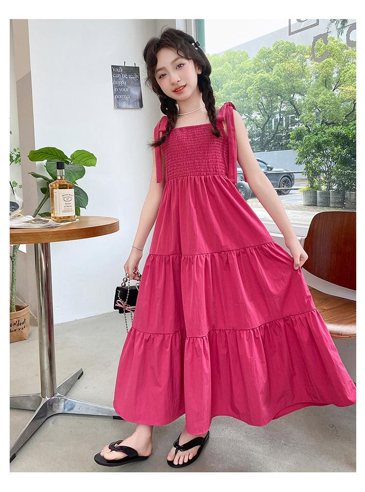 Vestido de niña verano alta gama niños medianos y mayores verano nuevo casual estilo largo lazo tirantes vestido de princesa