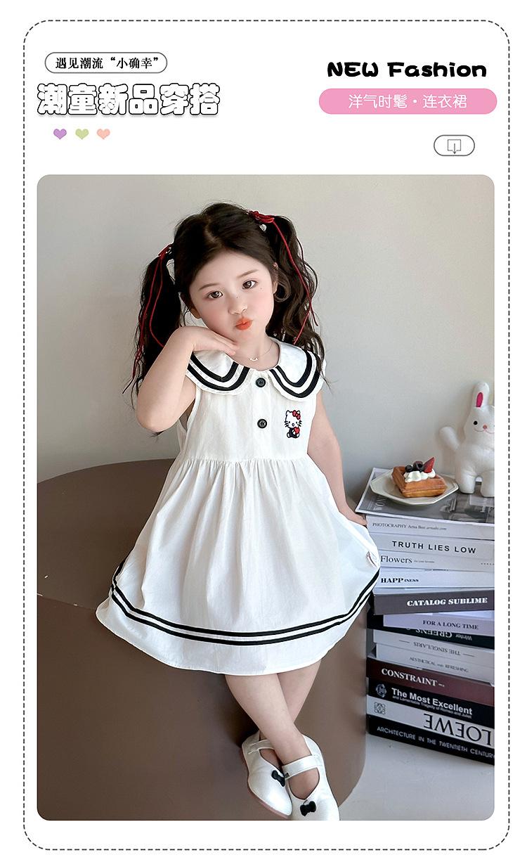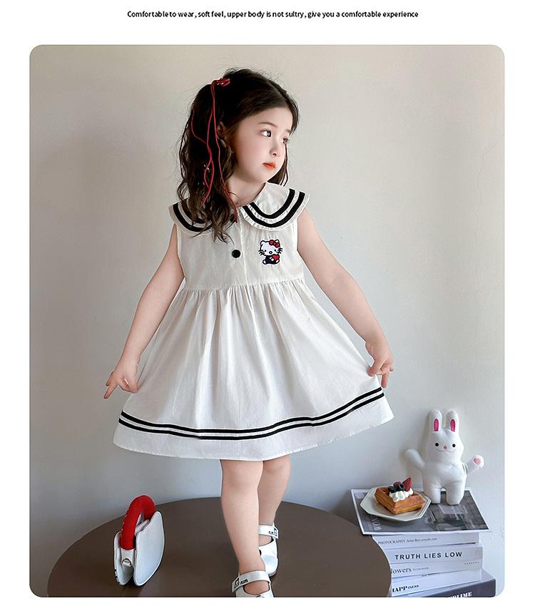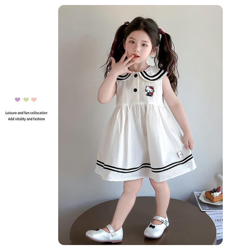 Vestido de Princesa con Cuello de Muñeca para Niñas Verano 2025 Nuevo Bebé Estilo Coreano Vestido Occidental Vestido Infantil sin Mangas de Gato