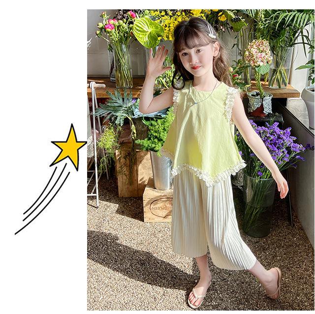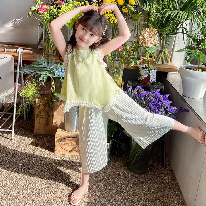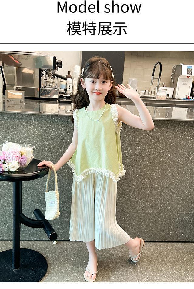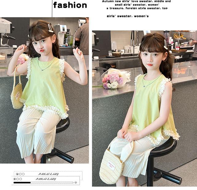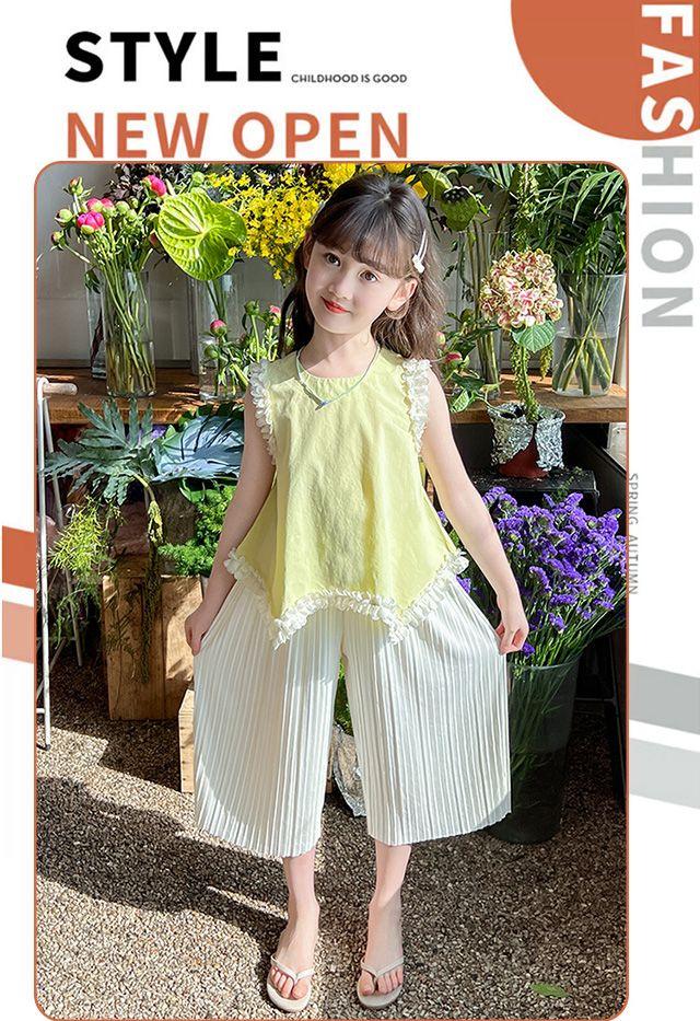 Traje de Verano Nuevo Casual de Moda para Niñas Elegante Combinable Moda de Dos Piezas Chaleco sin Mangas para Bebé
