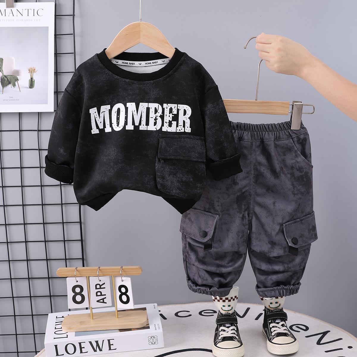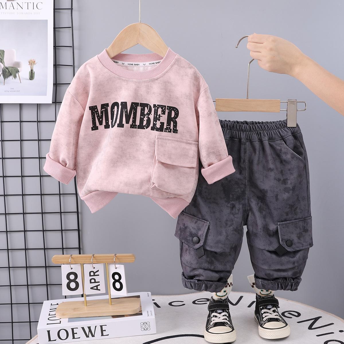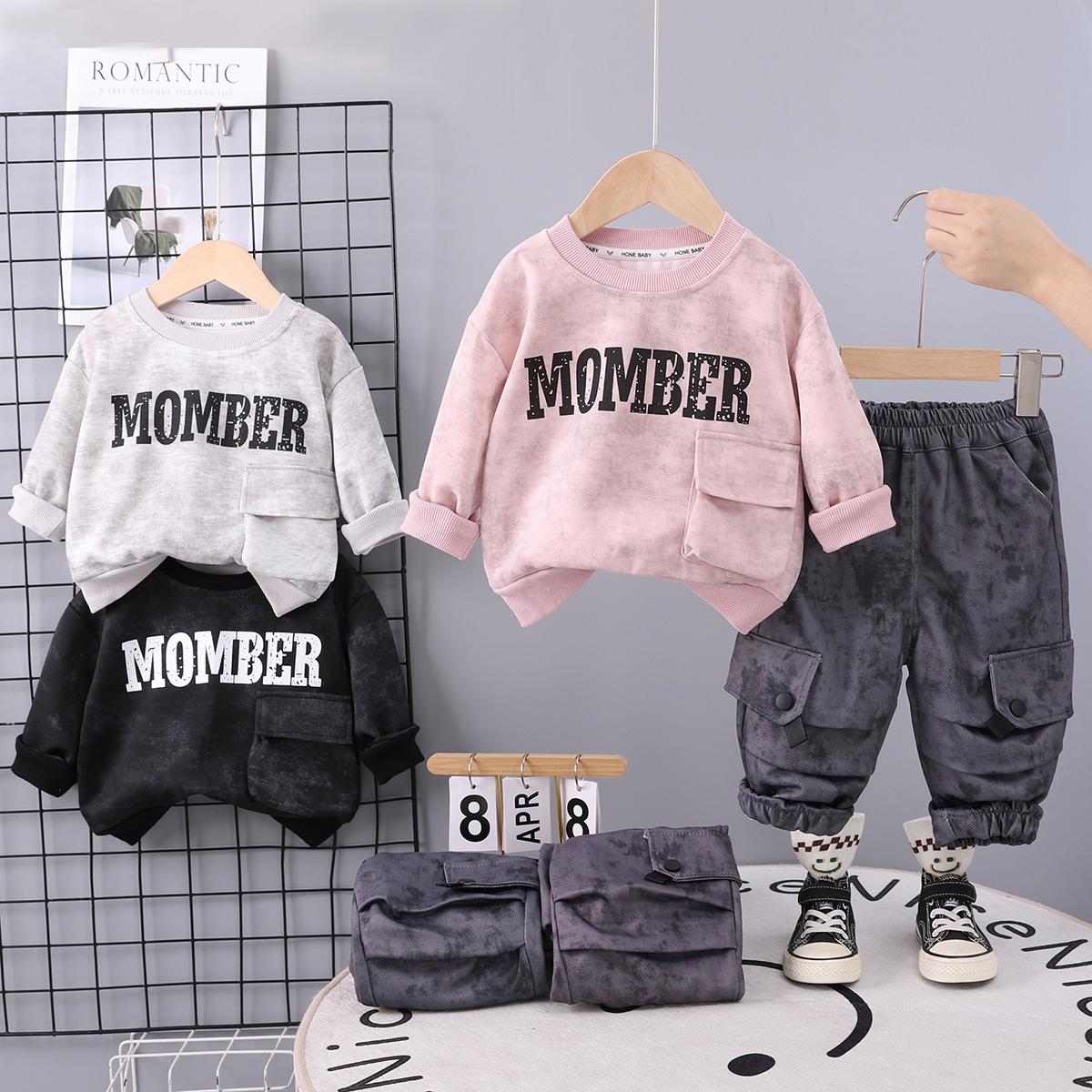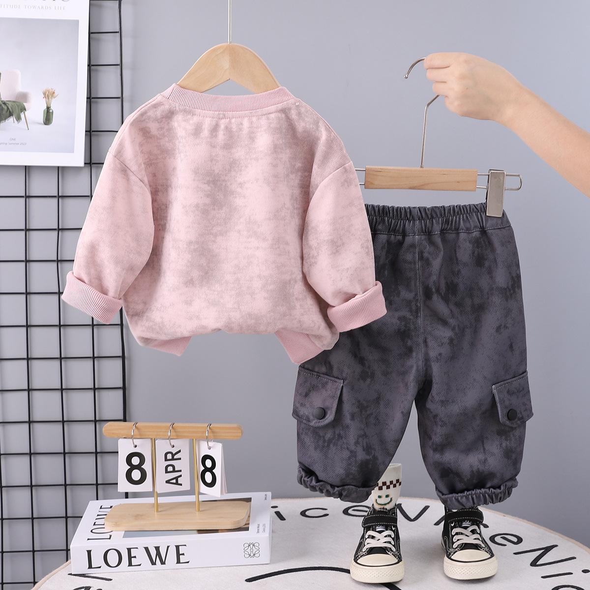 Compra Trajes de estilo primavera y otoño para niños 2025 Nuevo estilo para niños Bebé Inglés Casual Moda Sudadera Tie-Dye Conjunto de dos piezas al por mayor en Joom.pro