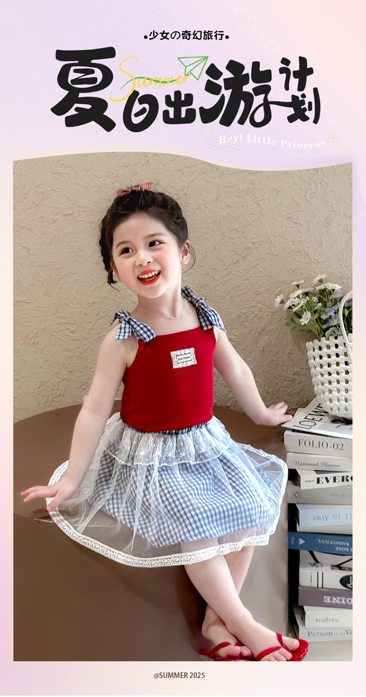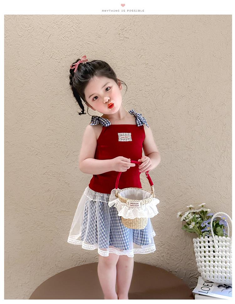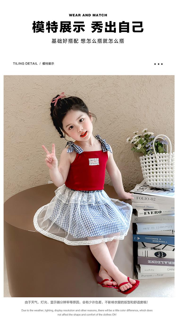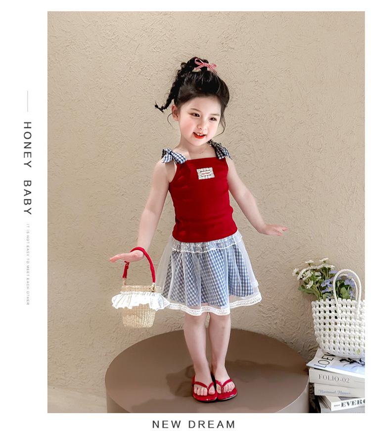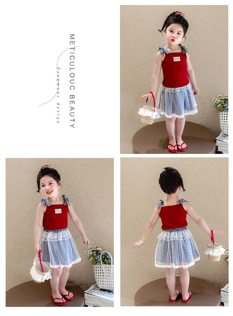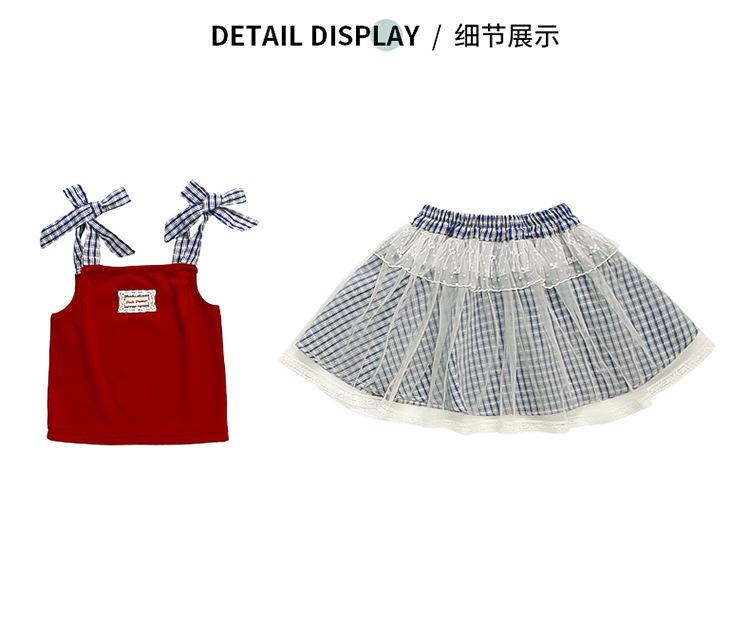 Compra Traje de Falda con Tirantes para Niñas Verano 2024 Nuevo Estilo Coreano Moderno Chaleco Infantil Falda de Encaje Conjunto de Verano de Dos Piezas al por mayor en Joom.pro