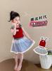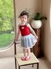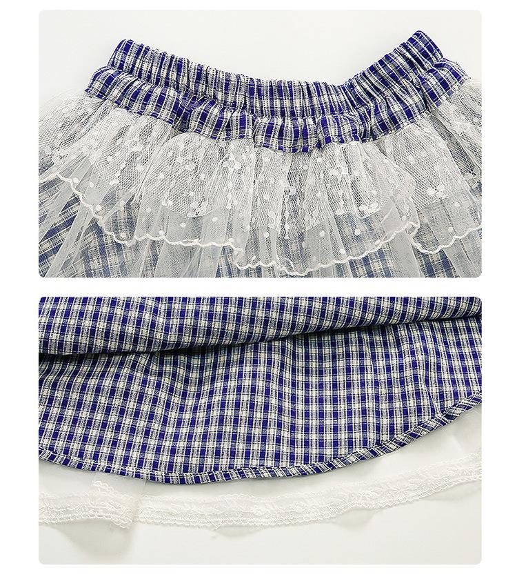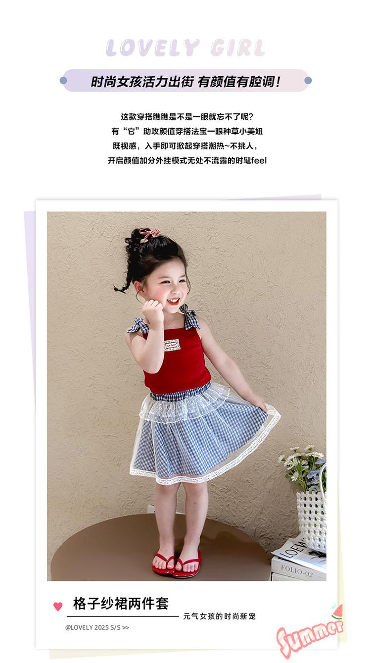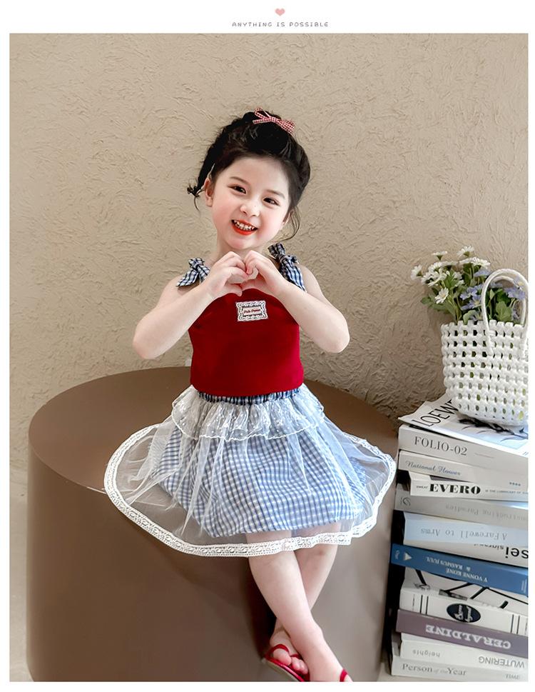 Traje de Falda con Tirantes para Niñas Verano 2024 Nuevo Estilo Coreano Moderno Chaleco Infantil Falda de Encaje Conjunto de Verano de Dos Piezas