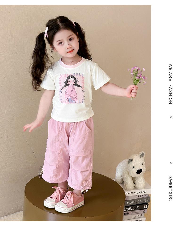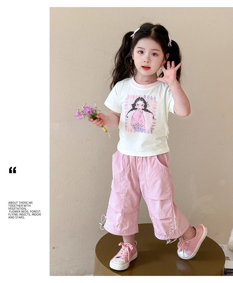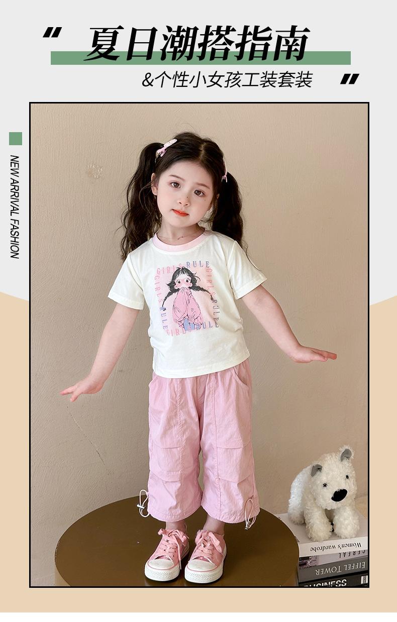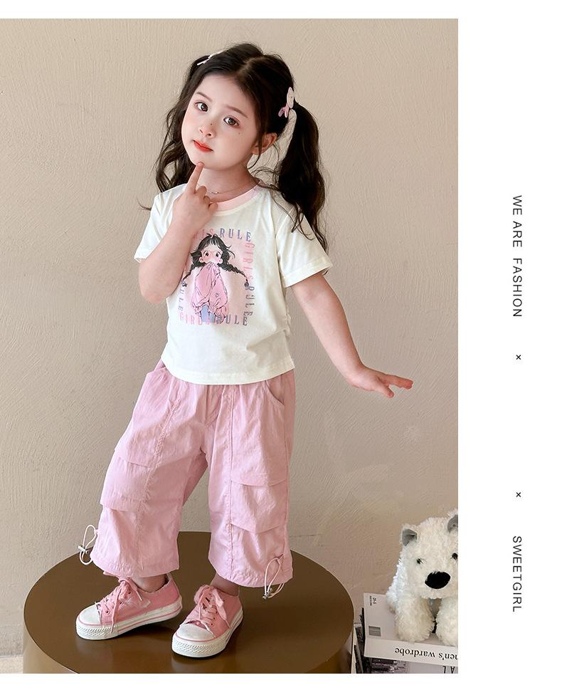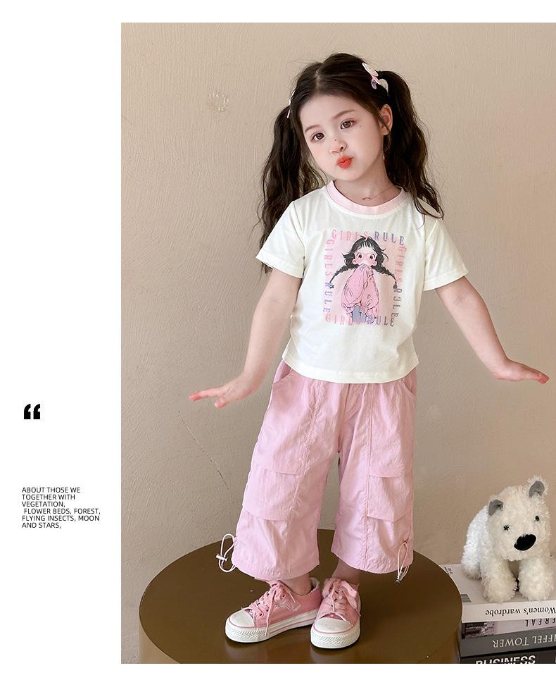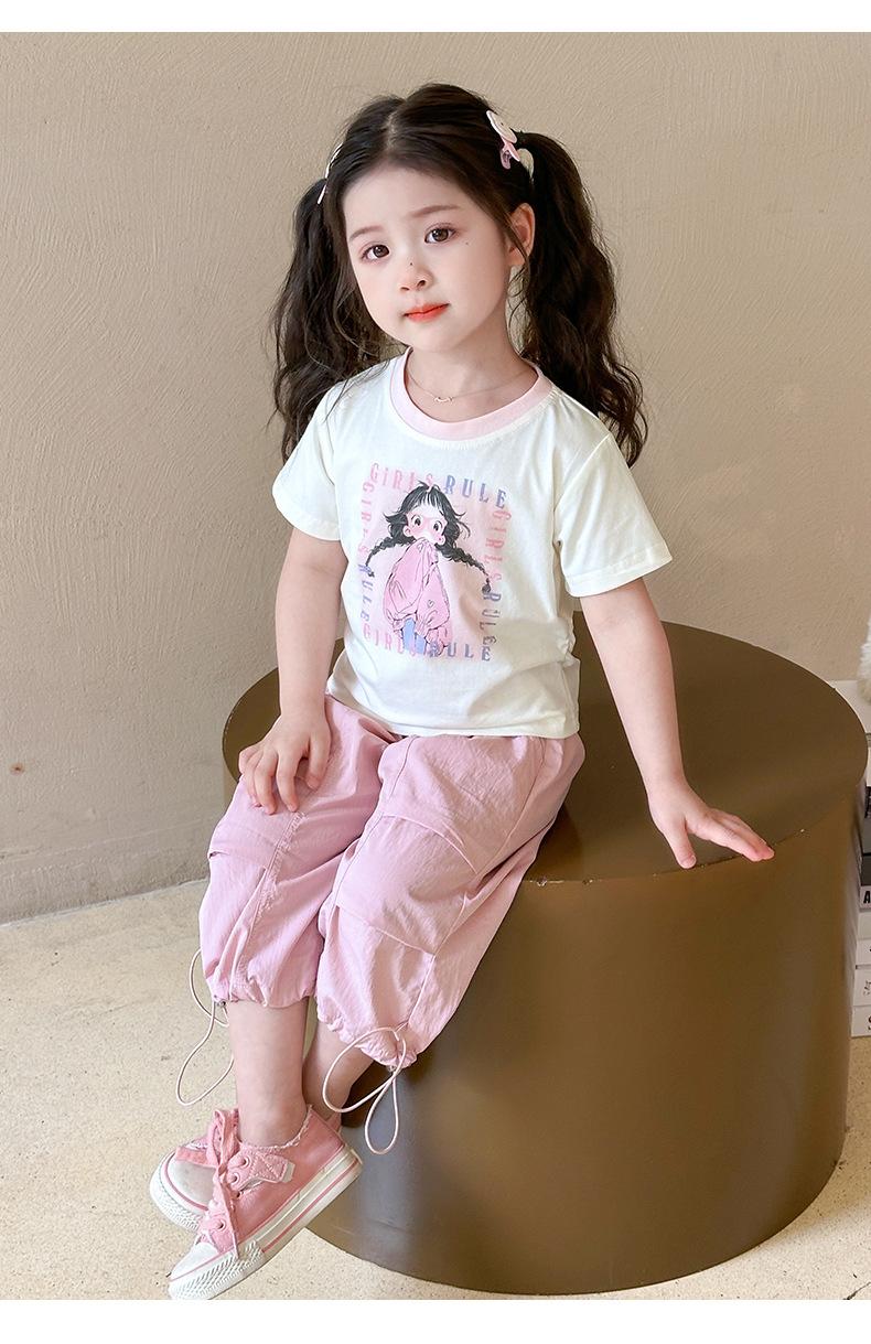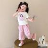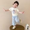 Traje de camiseta de manga corta de verano para niñas 2025 Nuevo conjunto de dos piezas casual y moderno para niños Ropa de verano para bebés a la moda