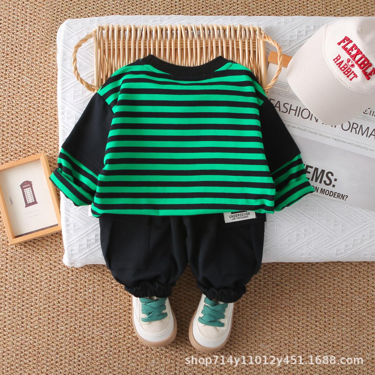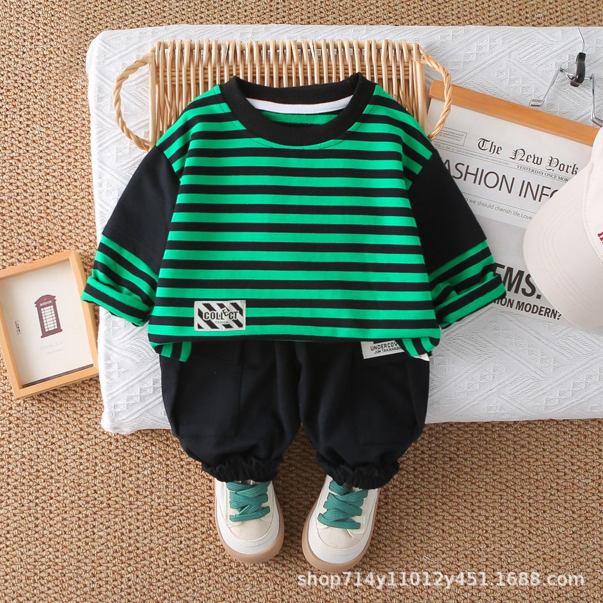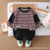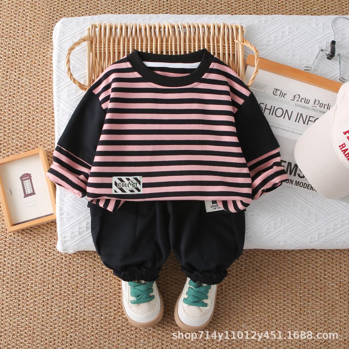 Compra Elegante Conjunto Rayado de Cuello Redondo para Bebés 2025 Otoño Nuevo Estilo Niños y Niñas Sudadera Casual de Manga Larga Conjunto de Dos Piezas Ropa de Moda al por mayor en Joom.pro