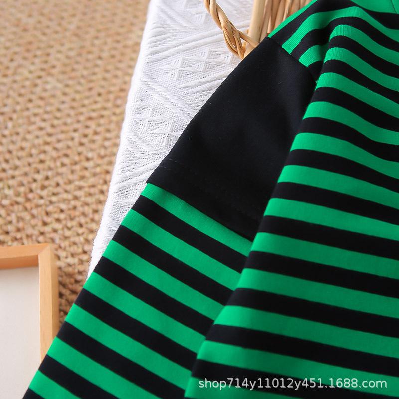 Long-sleeve striped two-piece set green, Long-sleeve striped two-piece set pink