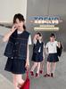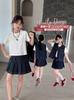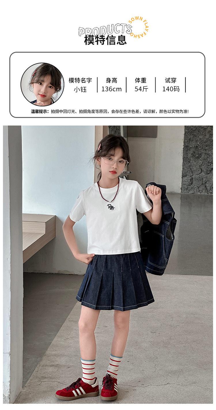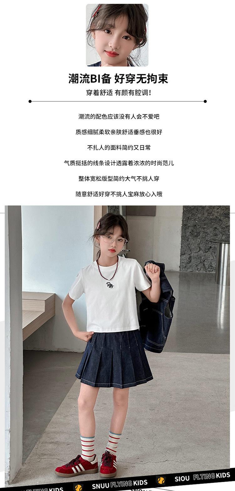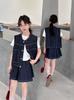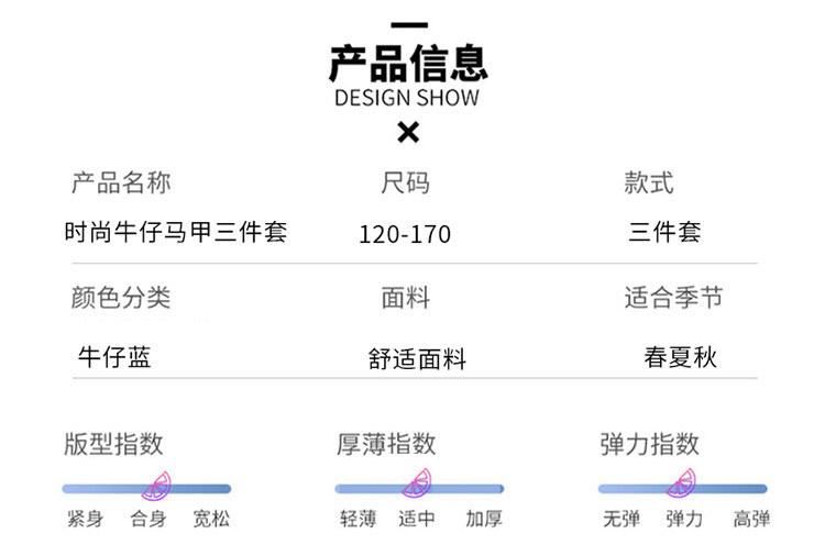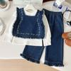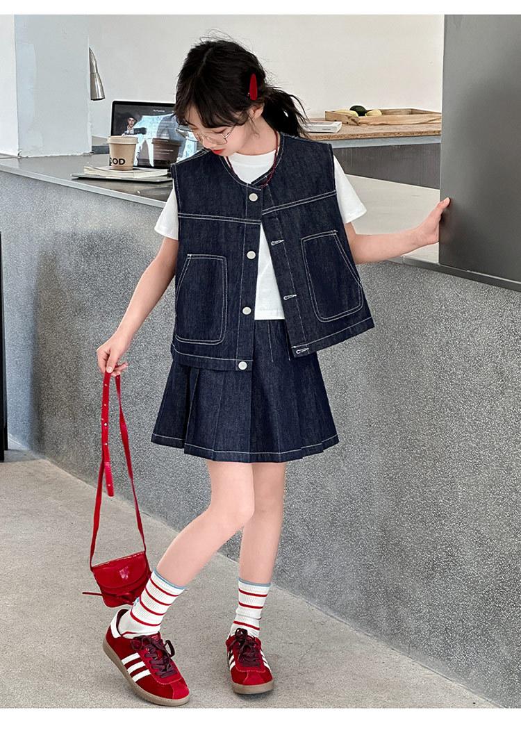 Traje de mezclilla para niña 2025 Primavera y Verano Nuevo Estilo Chaleco de Moda para Niños Camiseta Conjunto Americano de Tres Piezas para Niños Medianos y Grandes