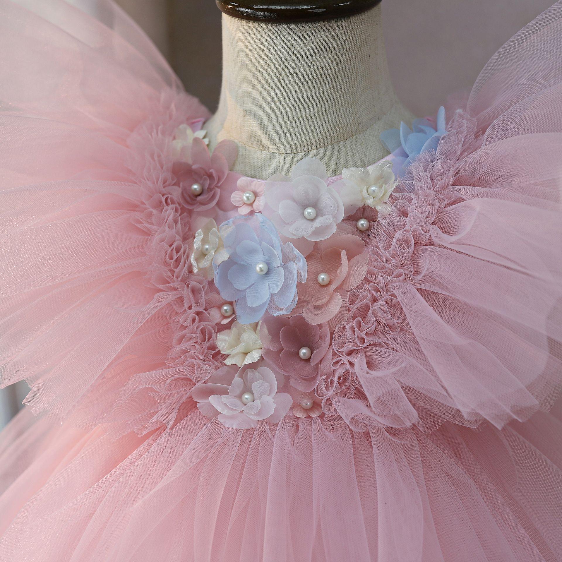 Estilo Verano Nueva Falda de Tul Abullonada para Niñas Niña de las Flores Fiesta de Cumpleaños Vestido de Princesa Manga Flotante Vestido Formal Disfraz de Actuación para Niños