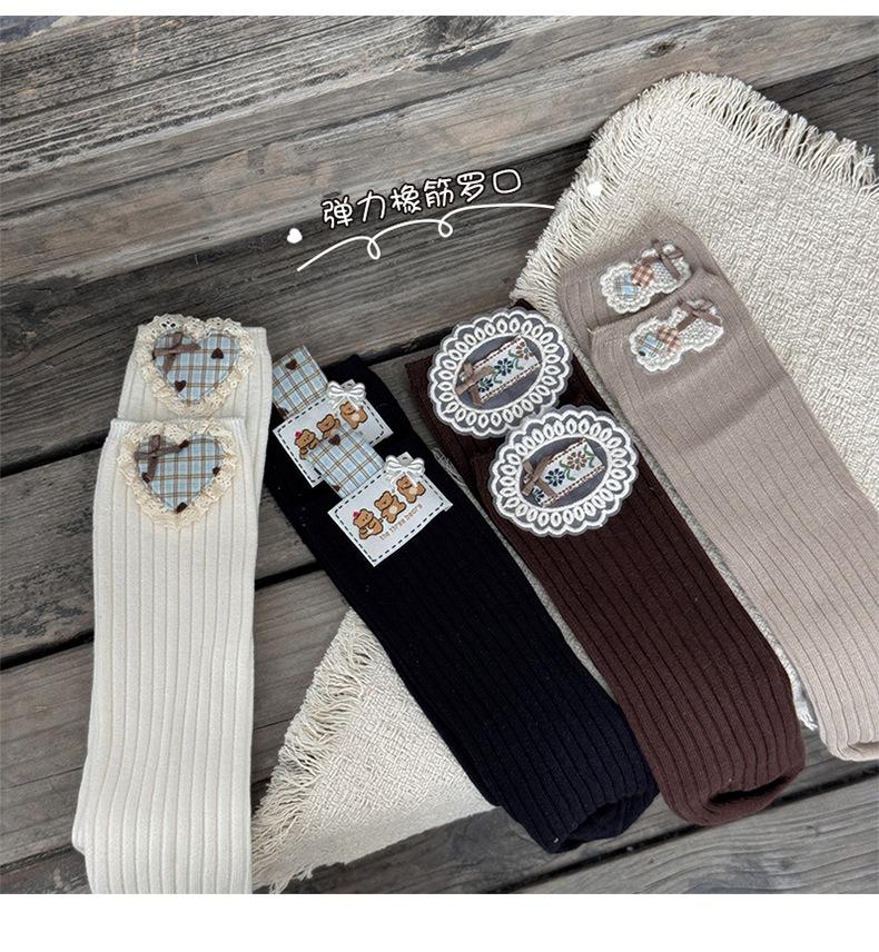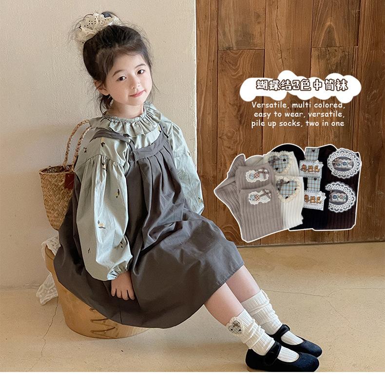 Calcetines hasta la rodilla para niña Primavera Otoño Calcetines de algodón Cachorro Lazo Calcetines arrugados Calcetines para niños Calcetines hasta la pantorrilla Calcetines altos para bebé niña