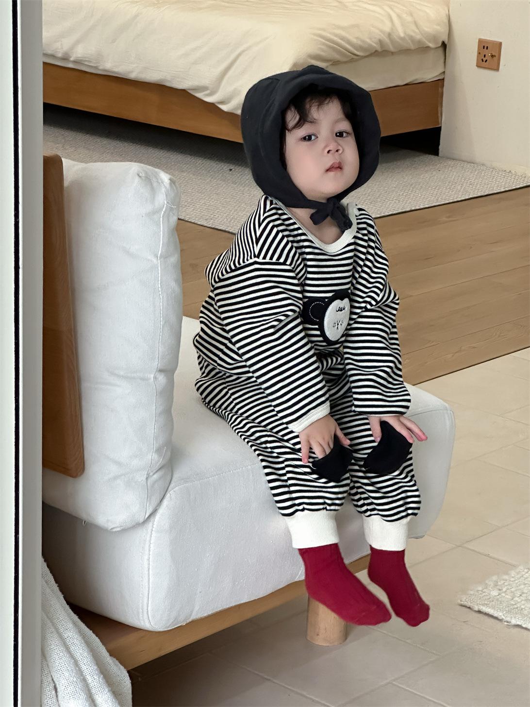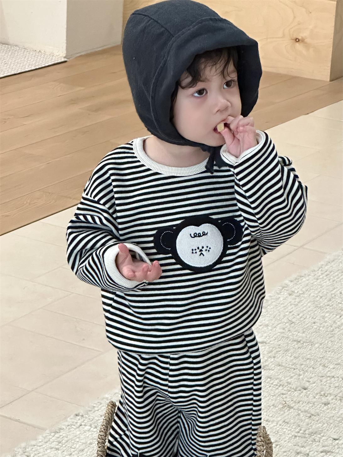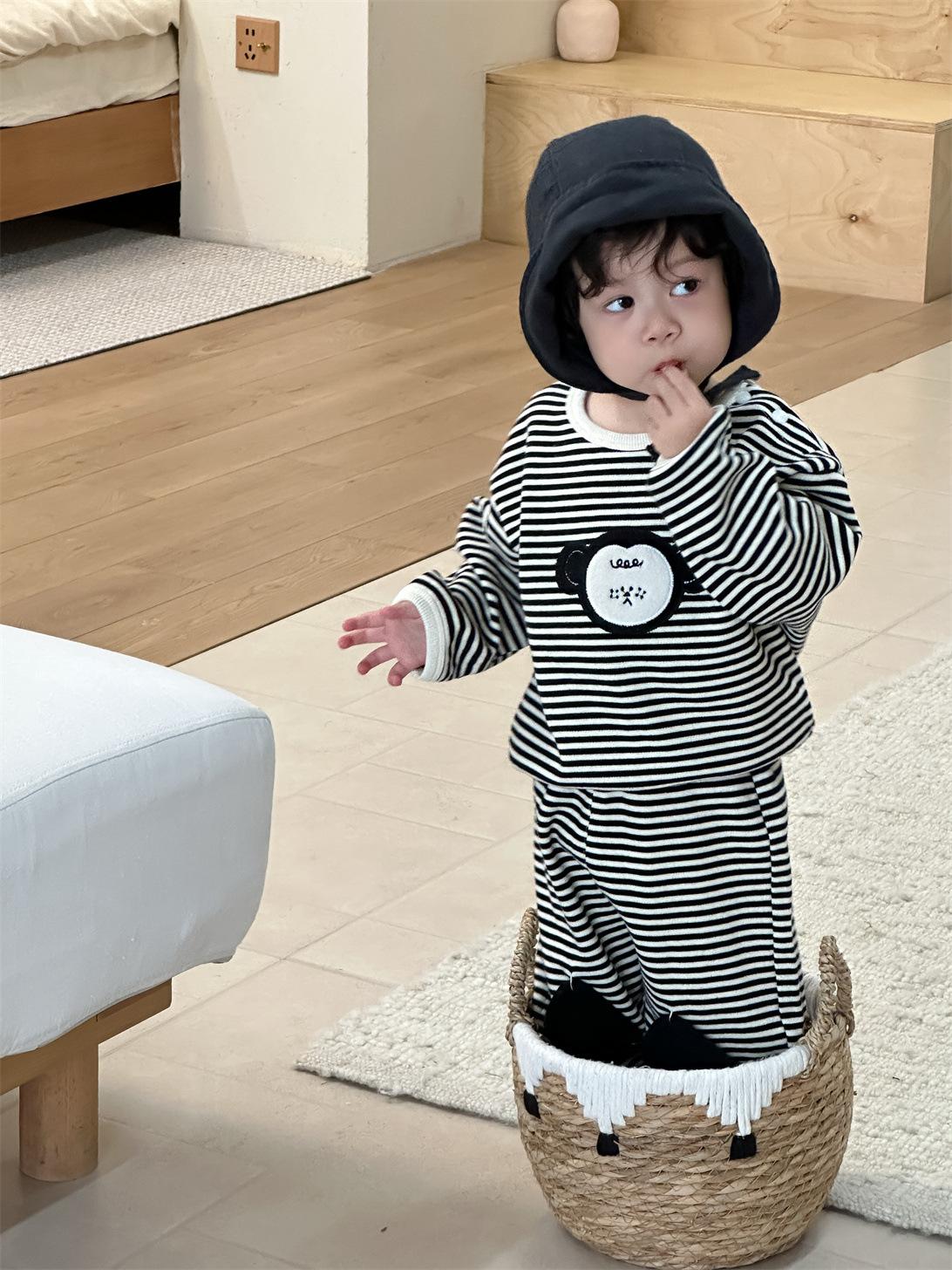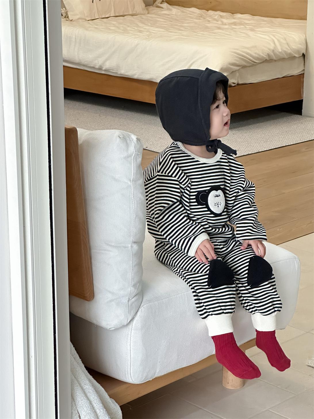 Conjunto Rayado para Bebé Otoño 2025 Nuevo Estilo Ropa de Niño Estilo Coreano Conjunto de Dos Piezas de Manga Larga para Niños Ropa de Otoño