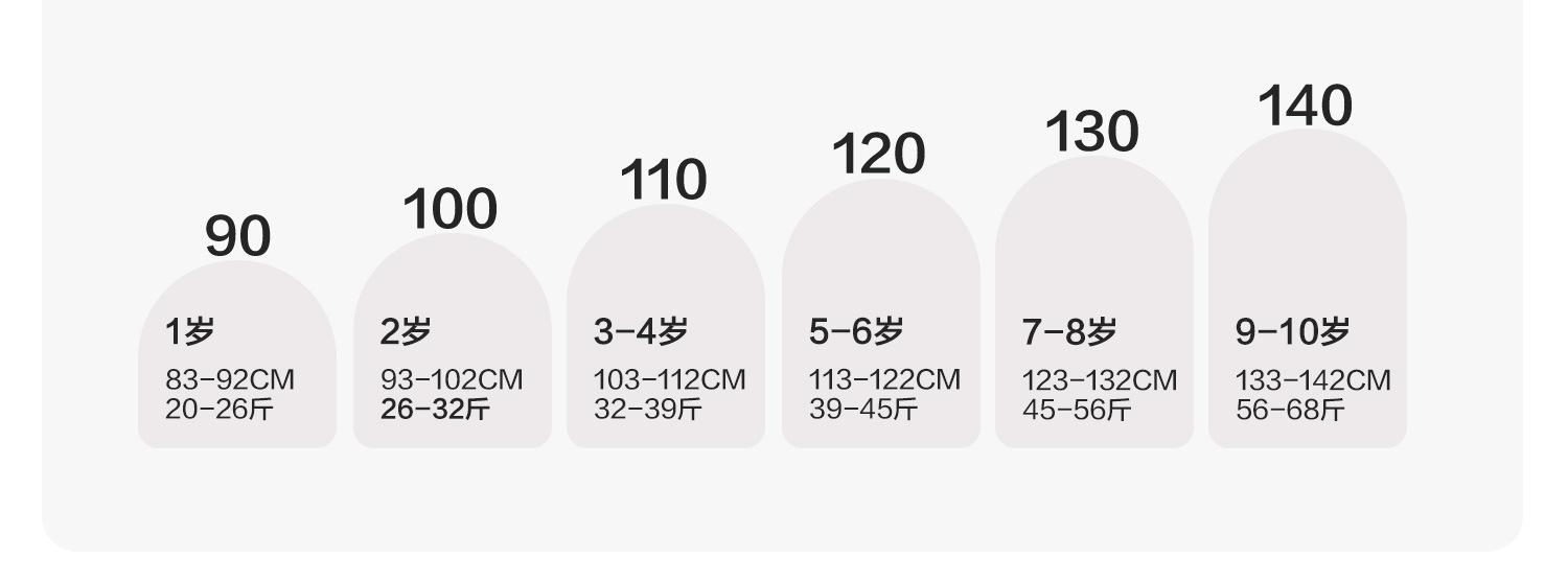 90cm, 100cm, 110cm, 120cm, 130cm, 140cm