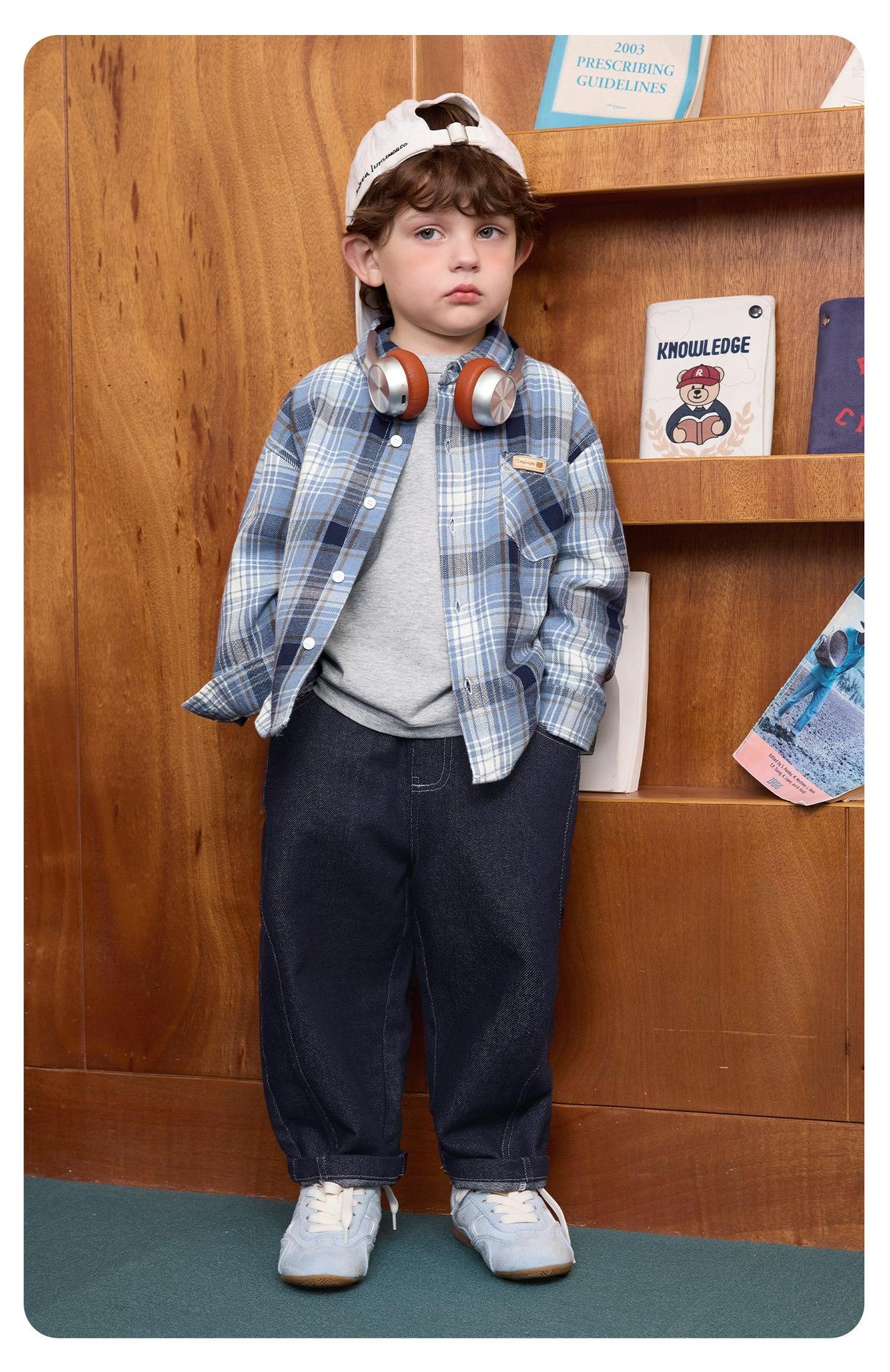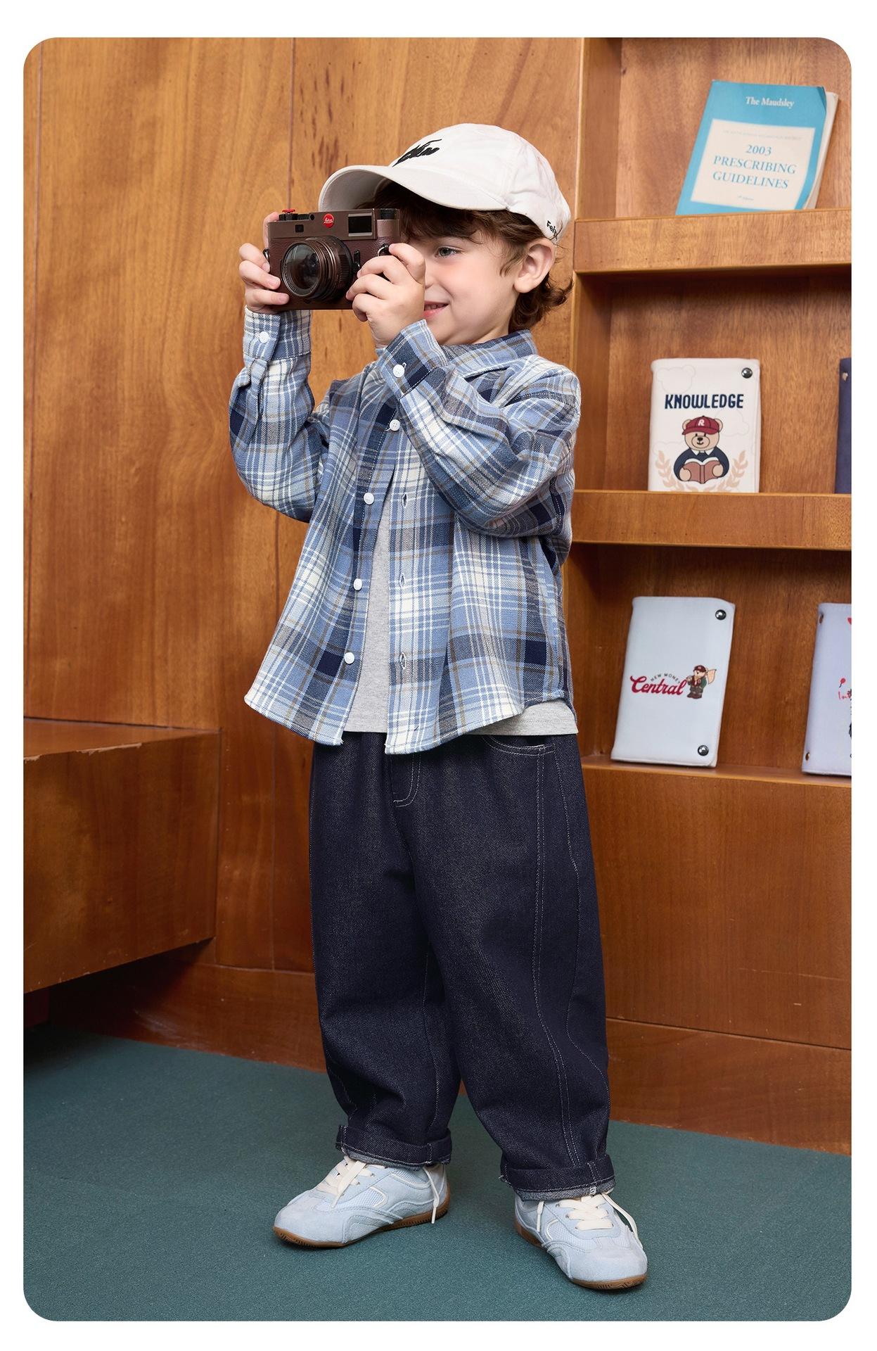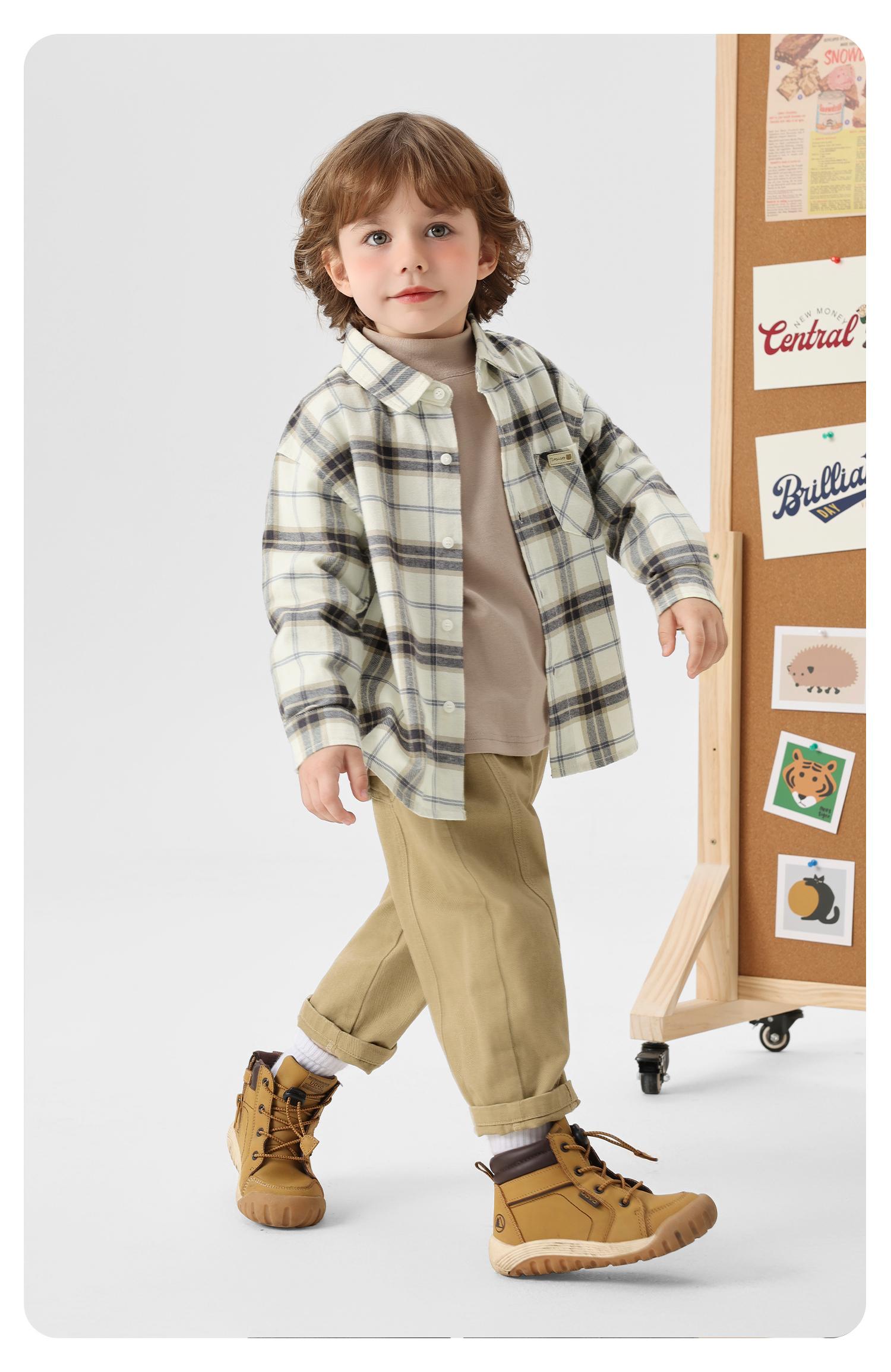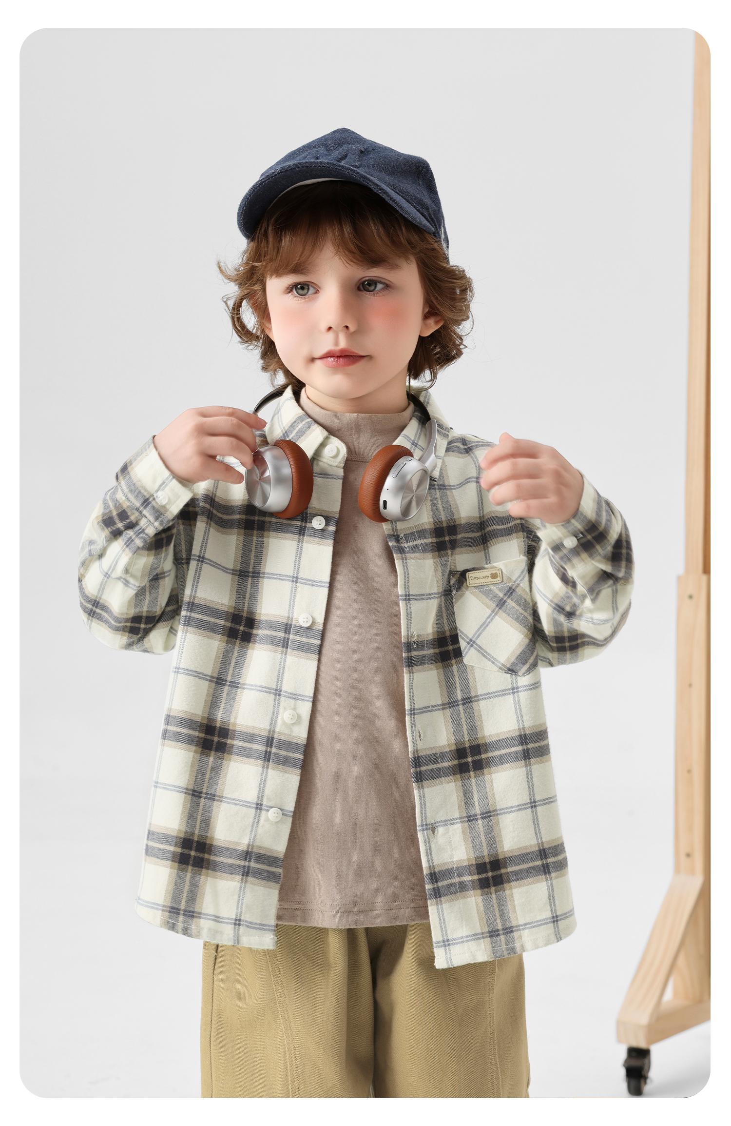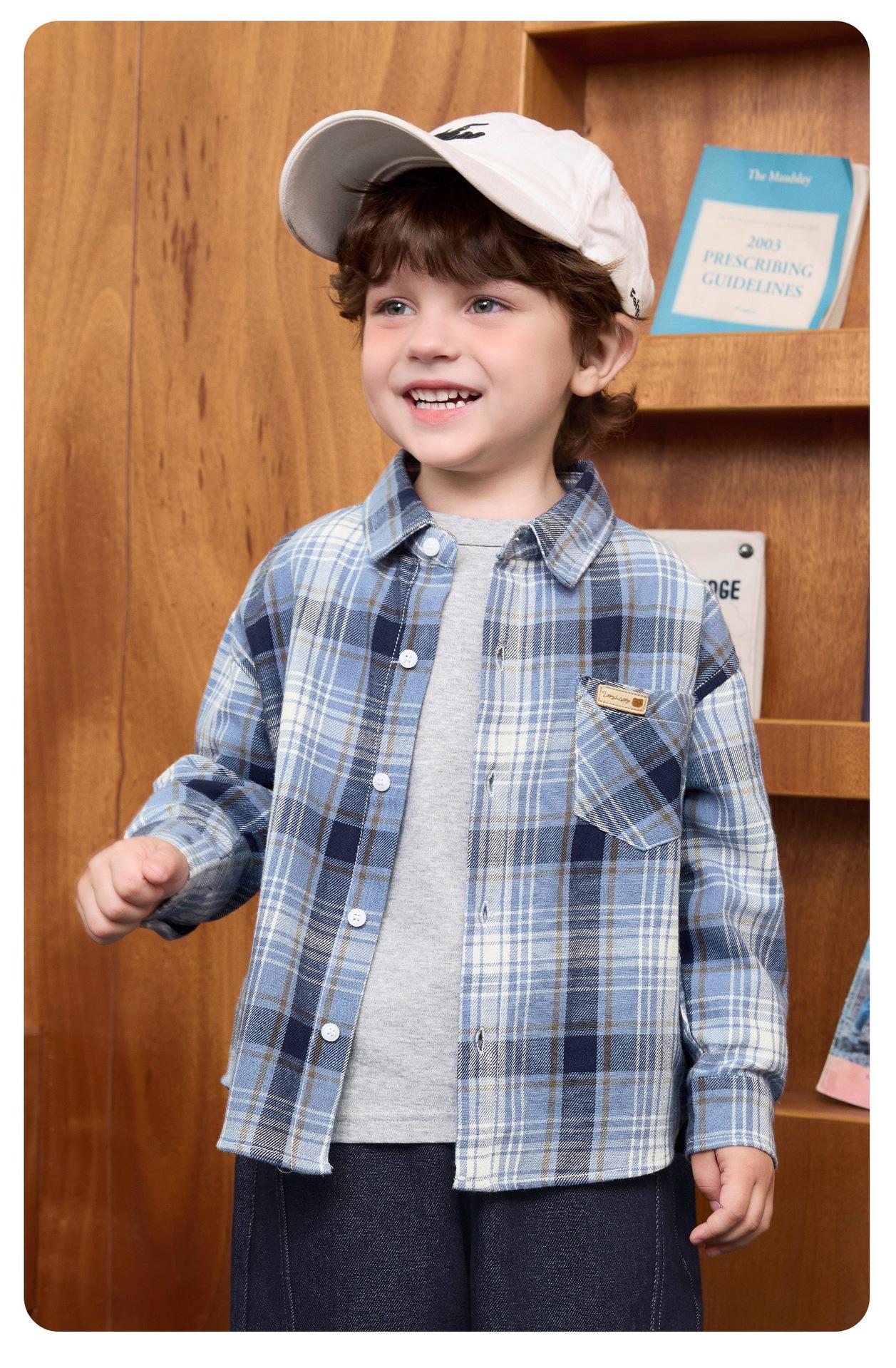 Camisa de algodón puro para niño estilo europeo derecho otoño ropa niño pequeño top estilo primavera y otoño ropa para niños chaqueta camisa de cuadros para niños tendencia