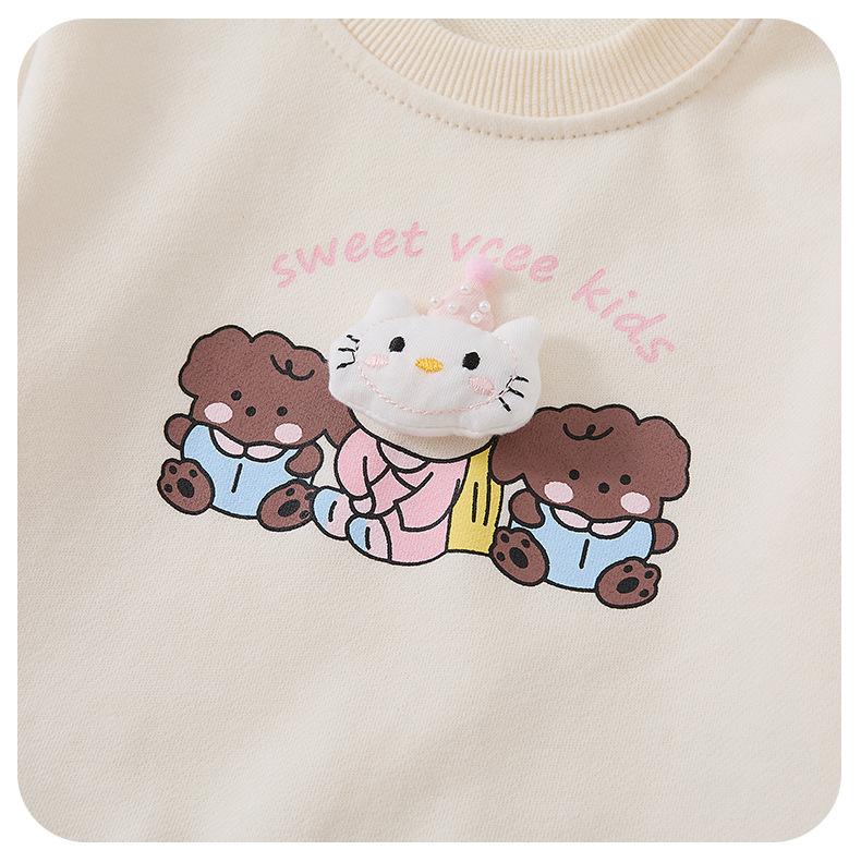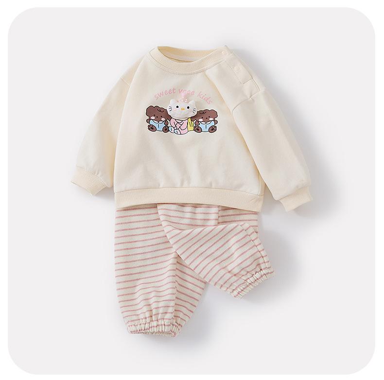 Conjunto de Sudadera de Dibujos Animados para Bebé y Niño Pequeño Otoño 2025 Nueva Moda Bebé Niña Top de Punto a la Moda Pantalones Rayados Conjunto de Dos Piezas