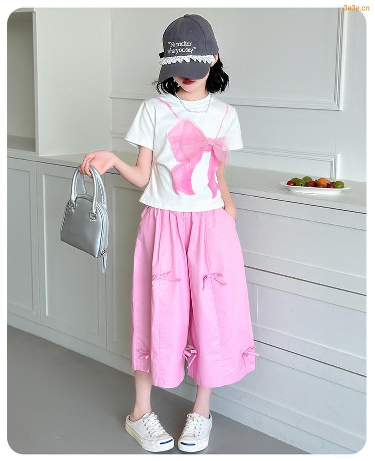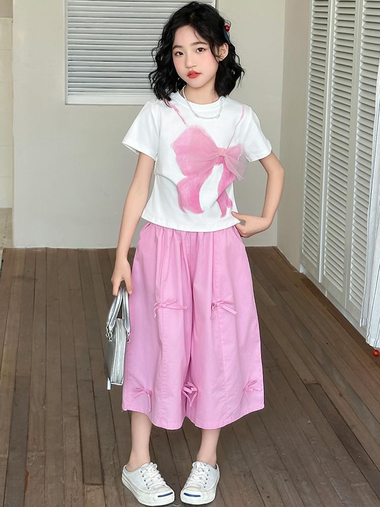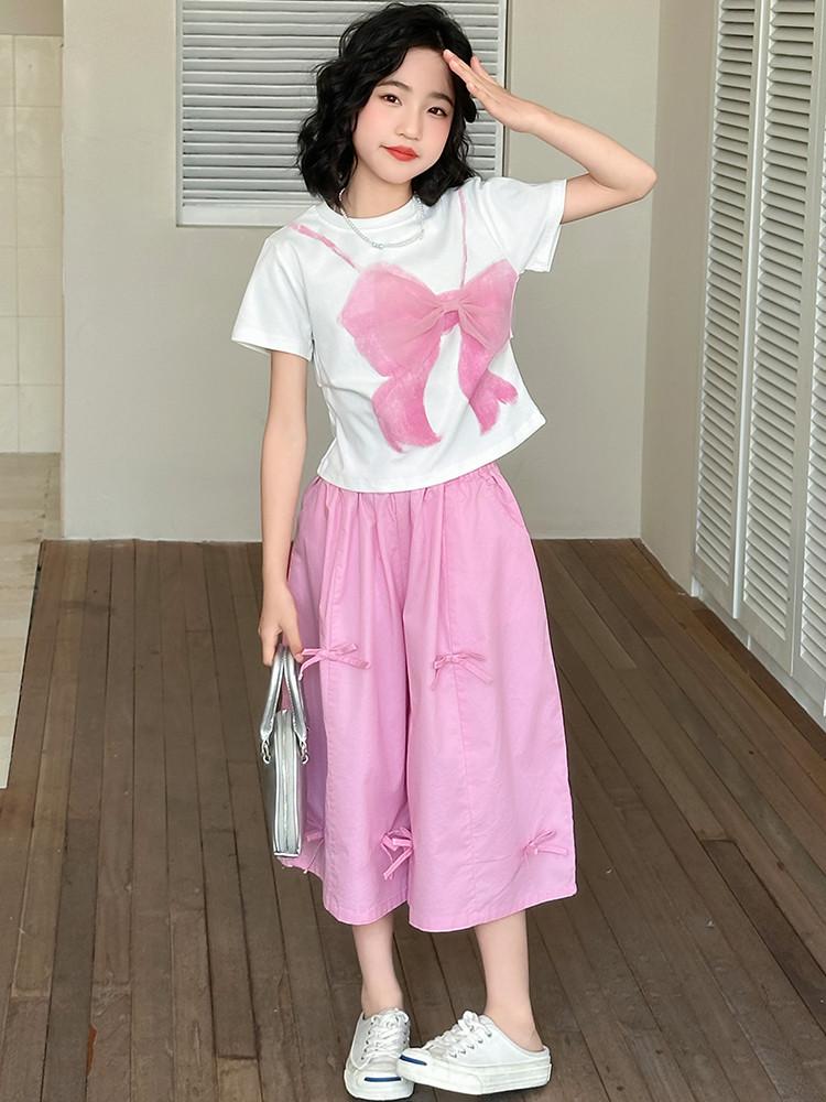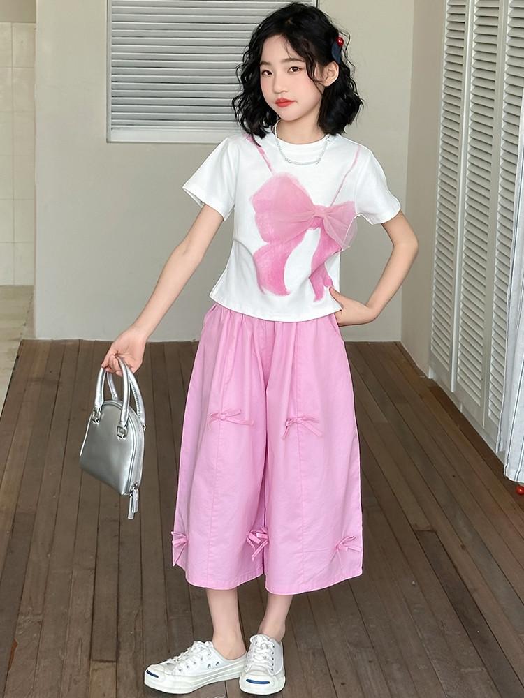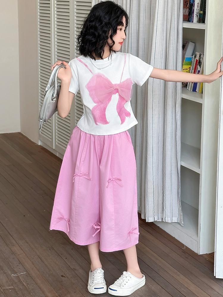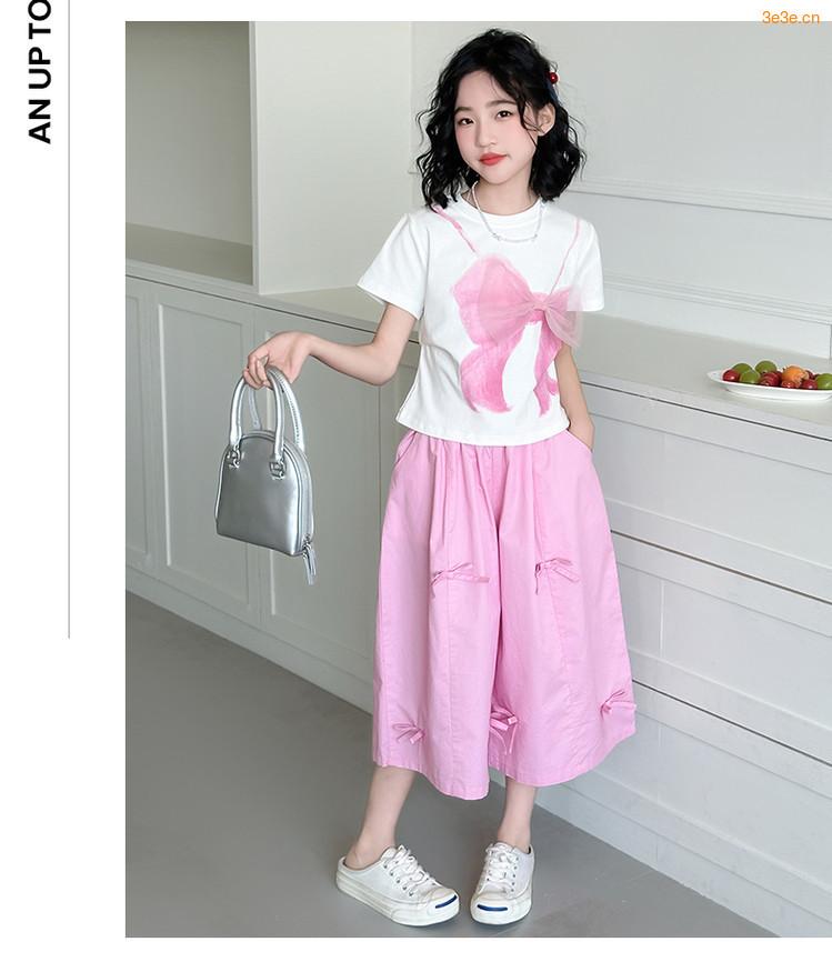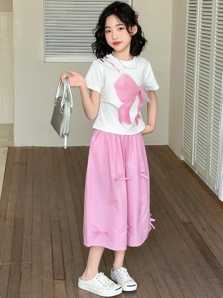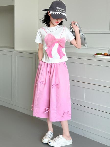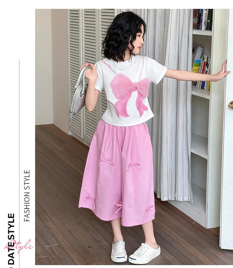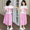Traje de Verano de Manga Corta para Niña 2025 Nuevo Estilo Camiseta Casual de Verano para Niña Pantalones Cortos Conjunto de Dos Piezas Moderno
