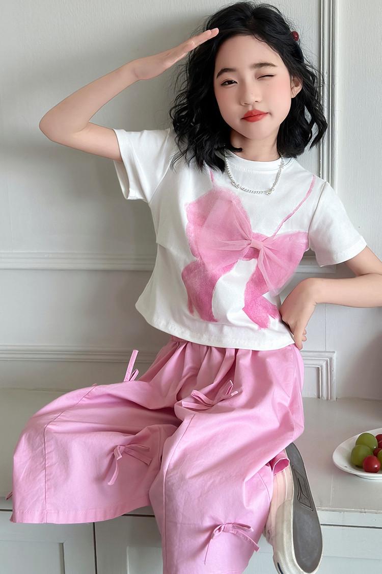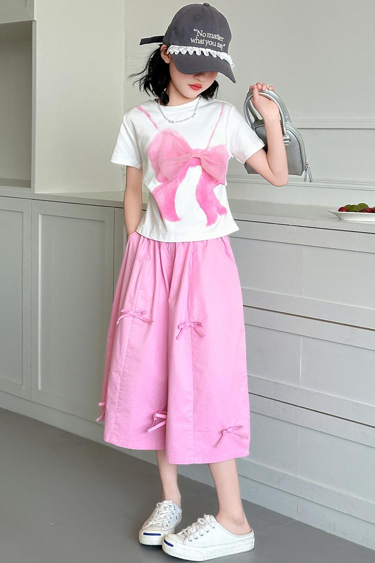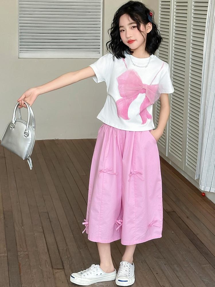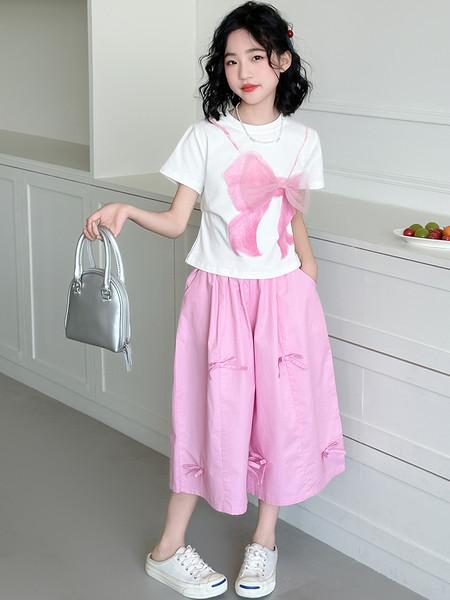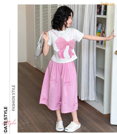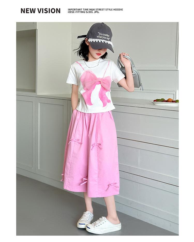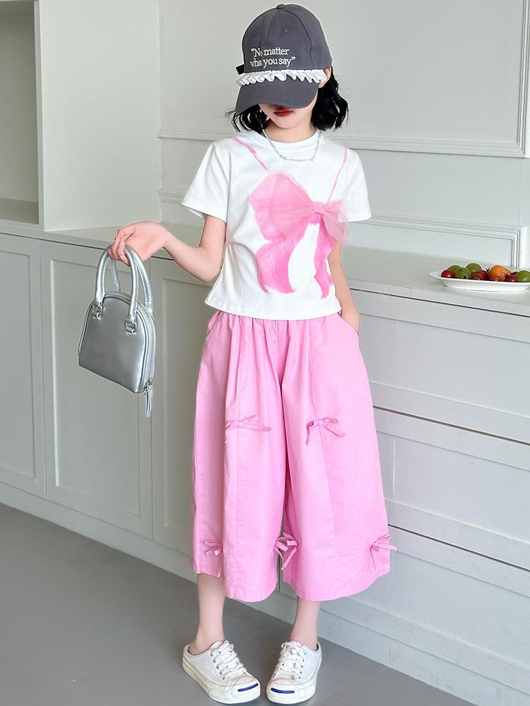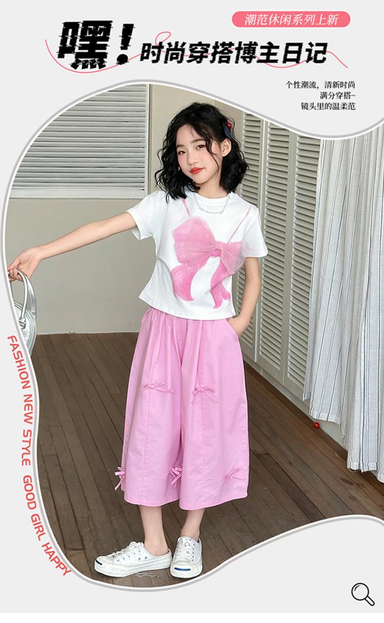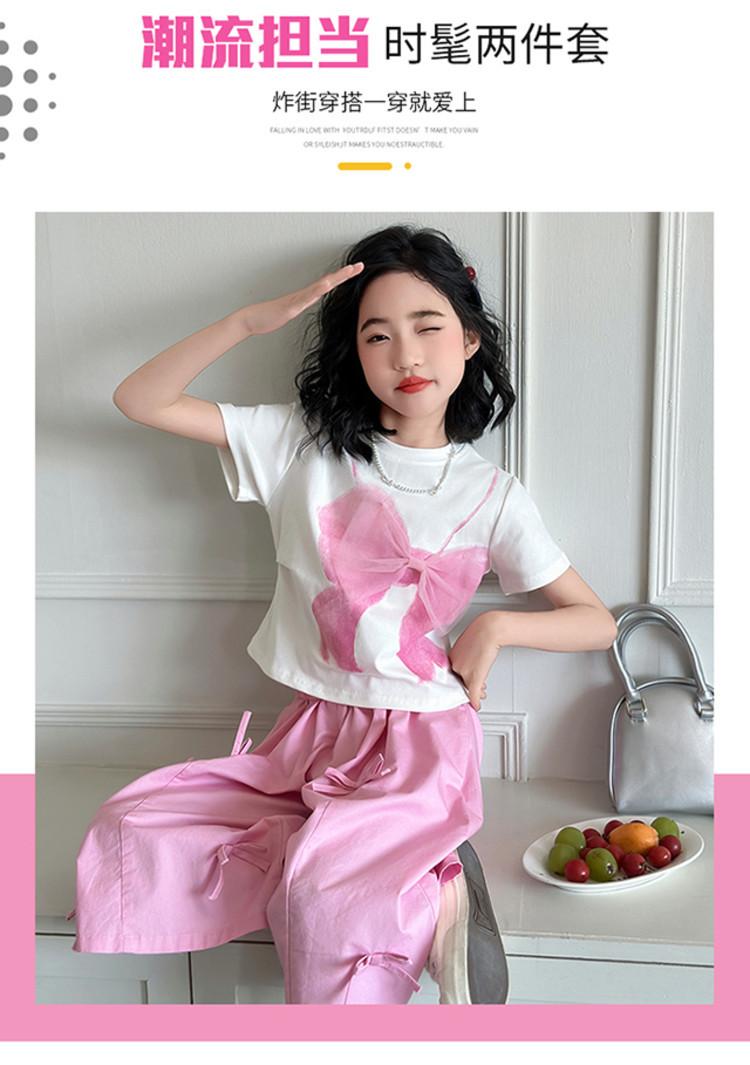 Traje de Verano de Manga Corta para Niña 2025 Nuevo Estilo Camiseta Casual de Verano para Niña Pantalones Cortos Conjunto de Dos Piezas Moderno