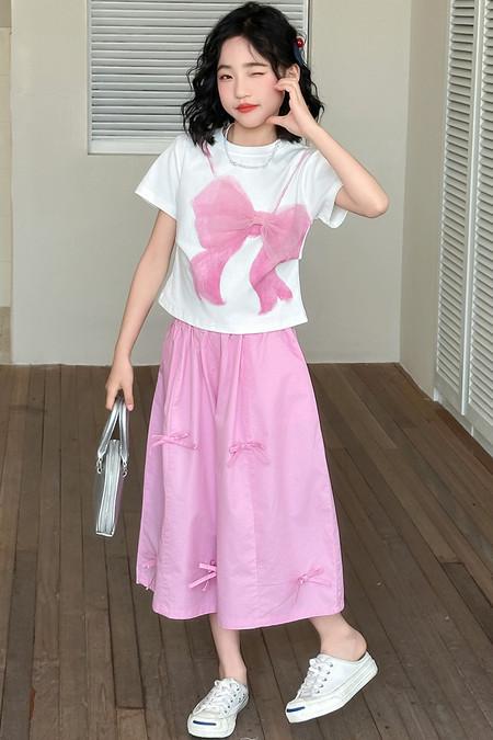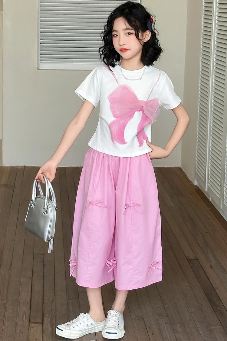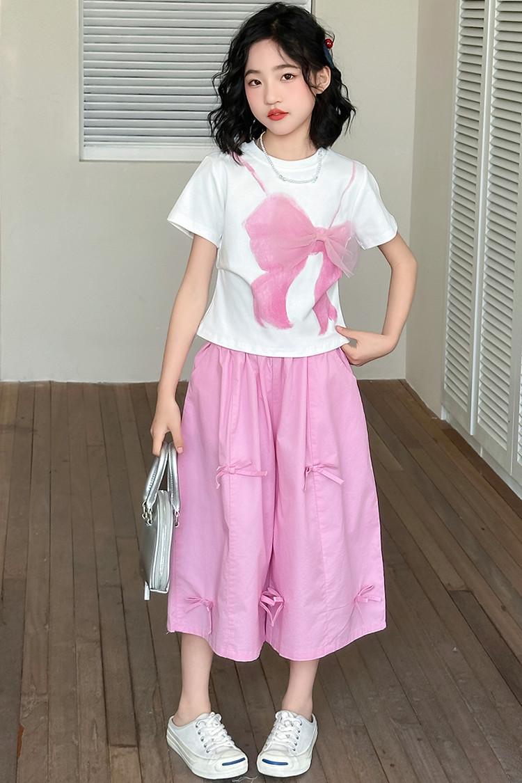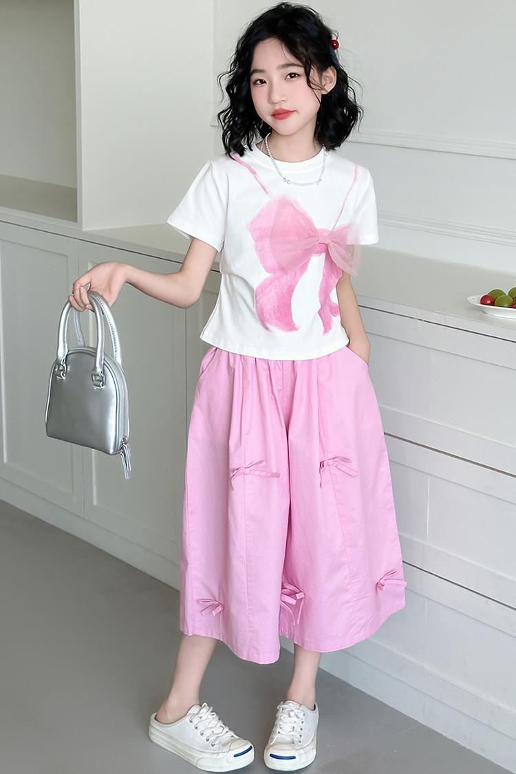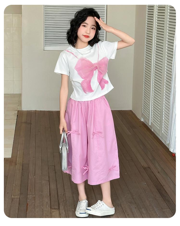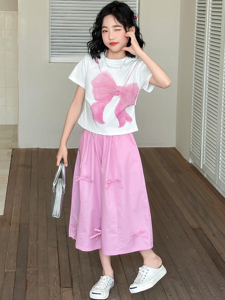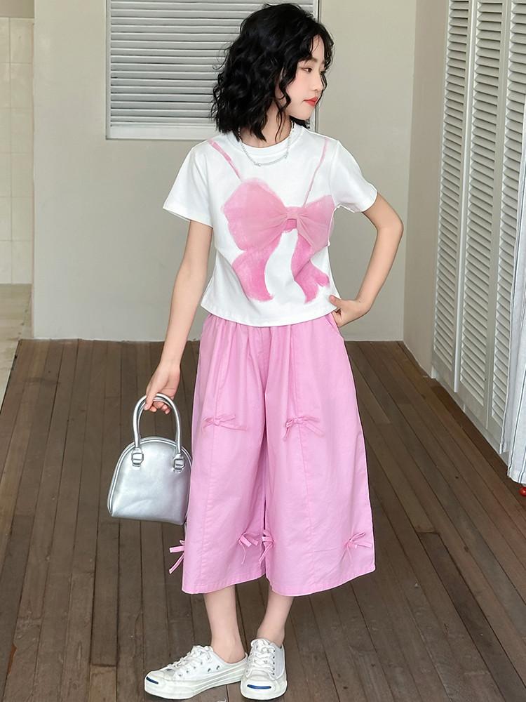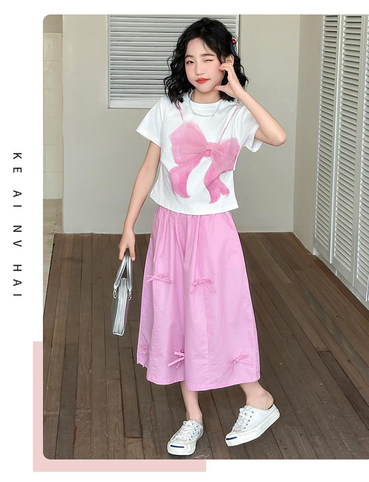 Traje de Verano de Manga Corta para Niña 2025 Nuevo Estilo Camiseta Casual de Verano para Niña Pantalones Cortos Conjunto de Dos Piezas Moderno