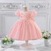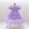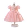 Nuevo vestido infantil transfronterizo para niñas, vestido de noche de manga abullonada con apliques, pequeño anfitrión, banquete de cumpleaños, vestido de princesa