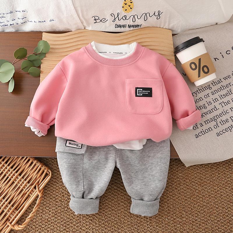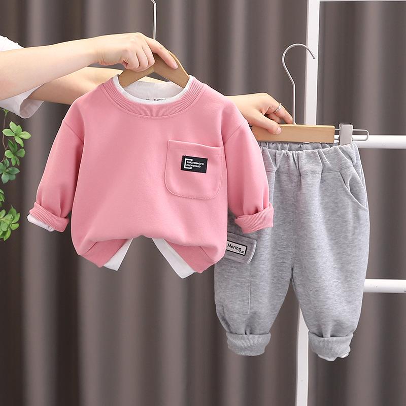 Compra Ropa para Niños Ropa de Otoño para Niños Conjunto Estilo Primavera y Otoño 2025 Nuevo Estilo Coreano Moda Cuello Redondo Bolsillo Sudadera Pantalones Bebé al por mayor en Joom.pro