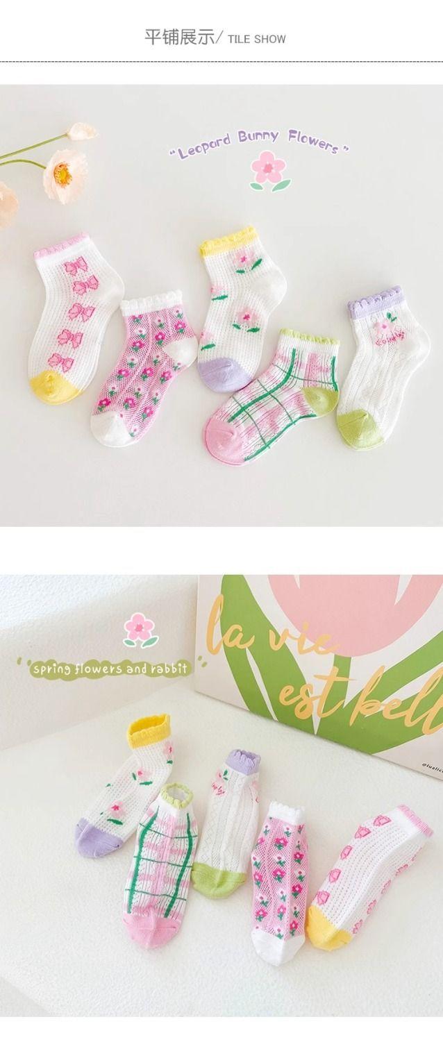 Calcetines de Verano para Niñas Calcetines de Algodón Malla Delgada Transpirable Verano Niñas Princesa Encaje Calcetines de Bebé