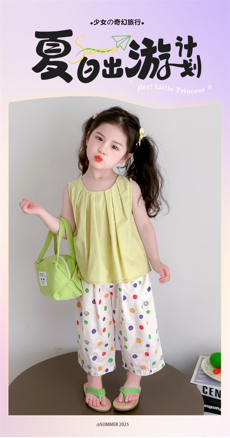 Traje de Verano para Niñas 2025 Nuevo Estilo Moda Infantil Estilo Coreano Conjunto de Dos Piezas Chaleco Infantil Traje de Verano para Niña