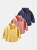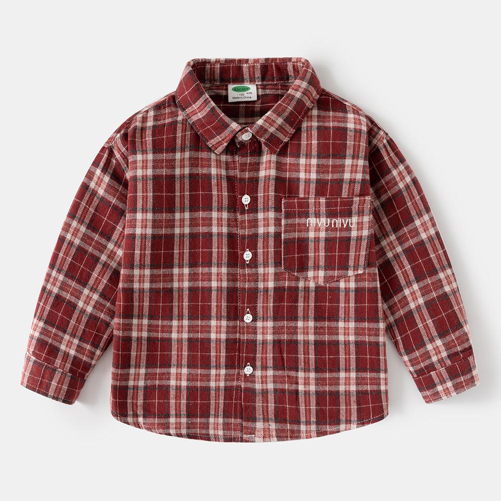 Ropa de Niño Ropa Infantil Bebé Top 2025 Primavera y Otoño Nueva Camisa con Letras Camisa de Manga Larga a Cuadros Estilo Coreano para Niños