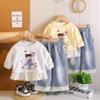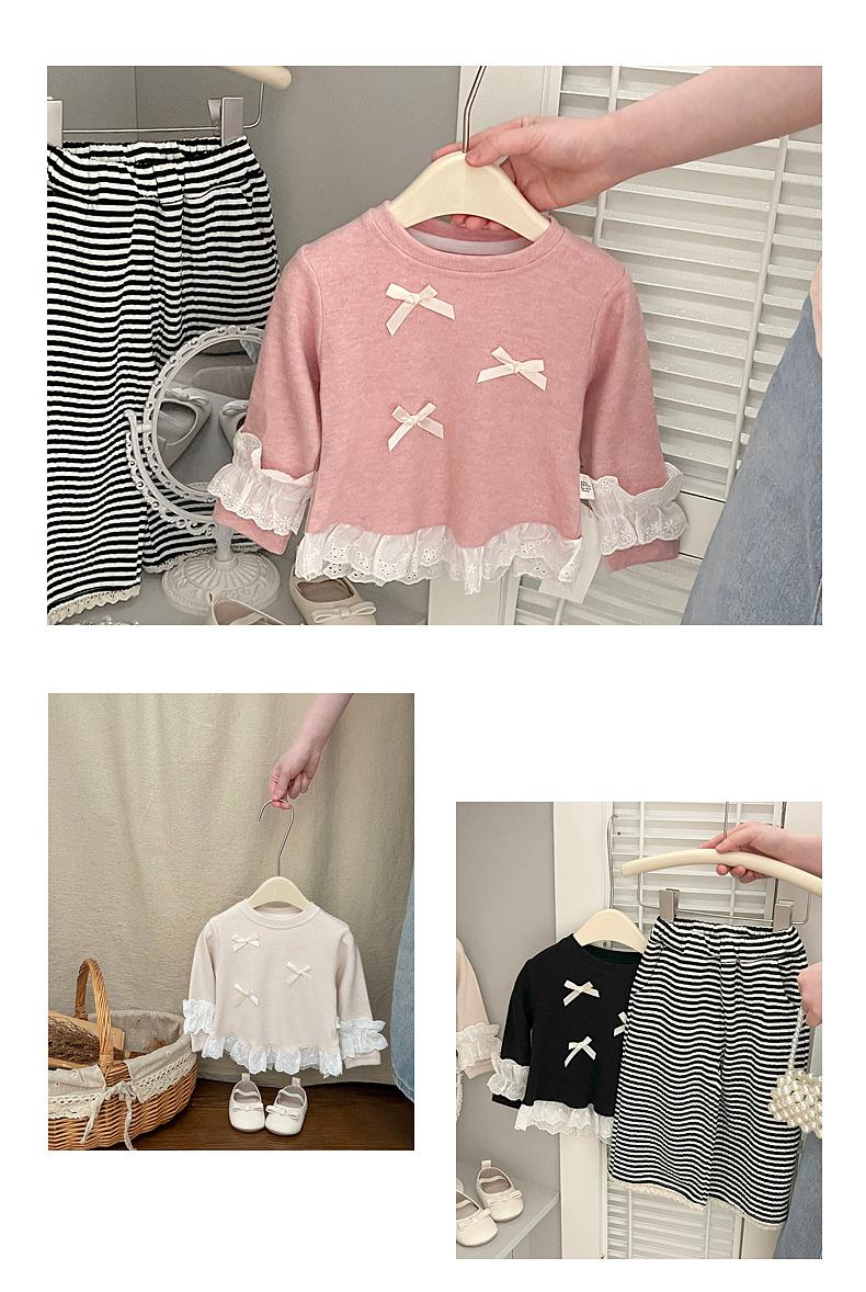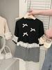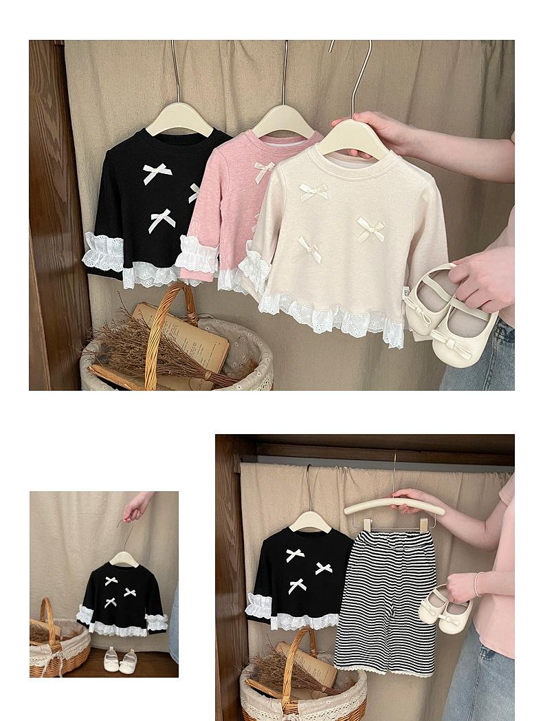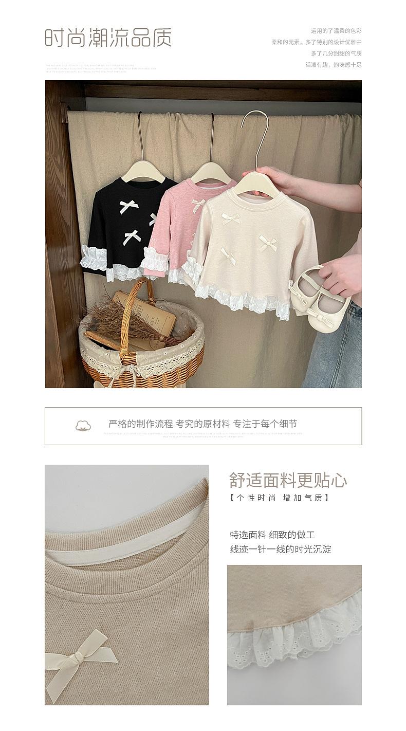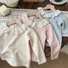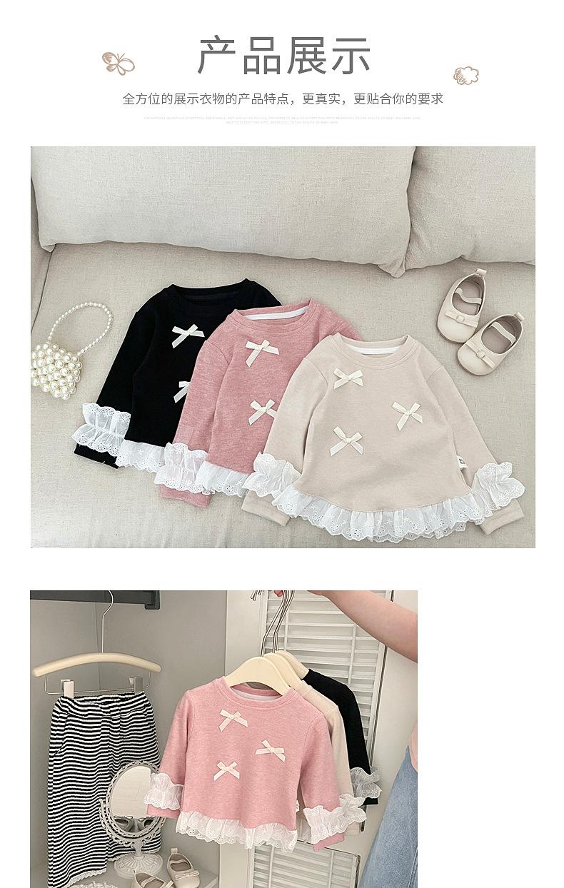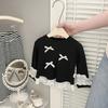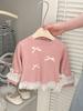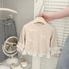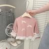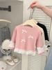 Ropa Coreana para Niños Ropa de Otoño para Niños 2025 Nuevo Camiseta de Moda para Bebé Niña con Lazo de Manga Larga con Encaje