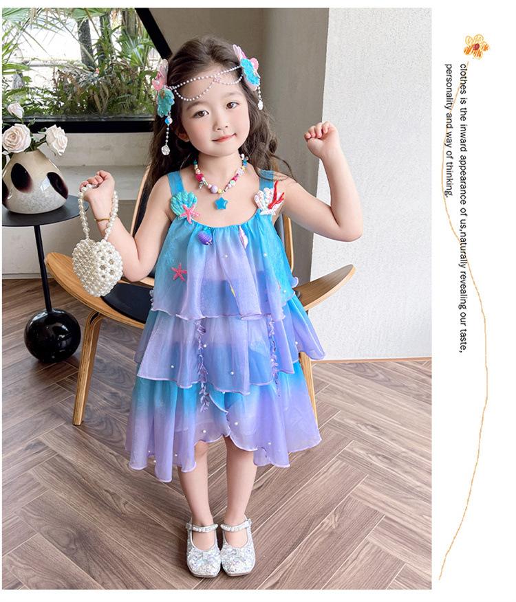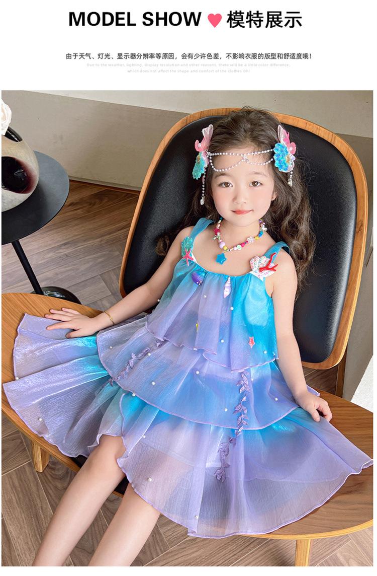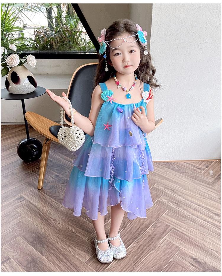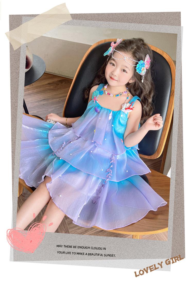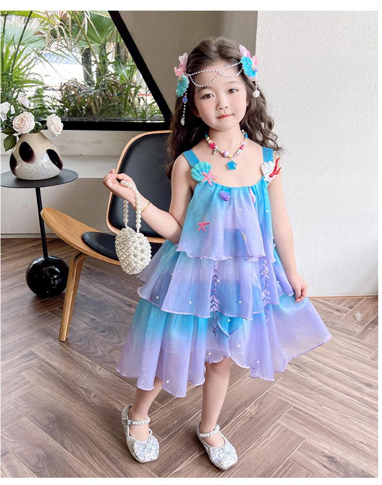 Vestido de Princesa Sirena Falda de Verano para Niña 2025 Nuevo Vestido de Tul para Niños Vestido de Tirantes de Verano para Niña
