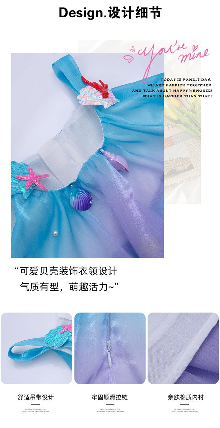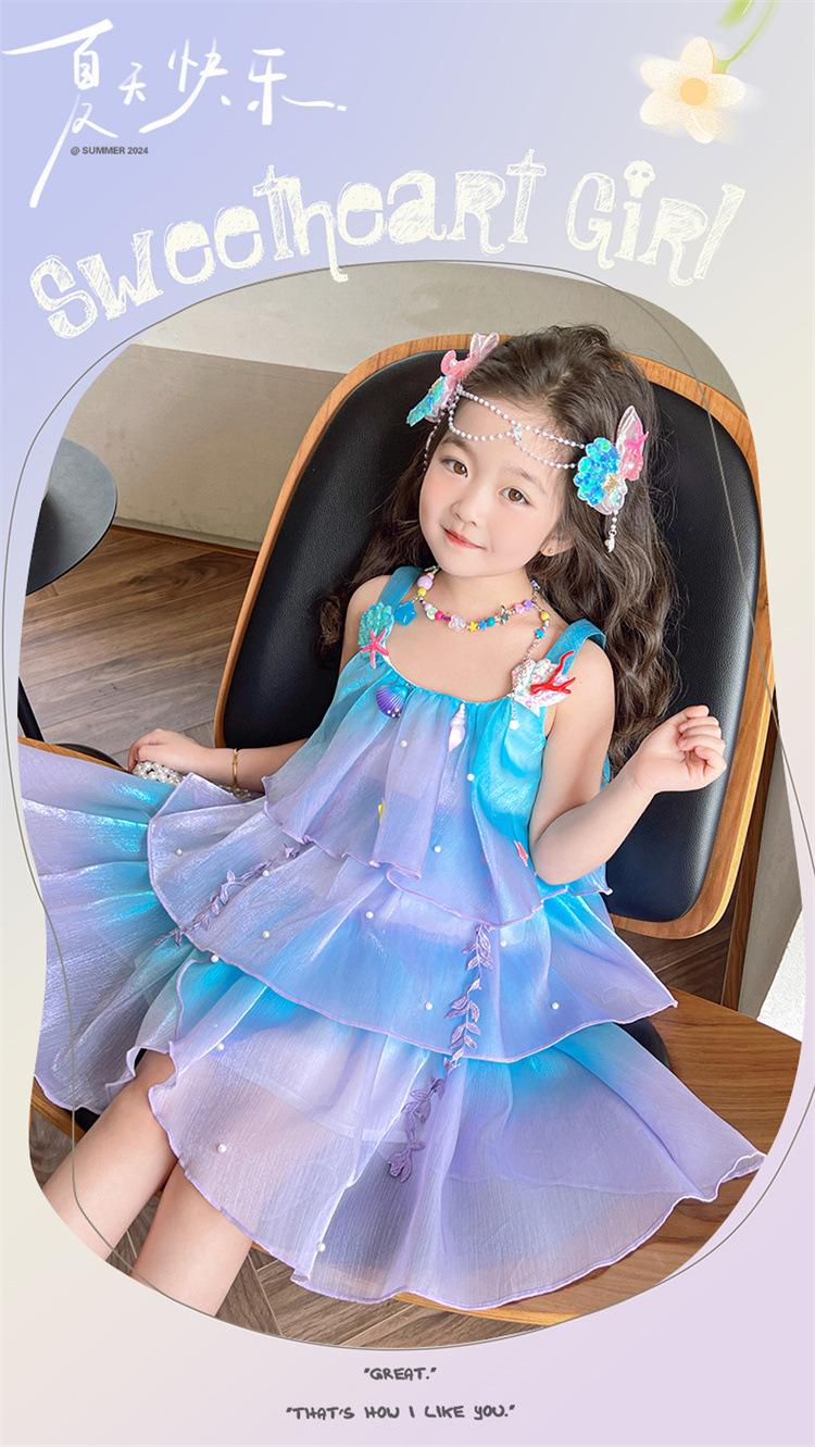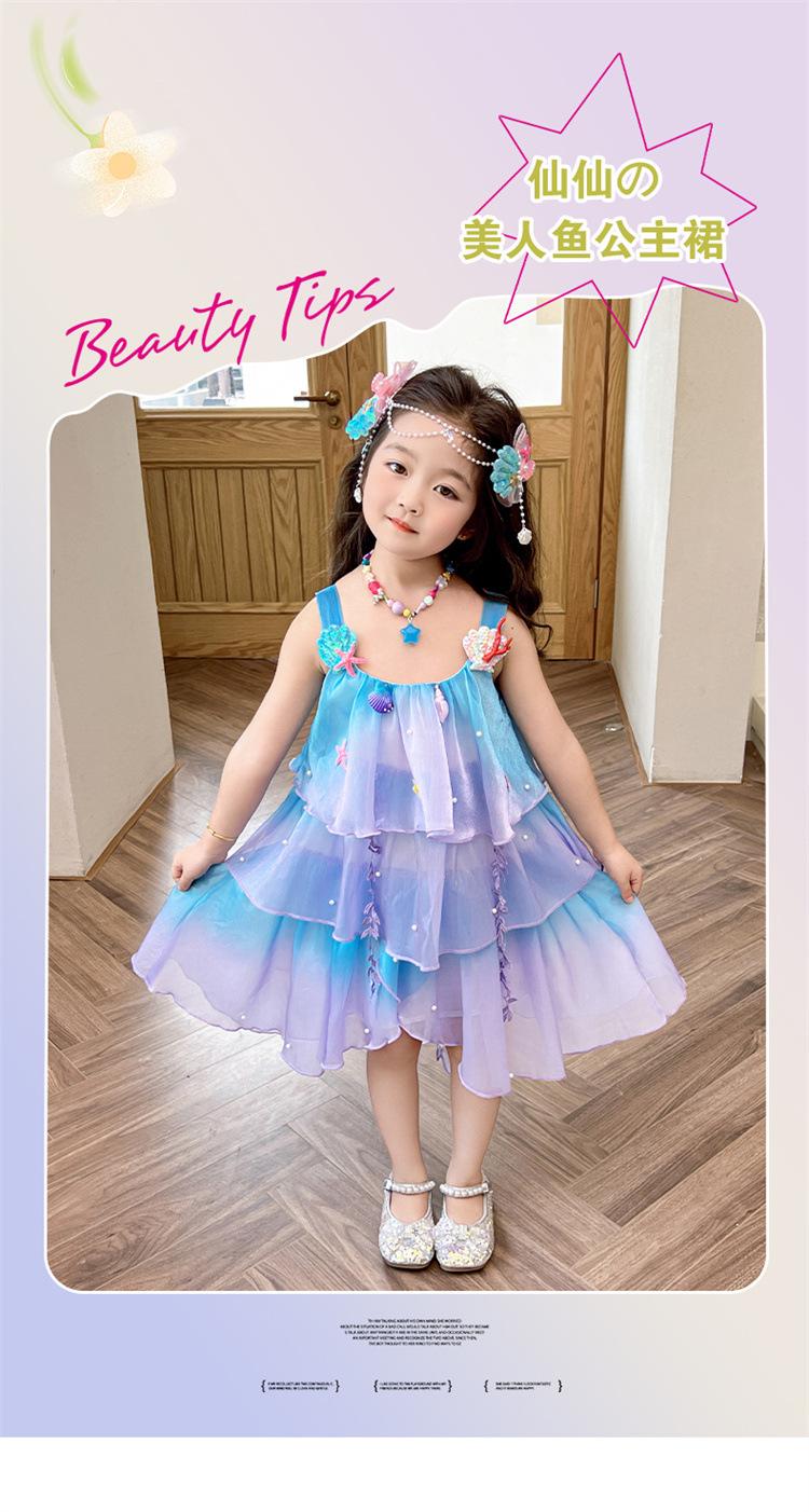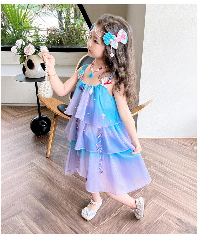 Vestido de Princesa Sirena Falda de Verano para Niña 2025 Nuevo Vestido de Tul para Niños Vestido de Tirantes de Verano para Niña