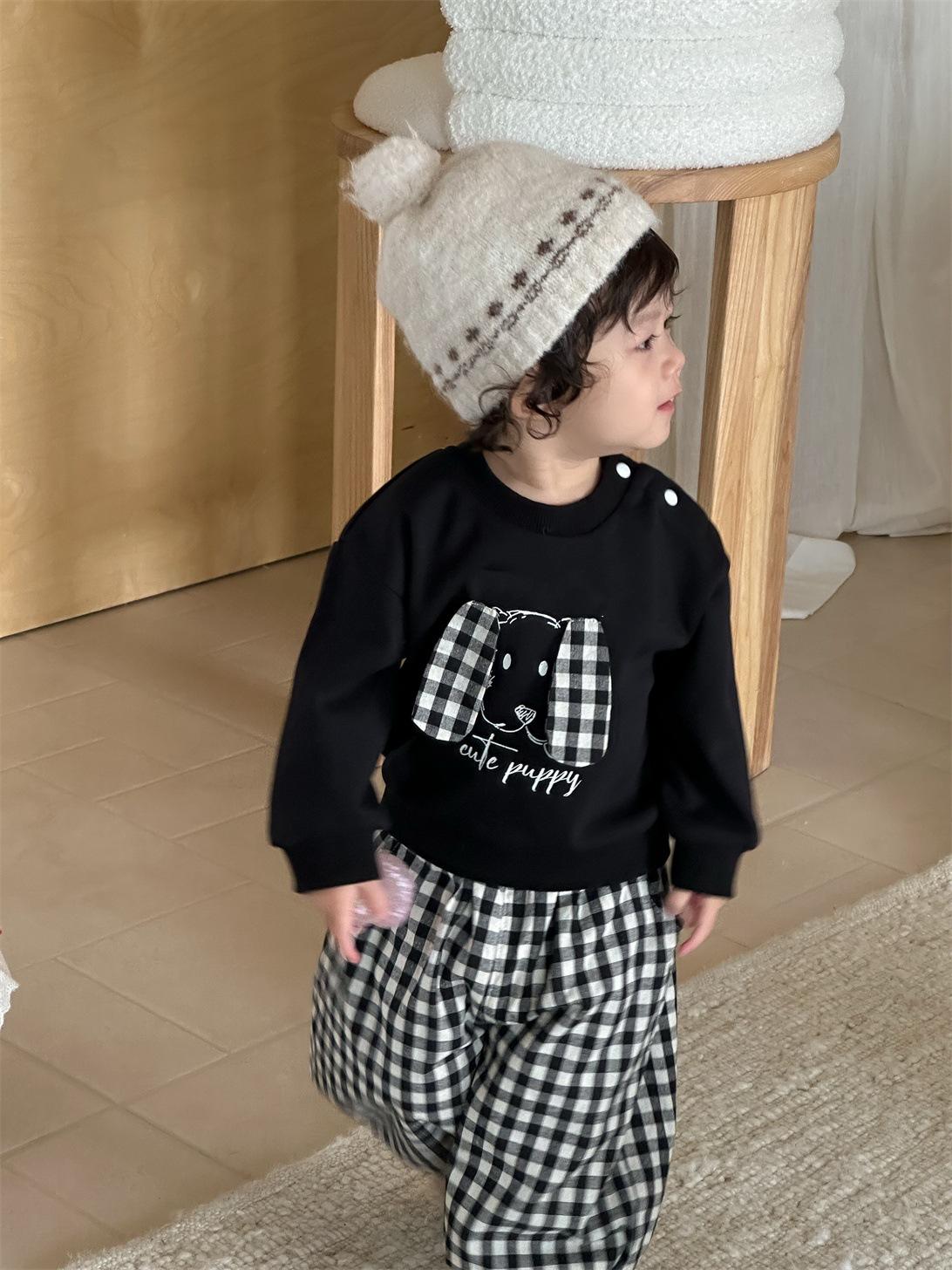 Ropa de Otoño para Niños 2025 Nuevo Estilo Coreano Ropa Infantil Set para Bebé Estilo Otoñal Sudadera Infantil Pantalones a Cuadros Conjunto de Dos Piezas