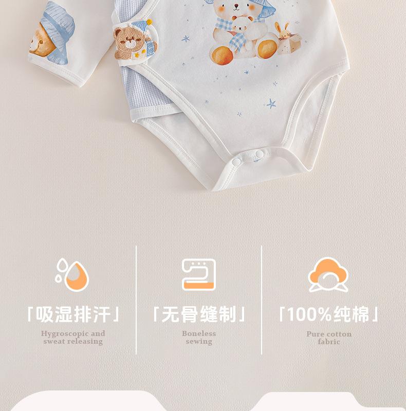 Mameluco de Otoño para Bebé Algodón Puro Clase A Ropa para Recién Nacido Manga Larga Body sin Costuras Traje Triángulo para Gatear para Bebé Ropa para Niños